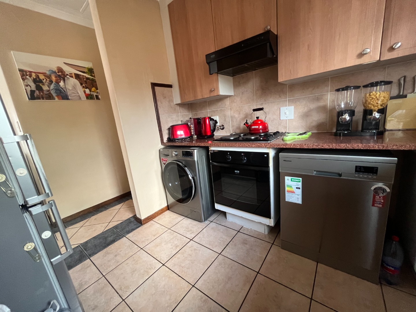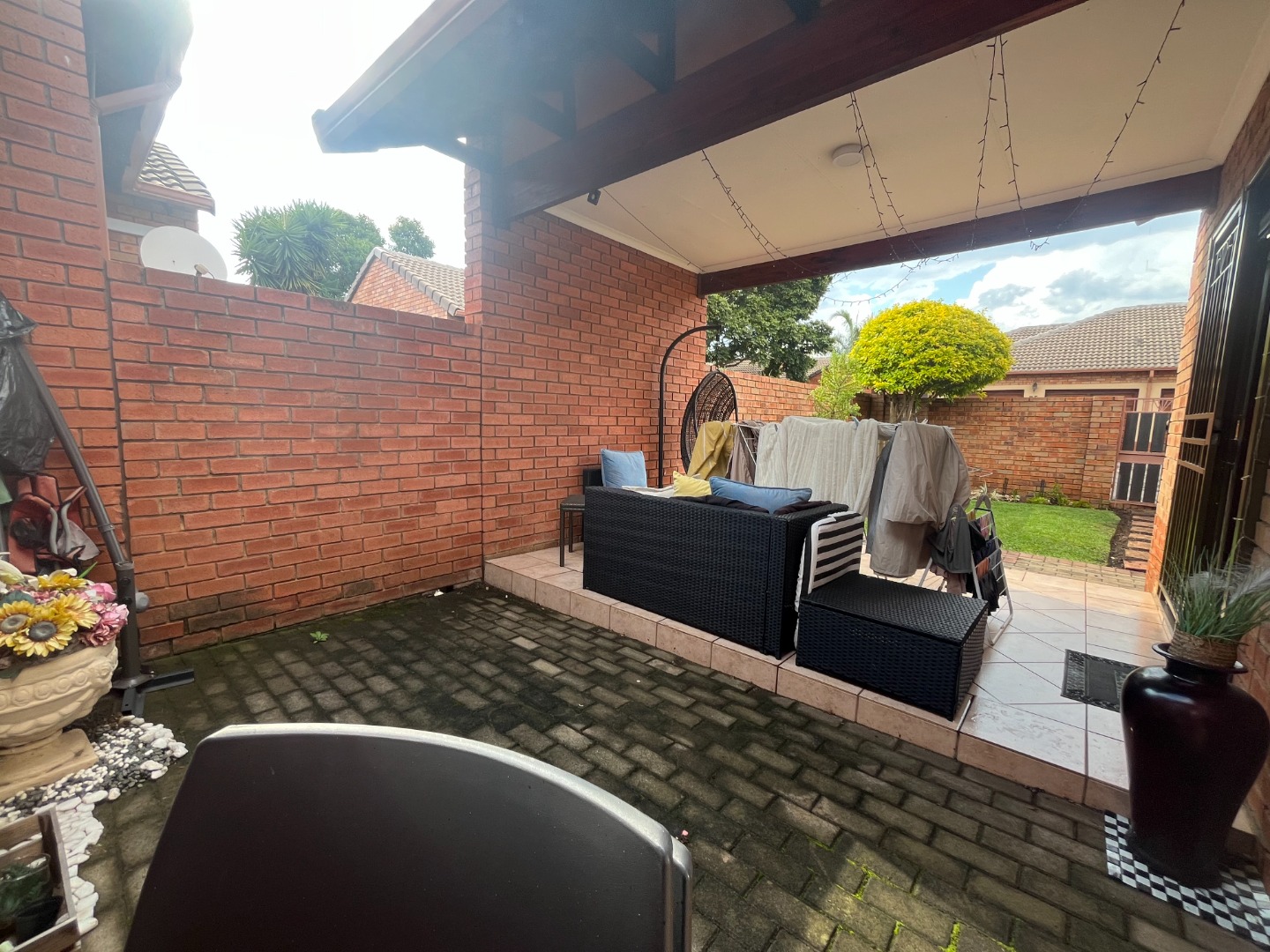 Discover comfortable living in this inviting 2-bedroom, 2-bathroom residence, ideally situated within a secure estate in Centurion. This home features an open-plan layout, seamlessly connecting the lounge, dining area, and a functional kitchen. The kitchen boasts modern wooden cabinetry, a dark speckled countertop, and a convenient breakfast bar, perfect for casual dining. Tiled flooring throughout ensures easy maintenance and a cohesive aesthetic. Step outside to a private, well-maintained garden and a covered patio, offering an ideal space for outdoor relaxation or entertaining. The property includes a double garage, providing ample parking and storage. Residents benefit from a lifestyle-focused environment with access to communal amenities such as a club house, tennis court, and a communal braai area, fostering a strong sense of community. Security is paramount in this gated community, featuring 24-hour security, an access gate, and security gates on the property for enhanced peace of mind. Fibre connectivity is available, catering to modern communication needs. This home is perfectly suited for professionals or small families seeking a secure and convenient rental in a well-managed estate. Eco Park Estate offers a tranquil suburban setting in Centurion, known for its well-maintained properties and family-friendly atmosphere. Its strategic location provides easy access to essential amenities and major routes, making it a desirable address in South Africa. Key Features: * 2 Bedrooms, 2 Bathrooms (1 En-suite) * Open-plan Living and Dining Areas * Modern Kitchen with Breakfast Bar * Private Garden and Covered Patio * Double Garage * Access to Club House, Tennis Court & Communal Braai Area * 24-Hour Security & Gated Community * Fibre Ready