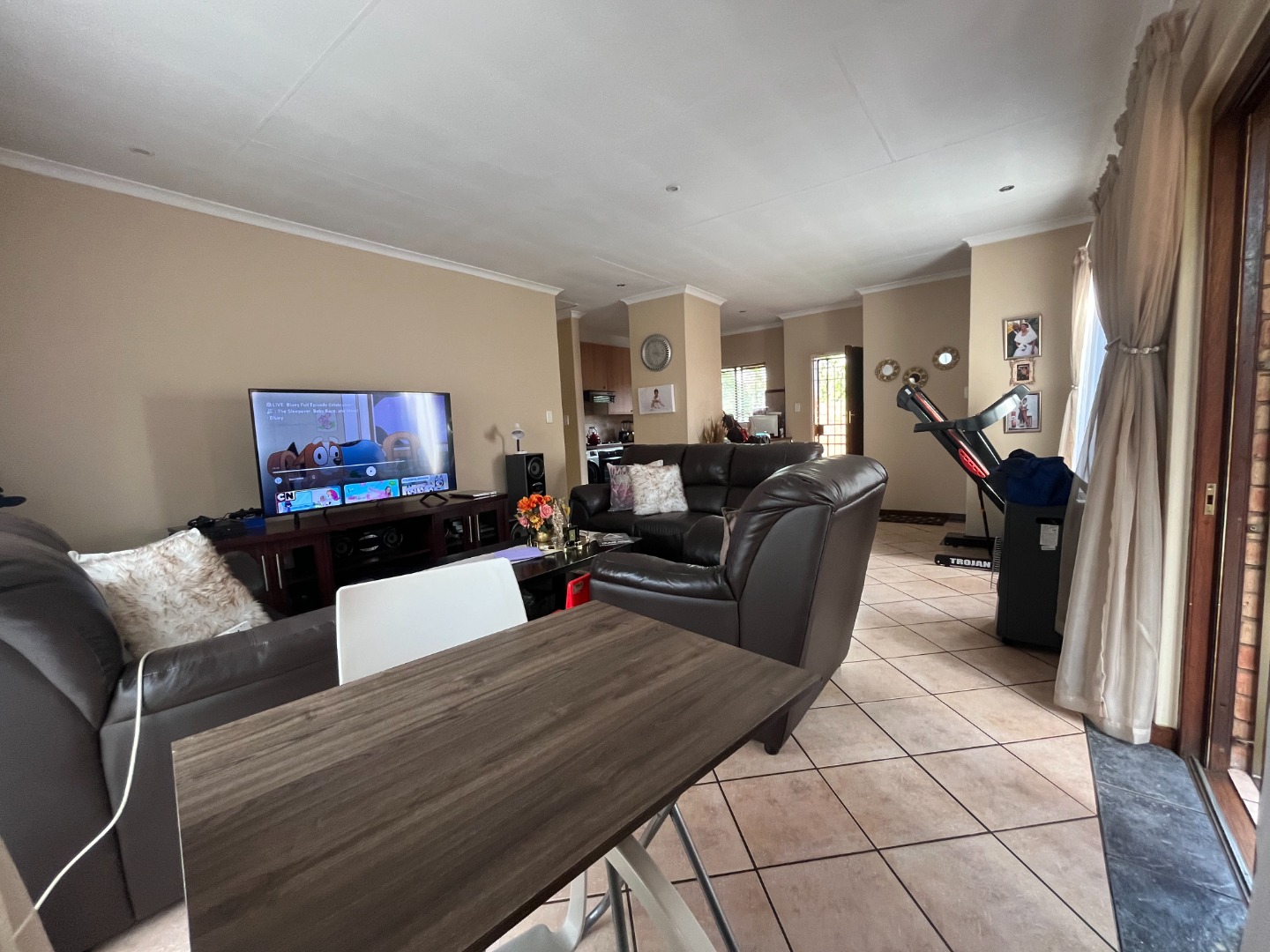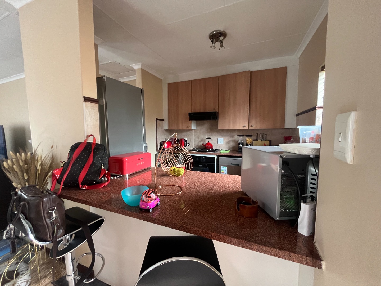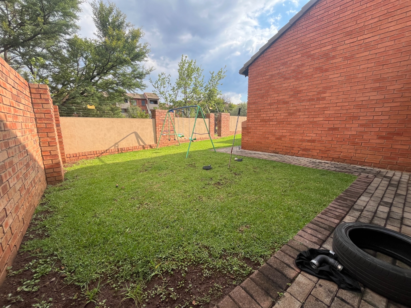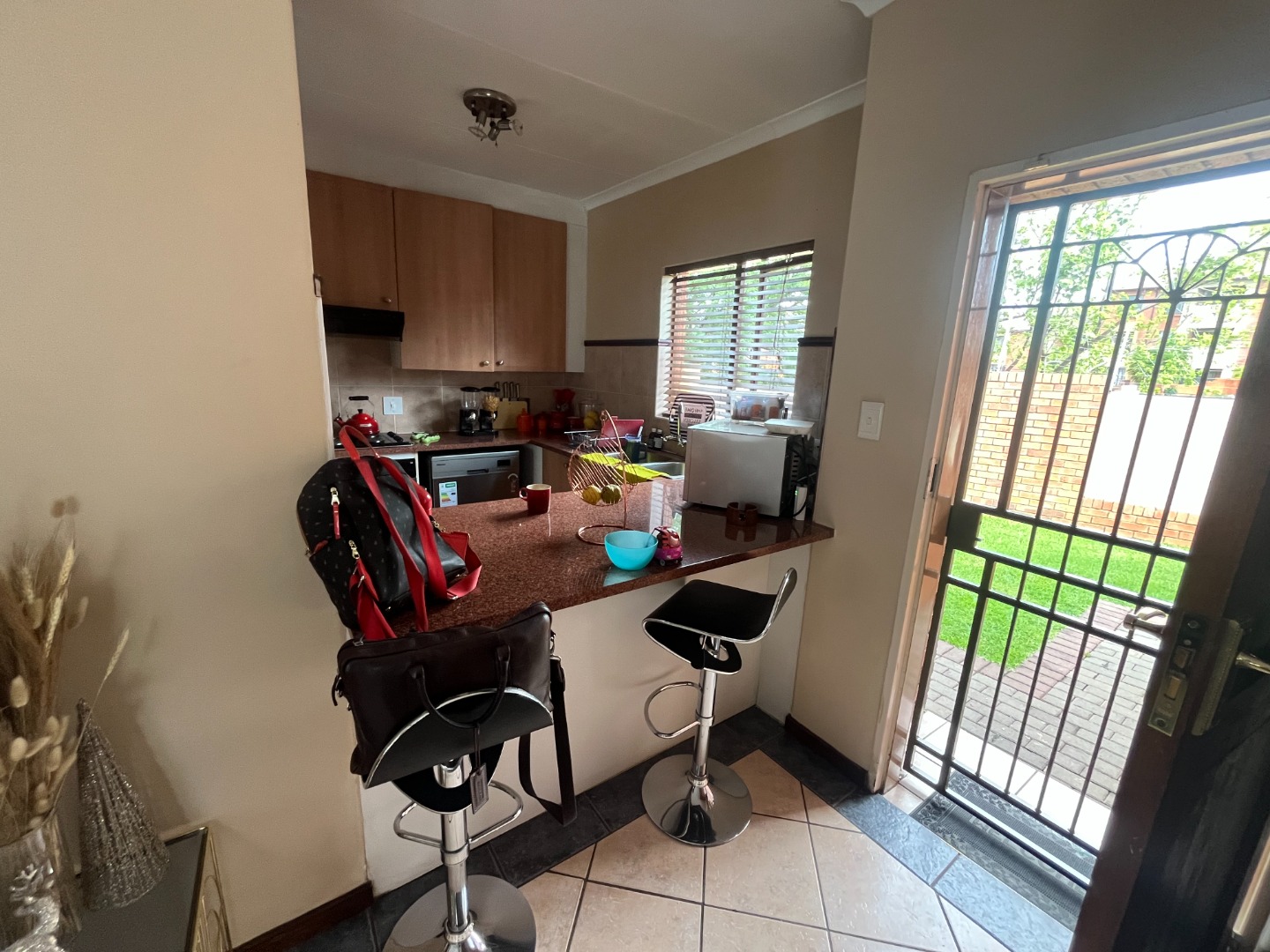 Discover comfortable living in this inviting 2-bedroom, 2-bathroom residence, ideally situated within a secure estate in Centurion. This home features an open-plan layout, seamlessly connecting the lounge, dining area, and a functional kitchen. The kitchen boasts modern wooden cabinetry, a dark speckled countertop, and a convenient breakfast bar, perfect for casual dining. Tiled flooring throughout ensures easy maintenance and a cohesive aesthetic. Step outside to a private, well-maintained garden and a covered patio, offering an ideal space for outdoor relaxation or entertaining. The property includes a double garage, providing ample parking and storage. Residents benefit from a lifestyle-focused environment with access to communal amenities such as a club house, tennis court, and a communal braai area, fostering a strong sense of community. Security is paramount in this gated community, featuring 24-hour security, an access gate, and security gates on the property for enhanced peace of mind. Fibre connectivity is available, catering to modern communication needs. This home is perfectly suited for professionals or small families seeking a secure and convenient rental in a well-managed estate. Eco Park Estate offers a tranquil suburban setting in Centurion, known for its well-maintained properties and family-friendly atmosphere. Its strategic location provides easy access to essential amenities and major routes, making it a desirable address in South Africa. Key Features: * 2 Bedrooms, 2 Bathrooms (1 En-suite) * Open-plan Living and Dining Areas * Modern Kitchen with Breakfast Bar * Private Garden and Covered Patio * Double Garage * Access to Club House, Tennis Court & Communal Braai Area * 24-Hour Security & Gated Community * Fibre Ready