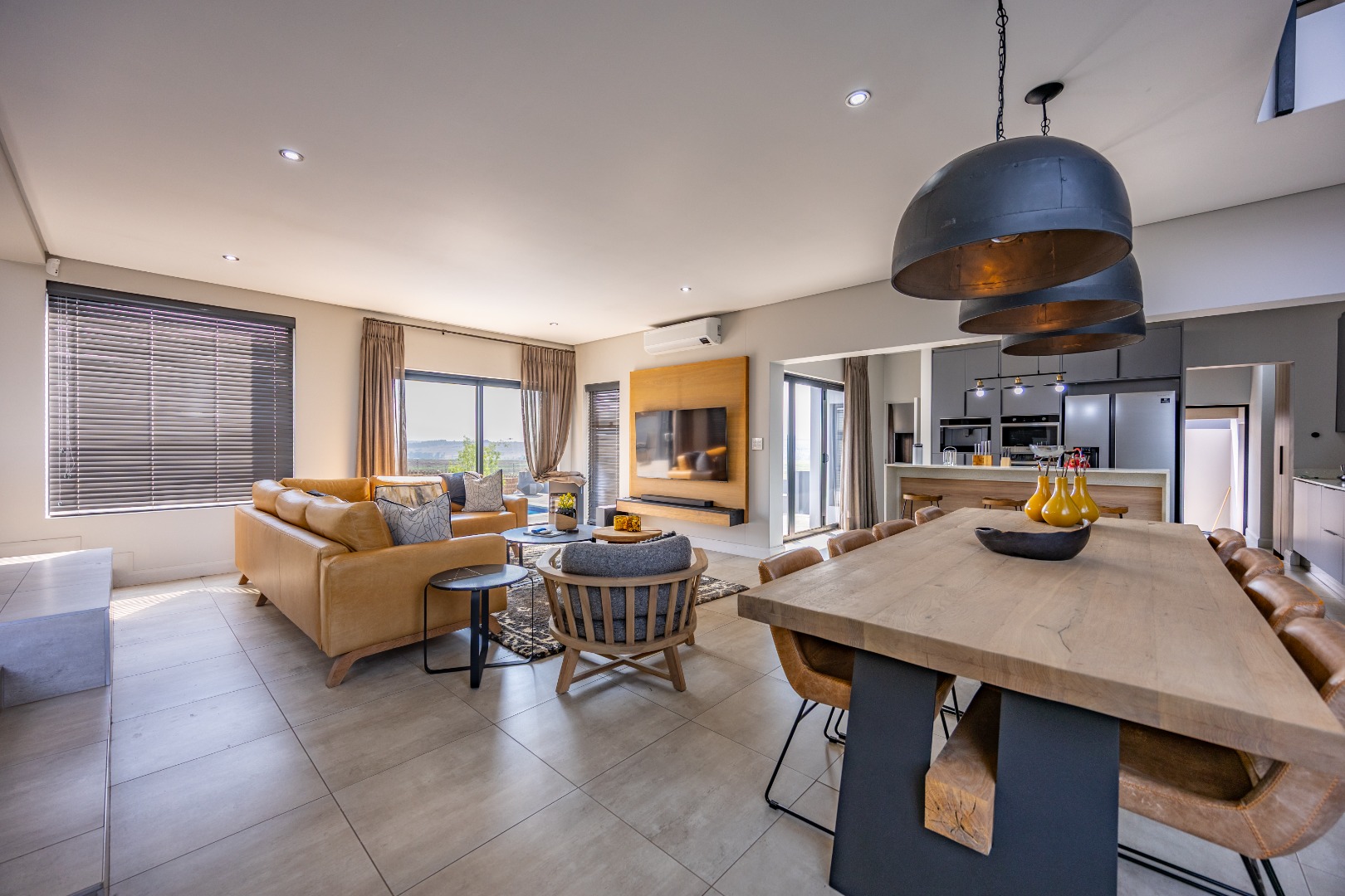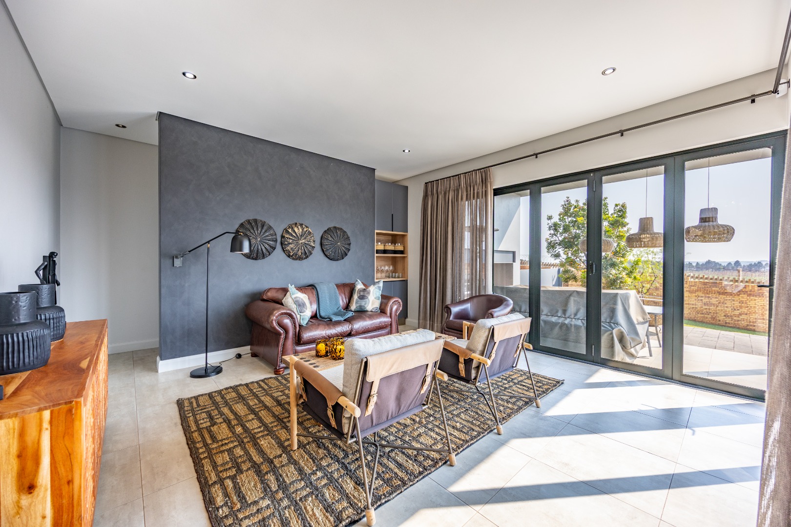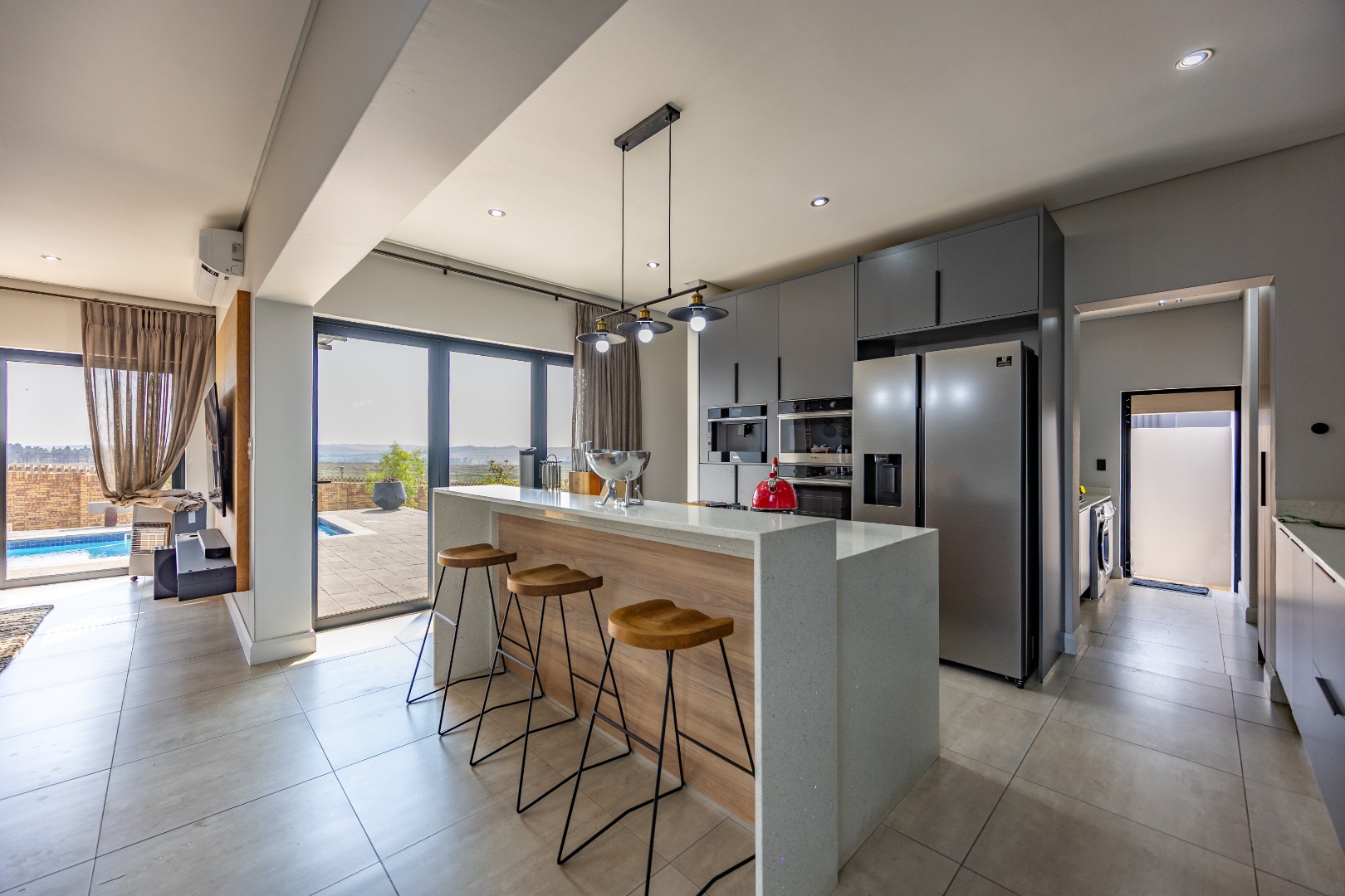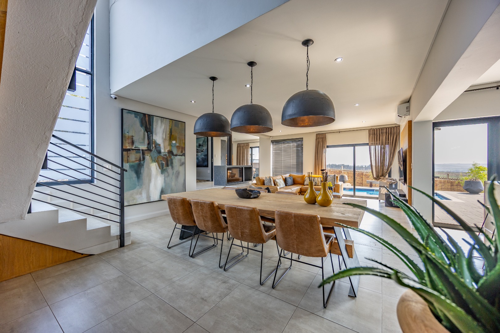 Discover a home where modern sophistication meets smart, sustainable living in this fully furnished rental opportunity. Perfectly positioned with uninterrupted views over the Irene farm grounds, this contemporary residence offers the ultimate blend of luxury, functionality, and style. The open-plan living spaces flow seamlessly from the gourmet kitchen with built-in coffee machine and scullery - into the dining, lounge, and entertainment areas, all opening directly to the pool patio and manicured garden. A private study, guest cloakroom, and an en-suite bedroom with pool access make the ground floor as versatile as it is inviting.
