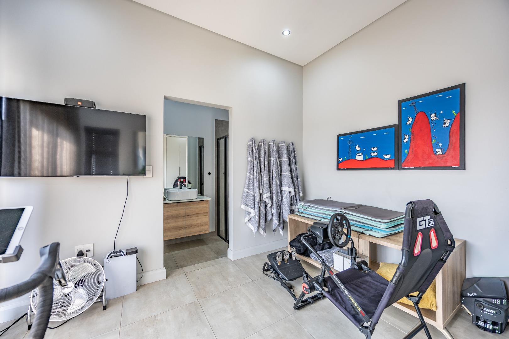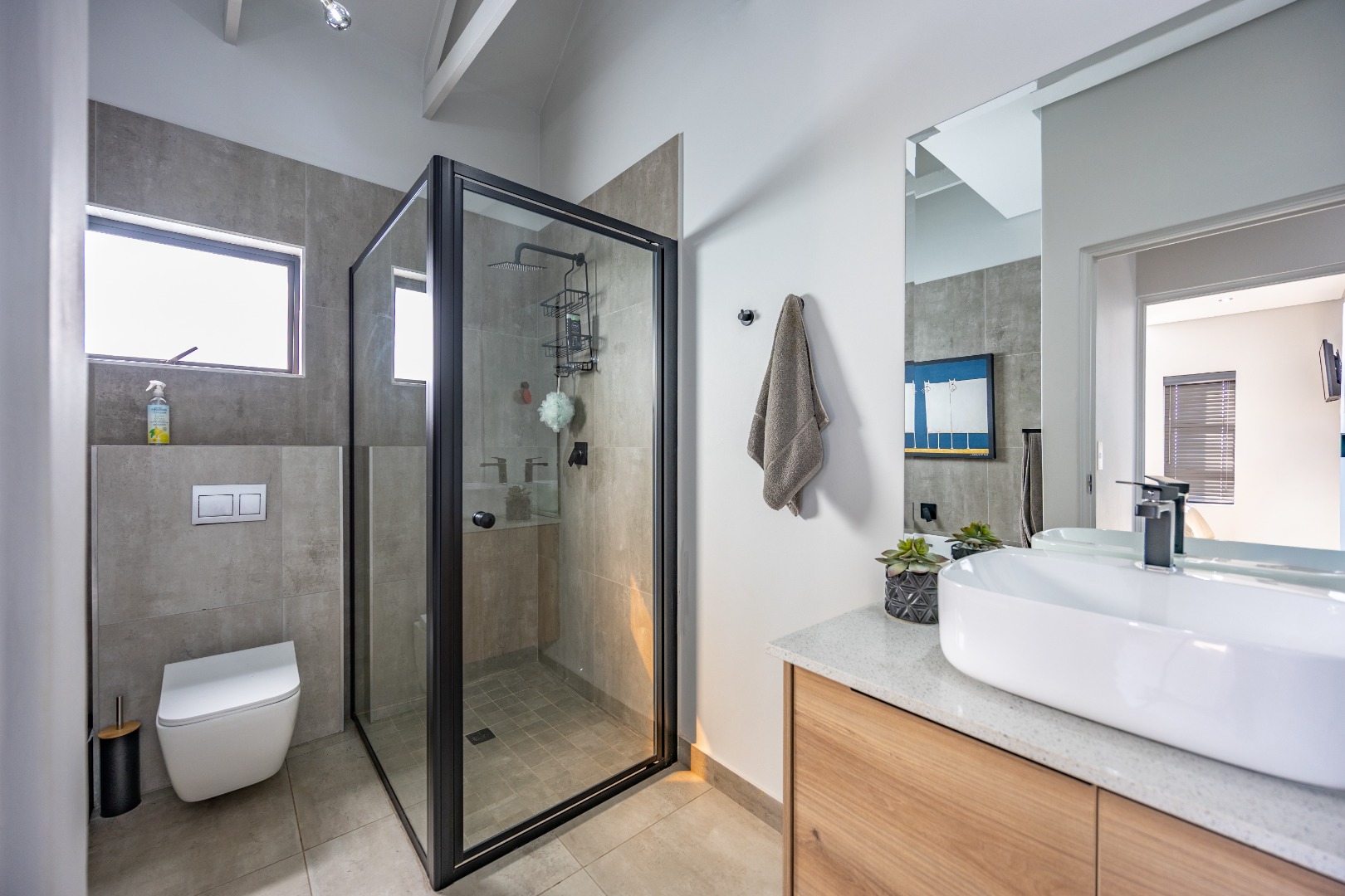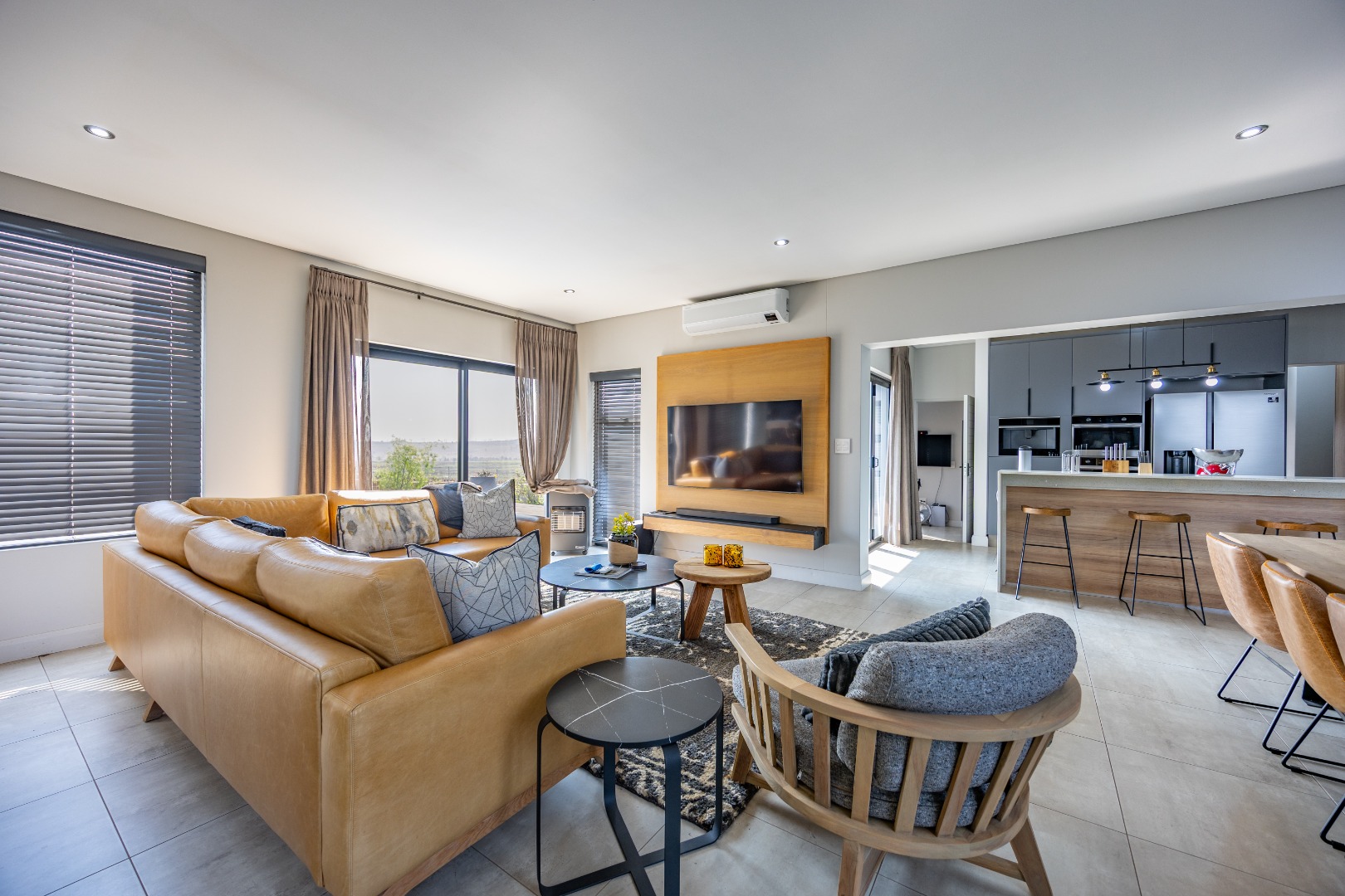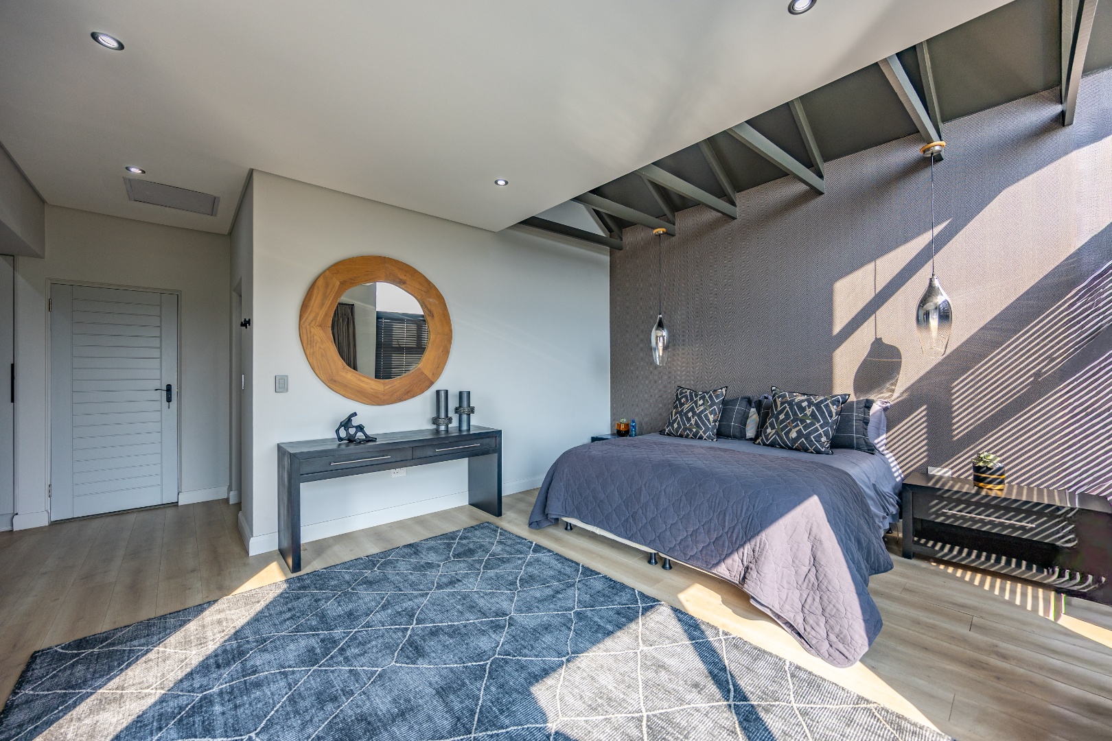 Upstairs, the main suite is a private sanctuary featuring a walk-in closet, spa-like en-suite bathroom, and a balcony that frames serene, panoramic vistas. Two additional bedrooms share a full bathroom, one with its own balcony while a pajama lounge offers the perfect retreat for family relaxation. Whether hosting gatherings by the pool and built-in braai or enjoying quiet evenings in the boma, this home is designed to capture the essence of indoor-outdoor living.