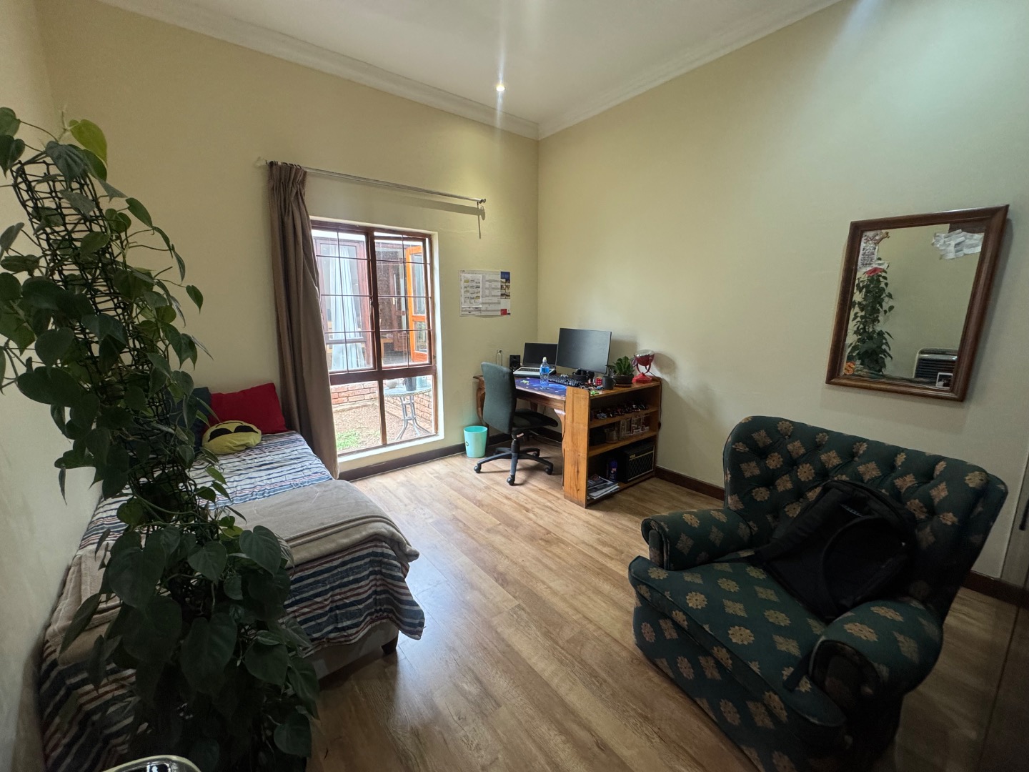 This property is perfectly suited for students, young professionals, or those seeking a flexible dual living arrangement, offering a pet-friendly environment. Residents can enjoy a private patio, access to a refreshing swimming pool, and a beautifully maintained garden, providing ideal spaces for relaxation and outdoor activities. A communal braai area is also available for social gatherings. Practical amenities include a dedicated laundry area, two secure garages, and an additional parking space.