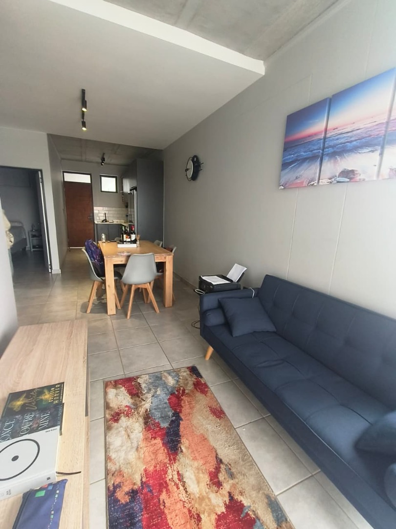 This contemporary 2-bedroom, 2-bathroom apartment, spanning a comfortable 78 square metres, offers an exceptional rental opportunity in the sought-after Brooklyn area of Pretoria, South Africa. Designed with modern living in mind, this furnished unit is perfectly suited for students or young professionals seeking a stylish and convenient lifestyle. The interior boasts an open-plan layout that seamlessly connects the living, dining, and kitchen areas, creating a spacious and inviting atmosphere. High-quality tiled flooring extends throughout the apartment, complemented by striking exposed concrete ceiling details that add an industrial-chic touch.