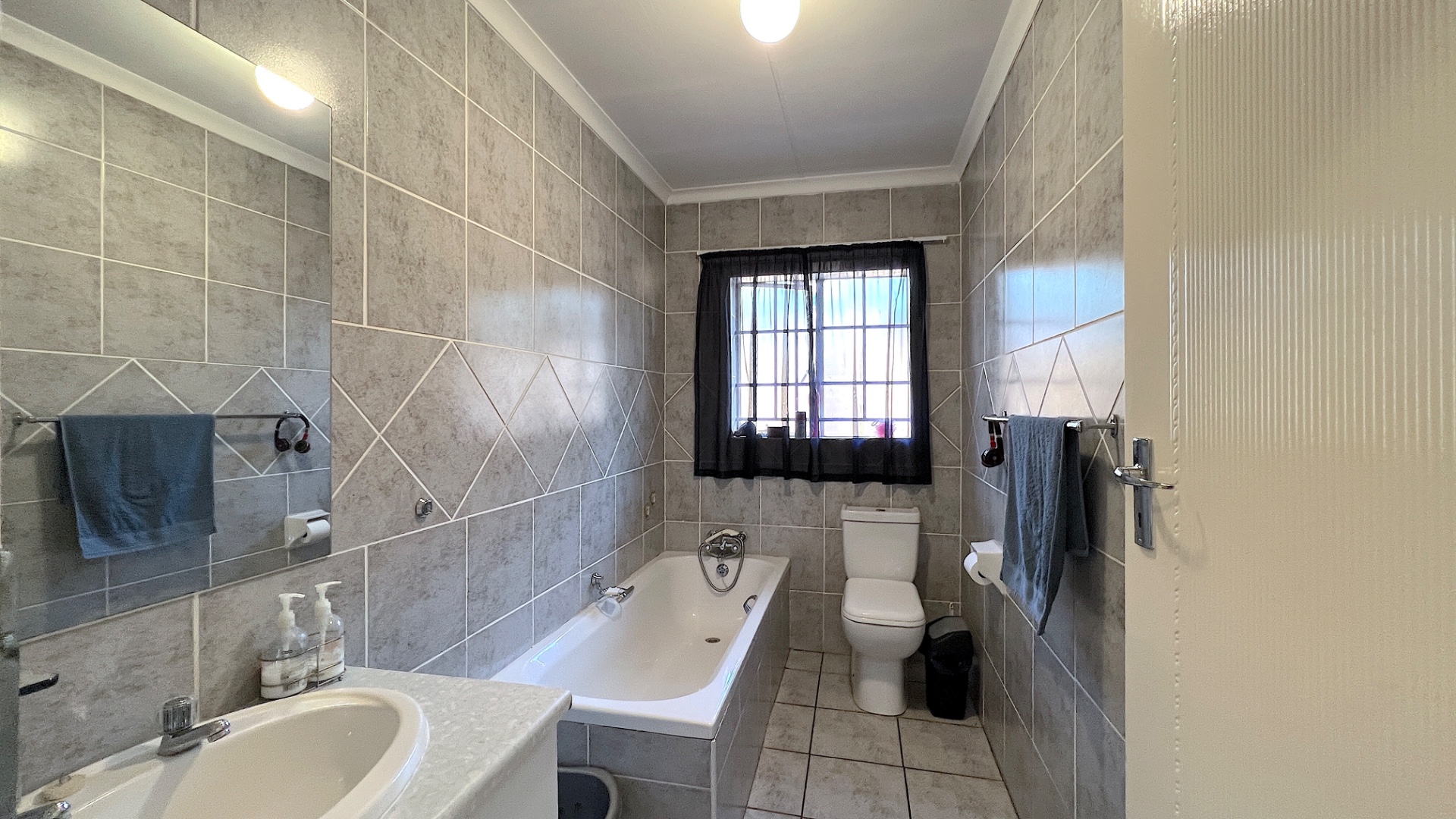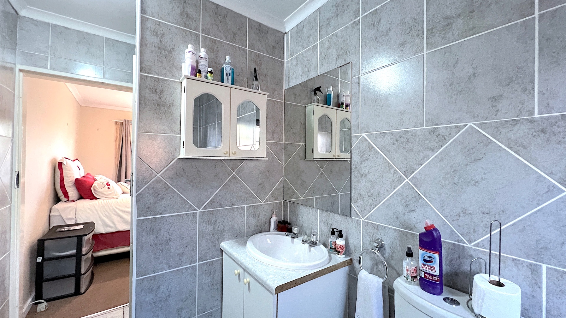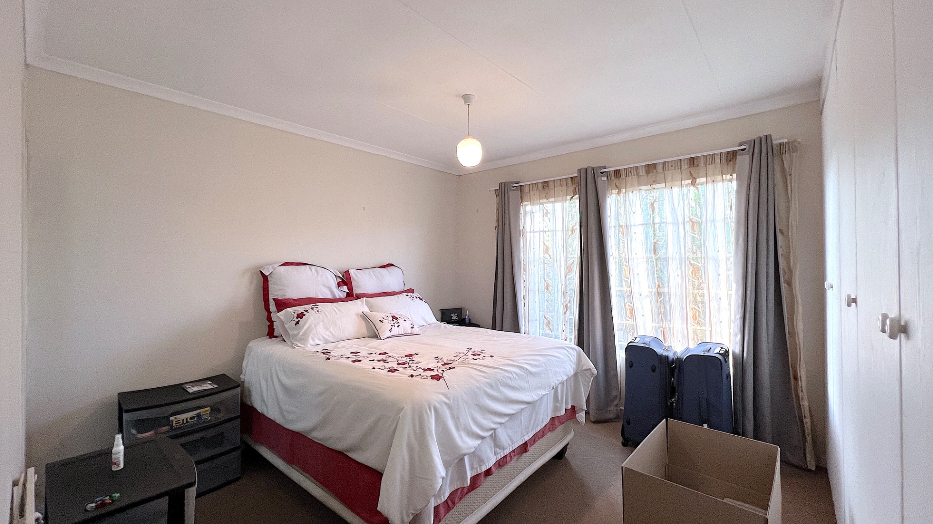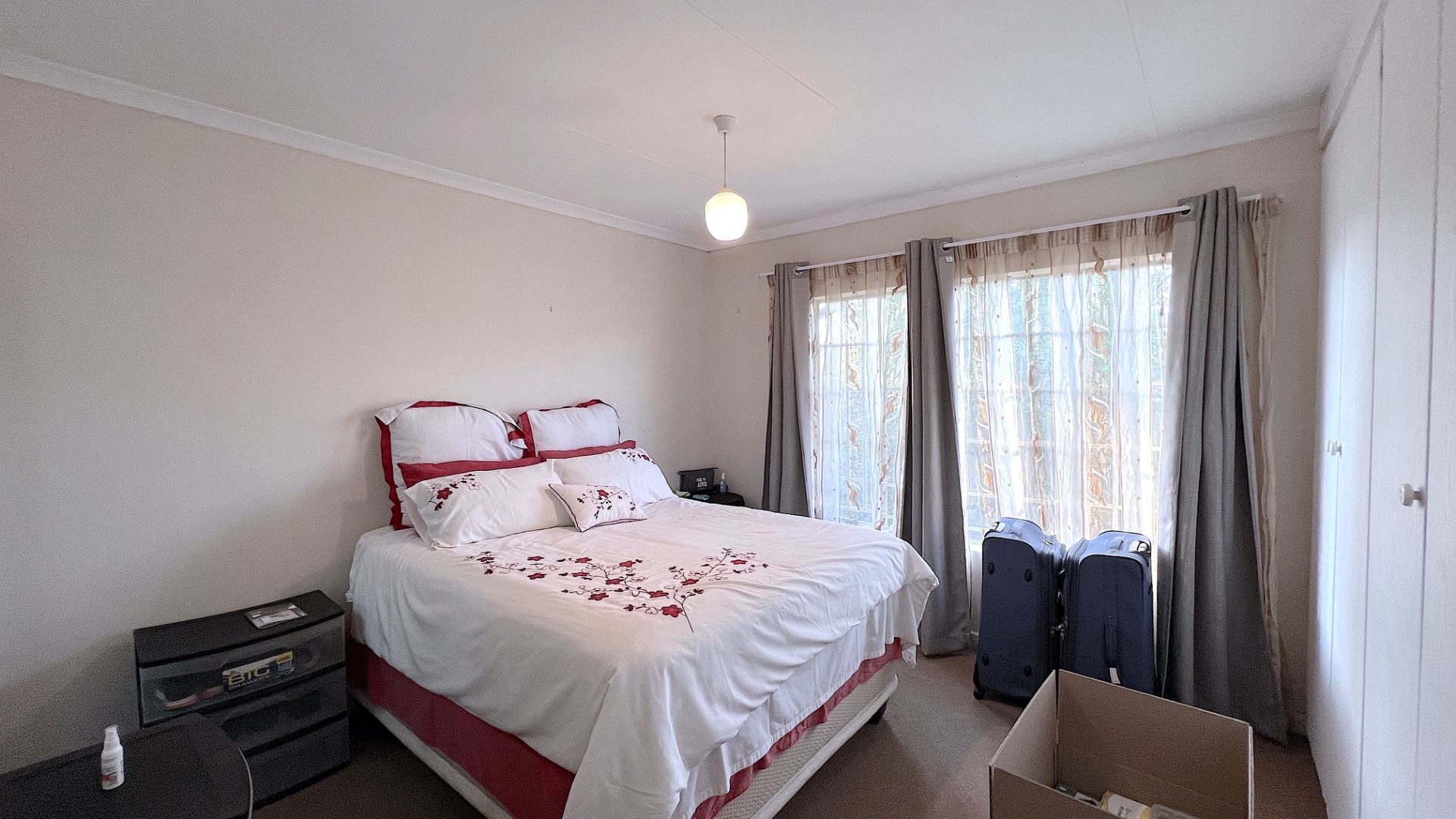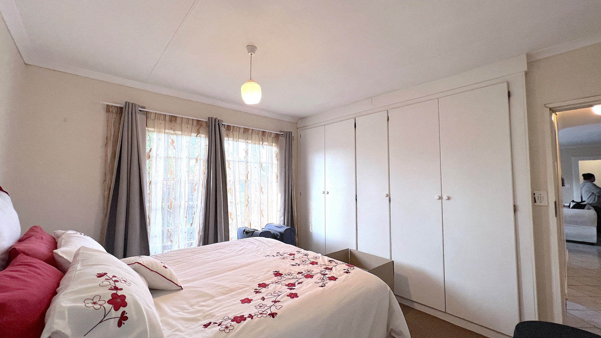 The master bedroom is generously sized and offers a private sanctuary with a full en-suite bathroom. The two additional bedrooms are equipped with ample built-in cupboards and share a second, neatly finished bathroom.