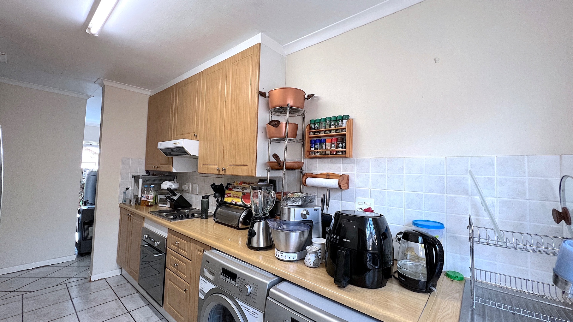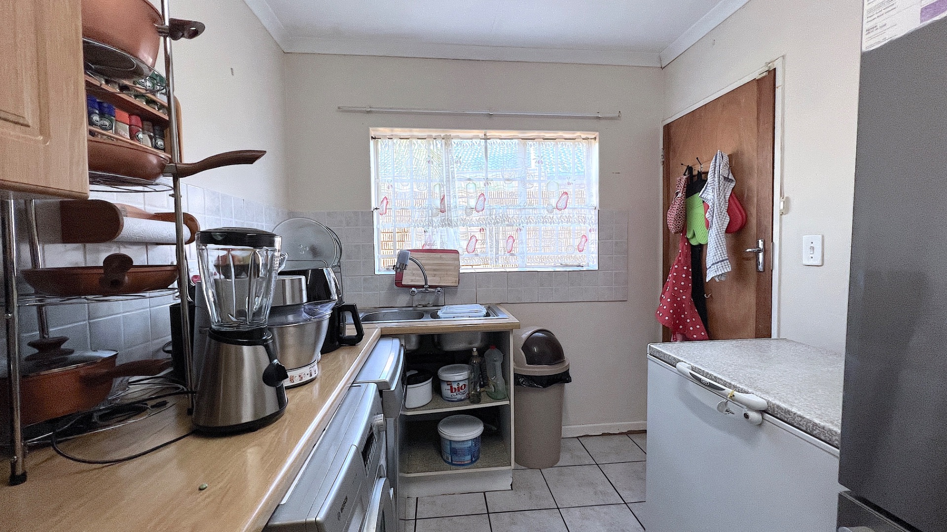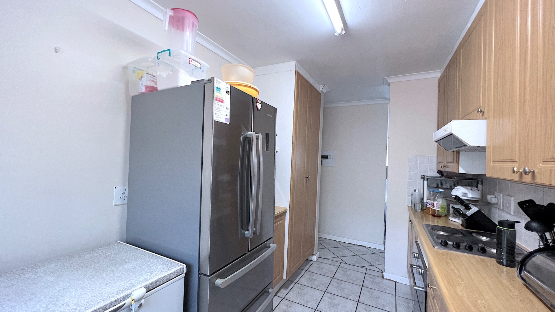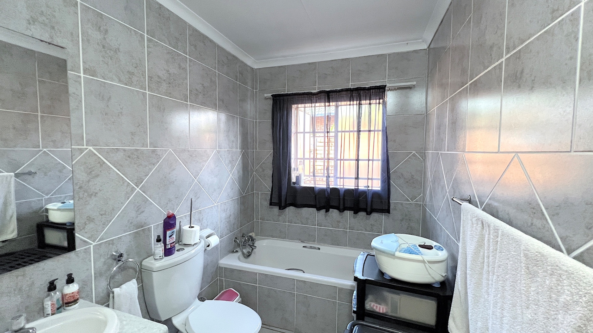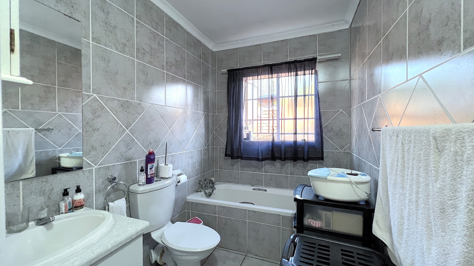 The master bedroom is generously sized and offers a private sanctuary with a full en-suite bathroom. The two additional bedrooms are equipped with ample built-in cupboards and share a second, neatly finished bathroom.