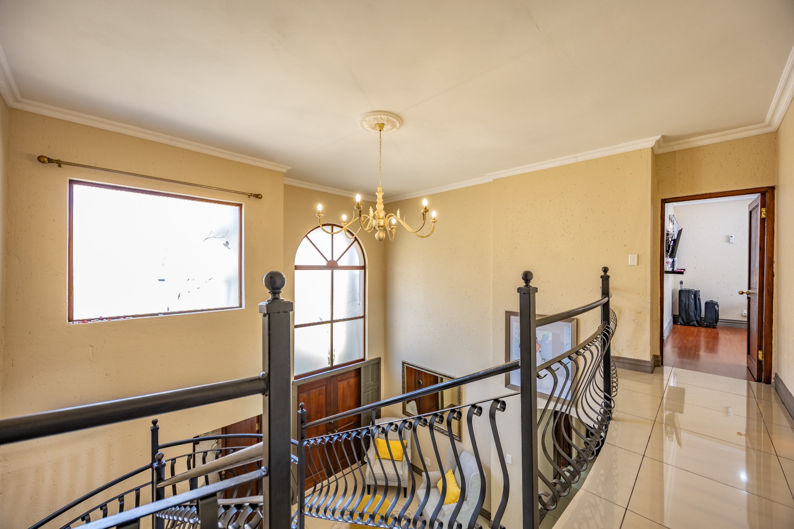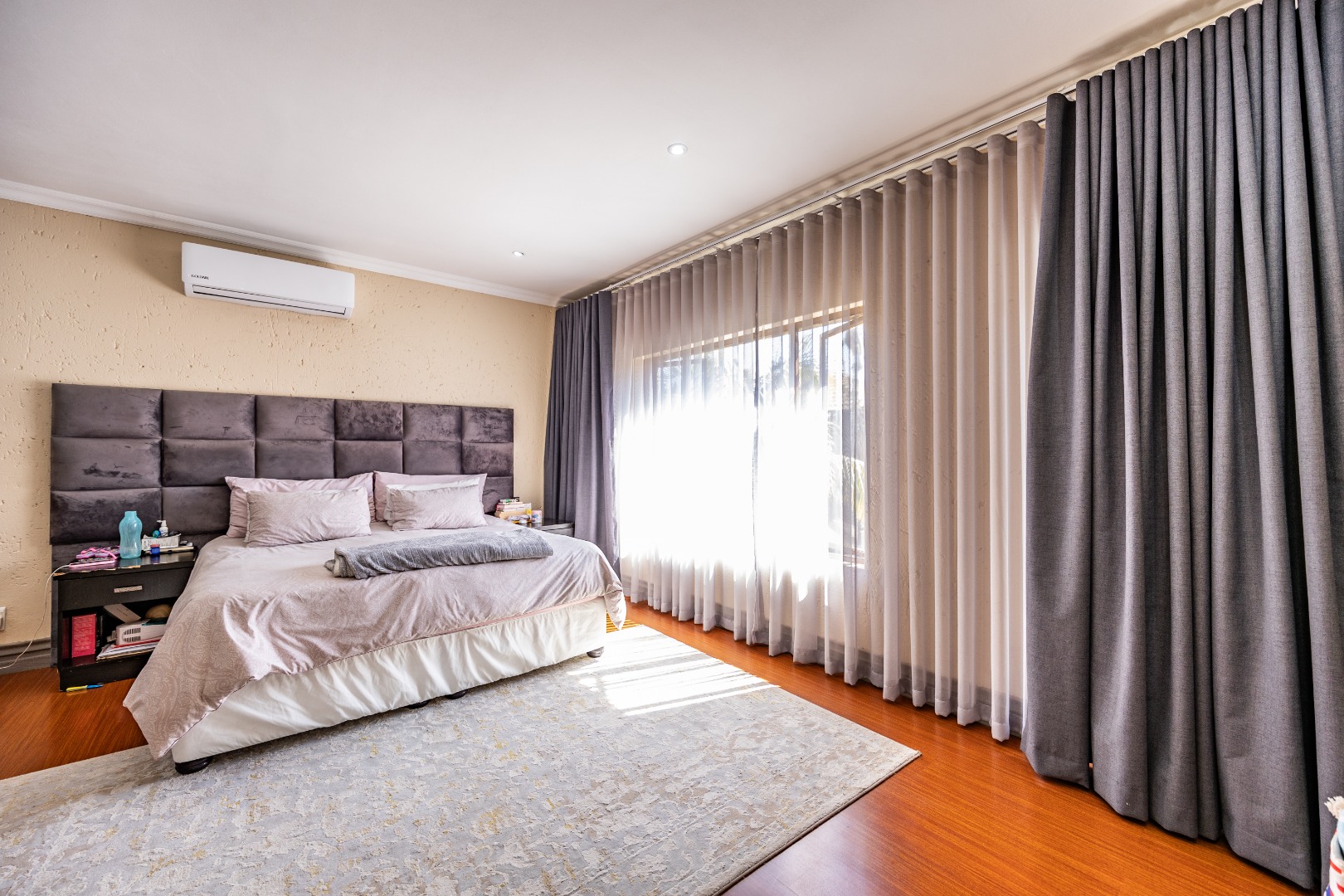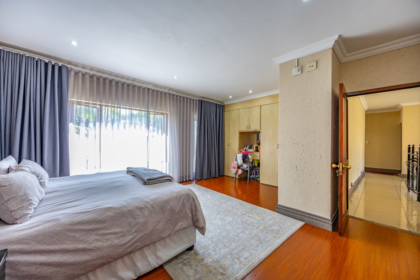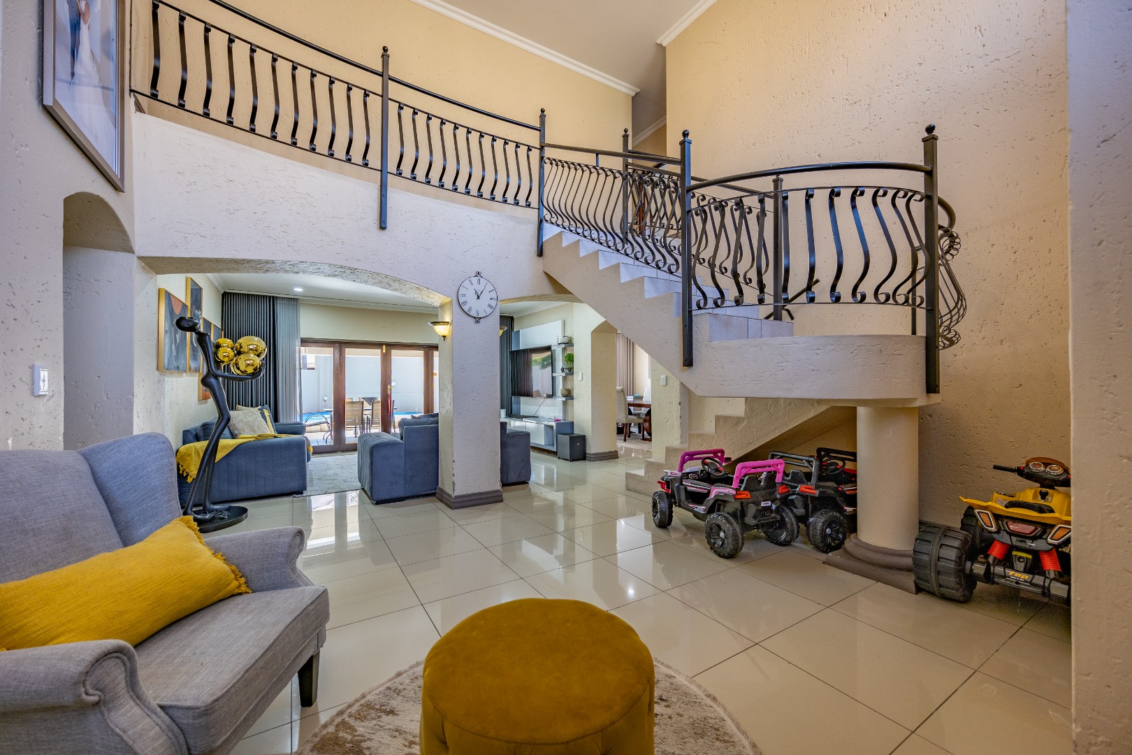 Step inside to high ceilings and multiple living areas. The formal TV lounge flows into a dining room with a cozy wood-burning fireplace and doors opening up to the outdoor entertainment space. The newly renovated kitchen is a chef’s delight, featuring a Defy oven, electric hob, extractor fan, double-door fridge space, and a separate scullery with room for three appliances. A second lounge and a dedicated office provide flexibility for work and relaxation.