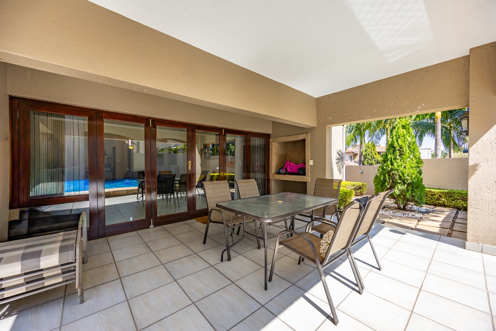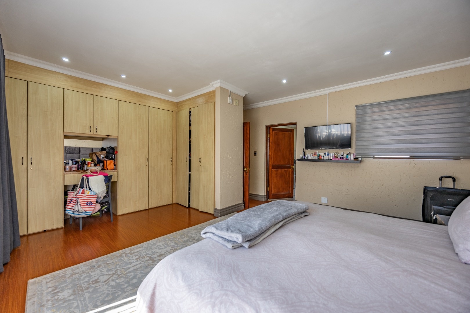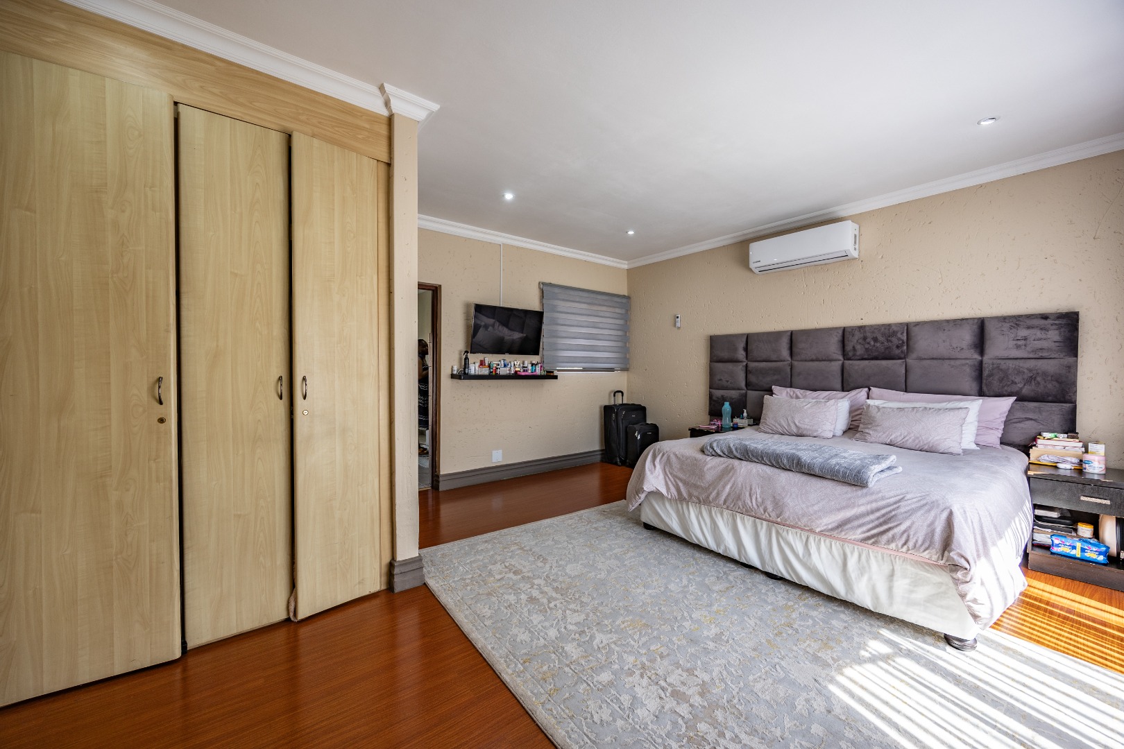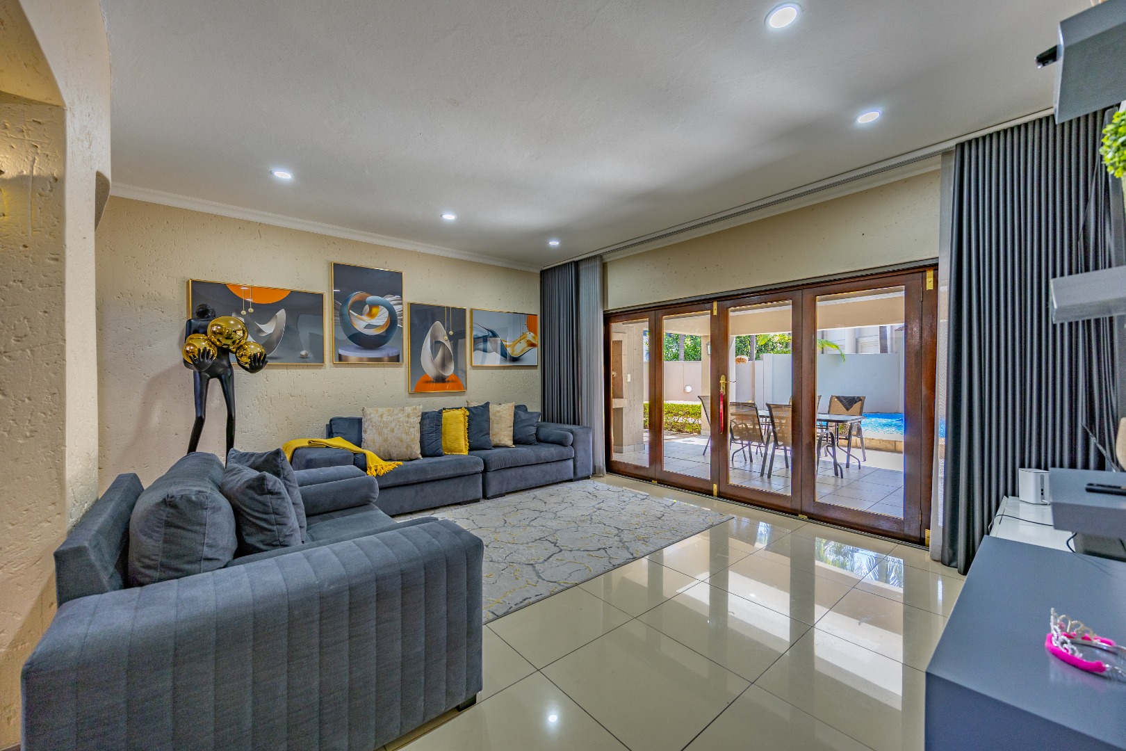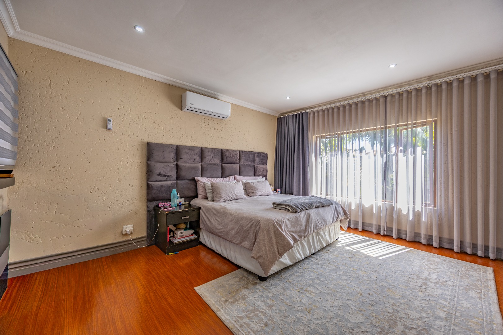Step inside to high ceilings and multiple living areas. The formal TV lounge flows into a dining room with a cozy wood-burning fireplace and doors opening up to the outdoor entertainment space. The newly renovated kitchen is a chef’s delight, featuring a Defy oven, electric hob, extractor fan, double-door fridge space, and a separate scullery with room for three appliances. A second lounge and a dedicated office provide flexibility for work and relaxation.
