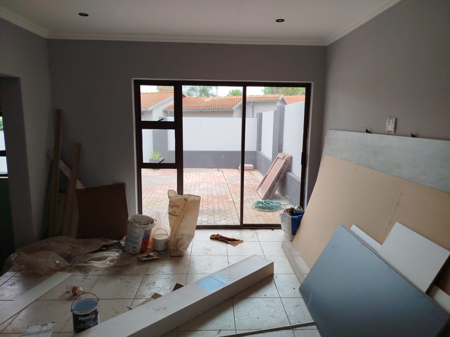 Discover this inviting 2-bedroom, 2-bathroom rental property located in the desirable Garsfontein suburb of Pretoria, South Africa. This residence offers a practical layout designed for comfortable living, featuring a dedicated lounge and dining room, complemented by an open-plan design that enhances the sense of space. The property includes a functional kitchen, which presents a blend of modern and classic elements, with some areas showcasing light wood-grain cabinetry, dark granite-look countertops, and tiled backsplashes, providing ample storage and preparation space. While some areas are undergoing updates, this offers a unique opportunity for tenants to personalize their living environment. The home is ideal for individuals or small families seeking a convenient and pet-friendly living solution. Large glass sliding doors connect the interior living space to a paved outdoor patio area and a garden, perfect for relaxation or entertaining. With two dedicated parking spaces, convenience is assured. The property is unfurnished, allowing residents to bring their own style and furnishings to create a true home. Security is a priority, with features including an access gate, electric fencing, and a totally walled perimeter, providing peace of mind. This suburban property offers a tranquil environment while maintaining easy access to local amenities and transport routes. Key Features: * 2 Bedrooms, 2 Bathrooms * 1 Kitchen, 1 Dining Room, 1 Lounge * 2 Parking spaces * Pet-friendly accommodation * Access gate and electric fencing * Paved outdoor patio and garden * Open-plan living area * Sliding doors to outdoor space