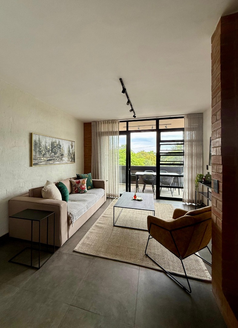 Discover the perfect blend of modern elegance and everyday comfort in this fully furnished, light-filled 2-bedroom apartment nestled in the sought-after Churchlands complex, just off Sussex Road in Pretoria. Ideal for young professionals or a small family, this impeccably styled unit features a sleek open-plan kitchen with granite countertops, a gas stove, and built-in breakfast seating – perfect for both casual meals and entertaining. The spacious living area showcases striking exposed brickwork and contemporary black finishes, flowing effortlessly onto a private patio made for morning coffee or sunset braais. The apartment includes two sophisticated bathrooms fitted with floating vanities and matte black fixtures, while the master bedroom enjoys excellent natural light and ample built-in wardrobes. The second bedroom comes with a double bed and can easily be adapted to your needs. With stylish tiled floors throughout and set in a secure, well-kept complex near top schools, shopping hubs, and major routes, this property offers convenience without compromise. Available immediately – seize the opportunity to call this standout space your next home. Contact us today to arrange a private viewing.