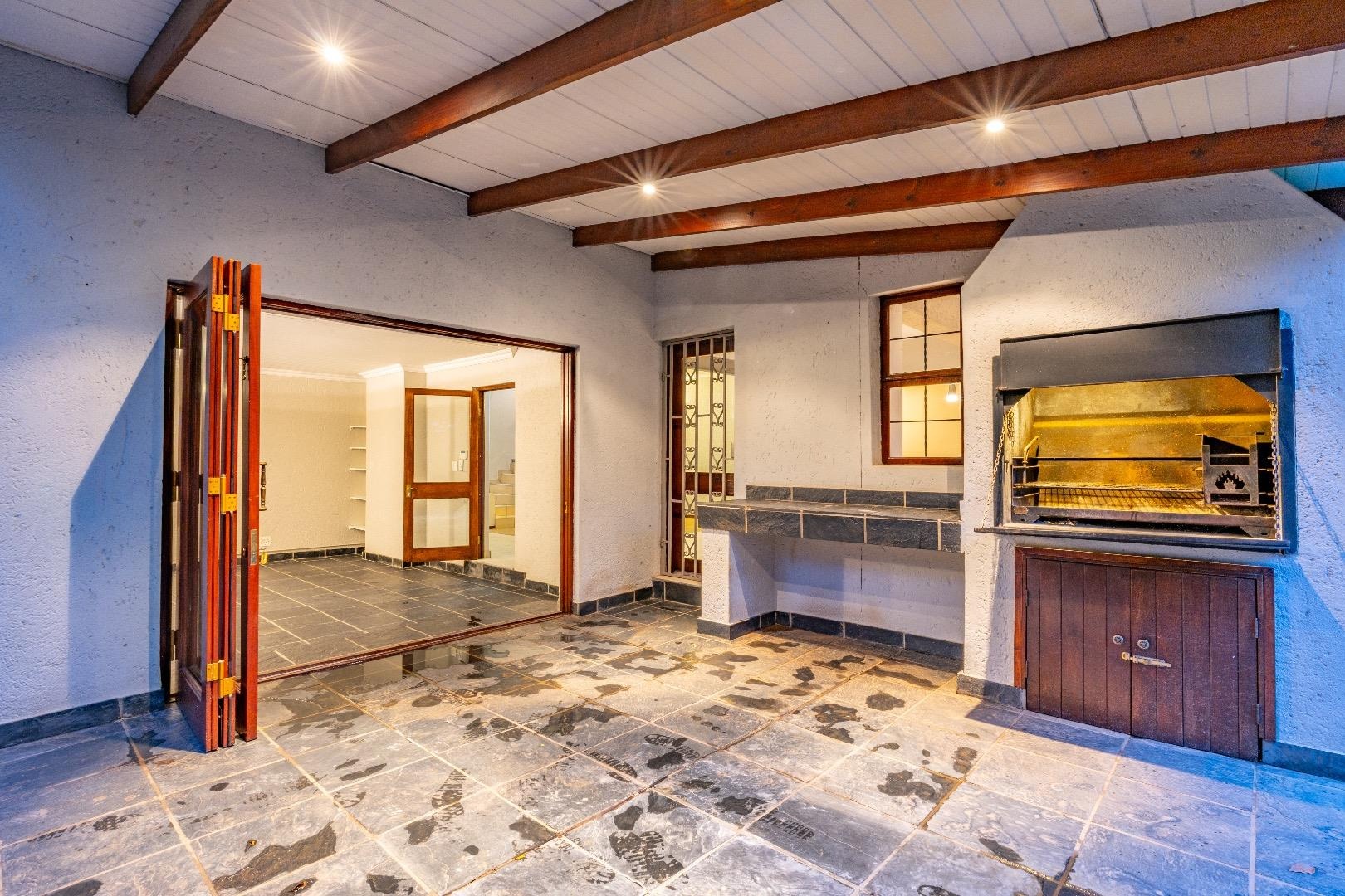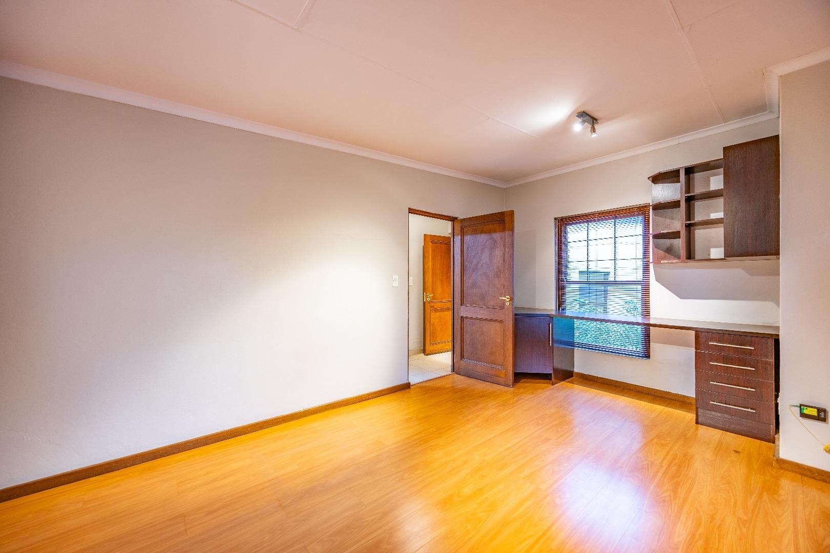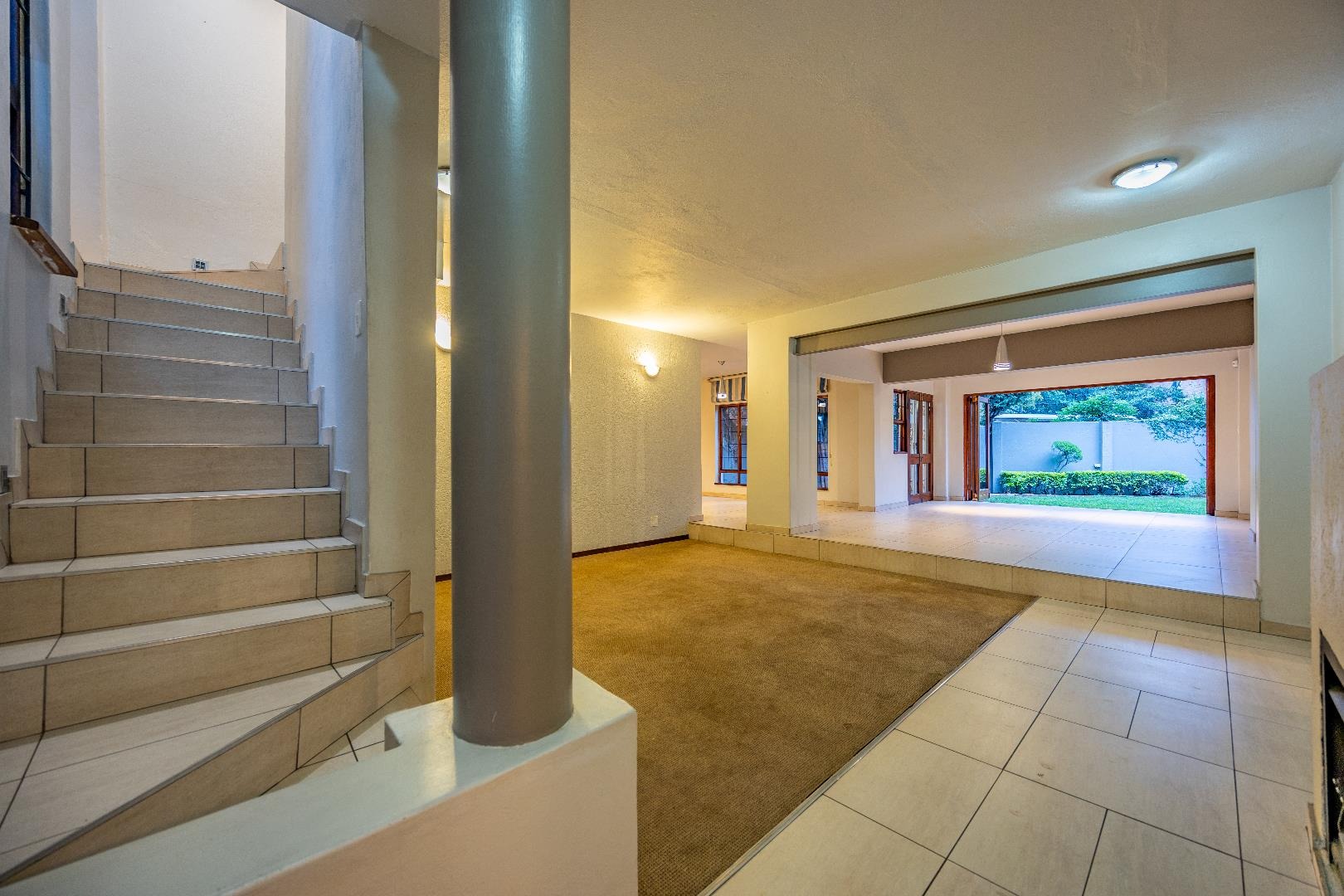 The modern kitchen serves as the functional centre of the home, featuring clean finishes, ample storage, and a separate scullery for added convenience. Upstairs, five well-proportioned bedrooms offer privacy and comfort, complemented by three and a half stylish bathrooms. The main suite provides a peaceful retreat with a beautifully finished en-suite bathroom and tranquil views of the leafy surroundings.