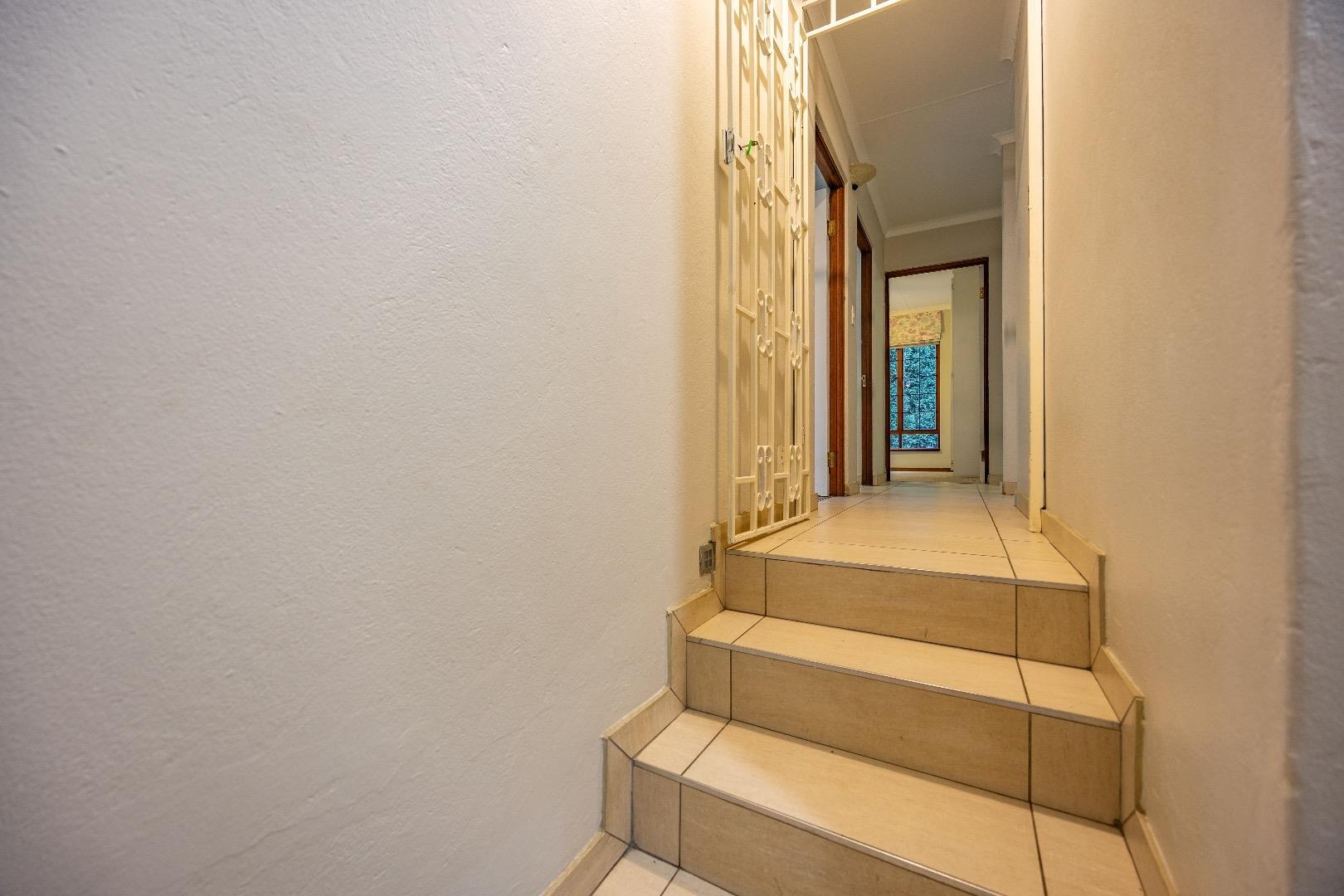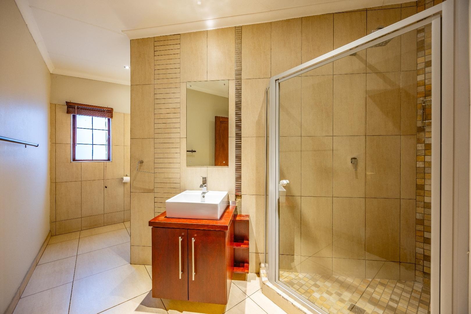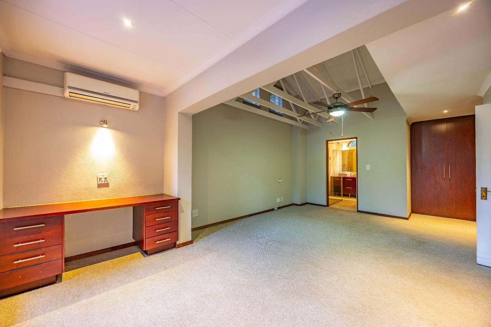 The modern kitchen serves as the functional centre of the home, featuring clean finishes, ample storage, and a separate scullery for added convenience. Upstairs, five well-proportioned bedrooms offer privacy and comfort, complemented by three and a half stylish bathrooms. The main suite provides a peaceful retreat with a beautifully finished en-suite bathroom and tranquil views of the leafy surroundings.