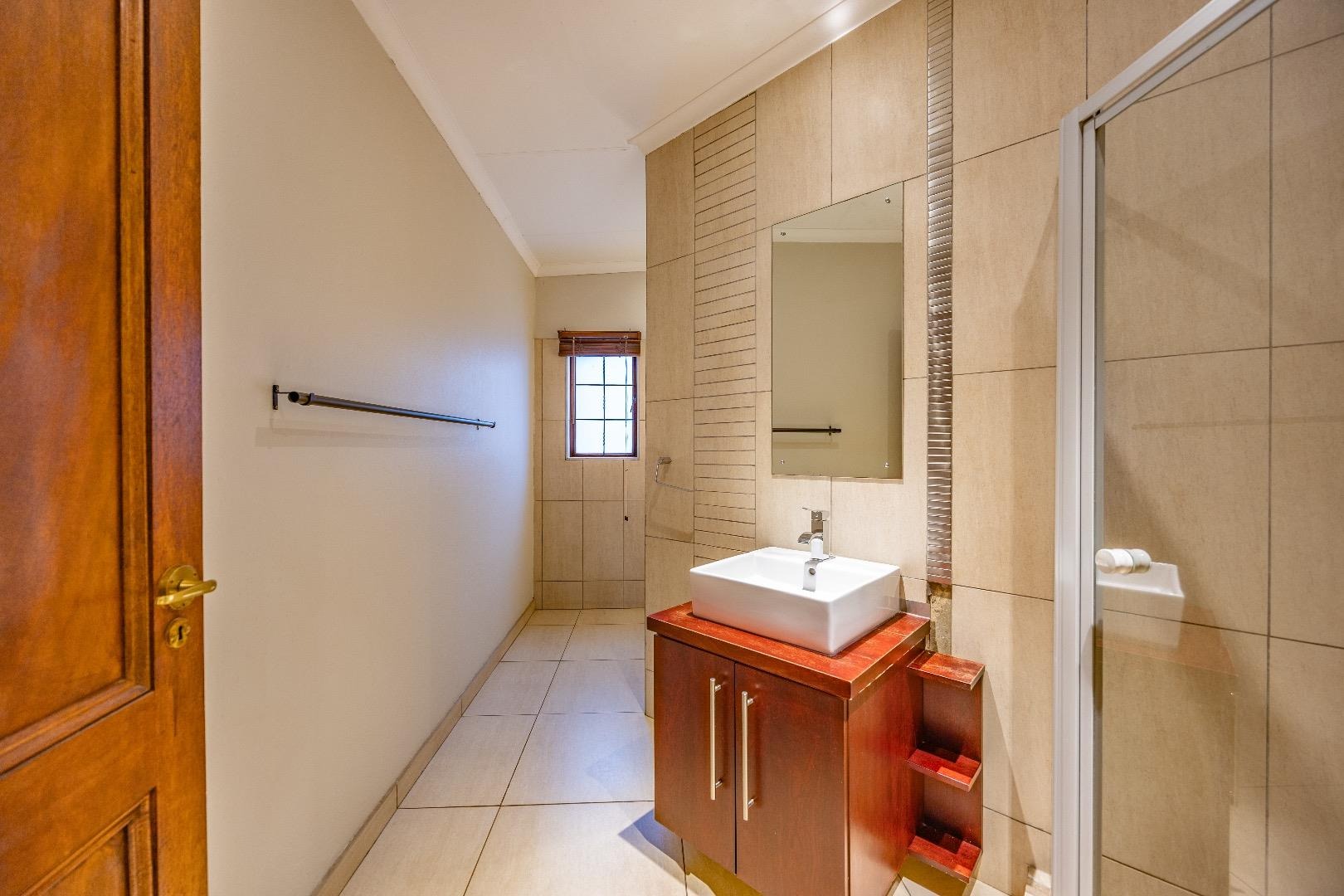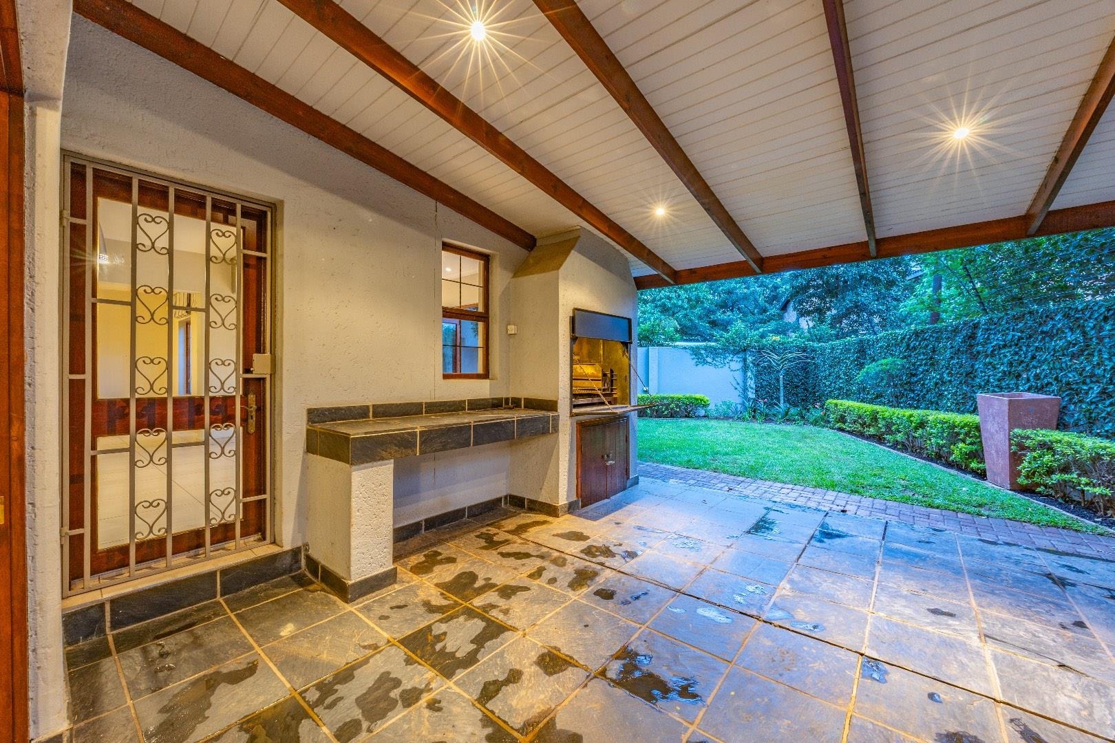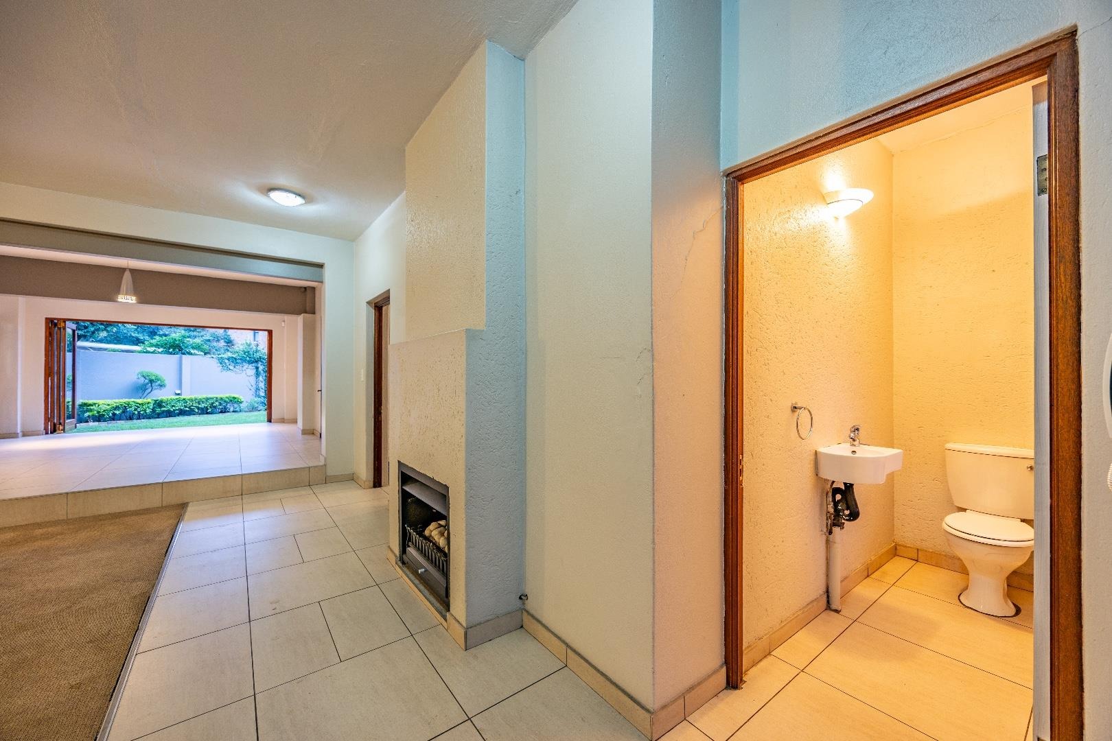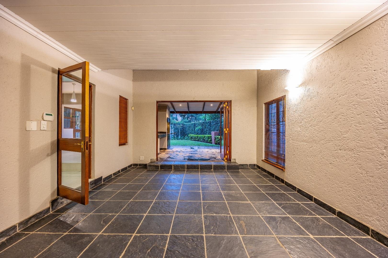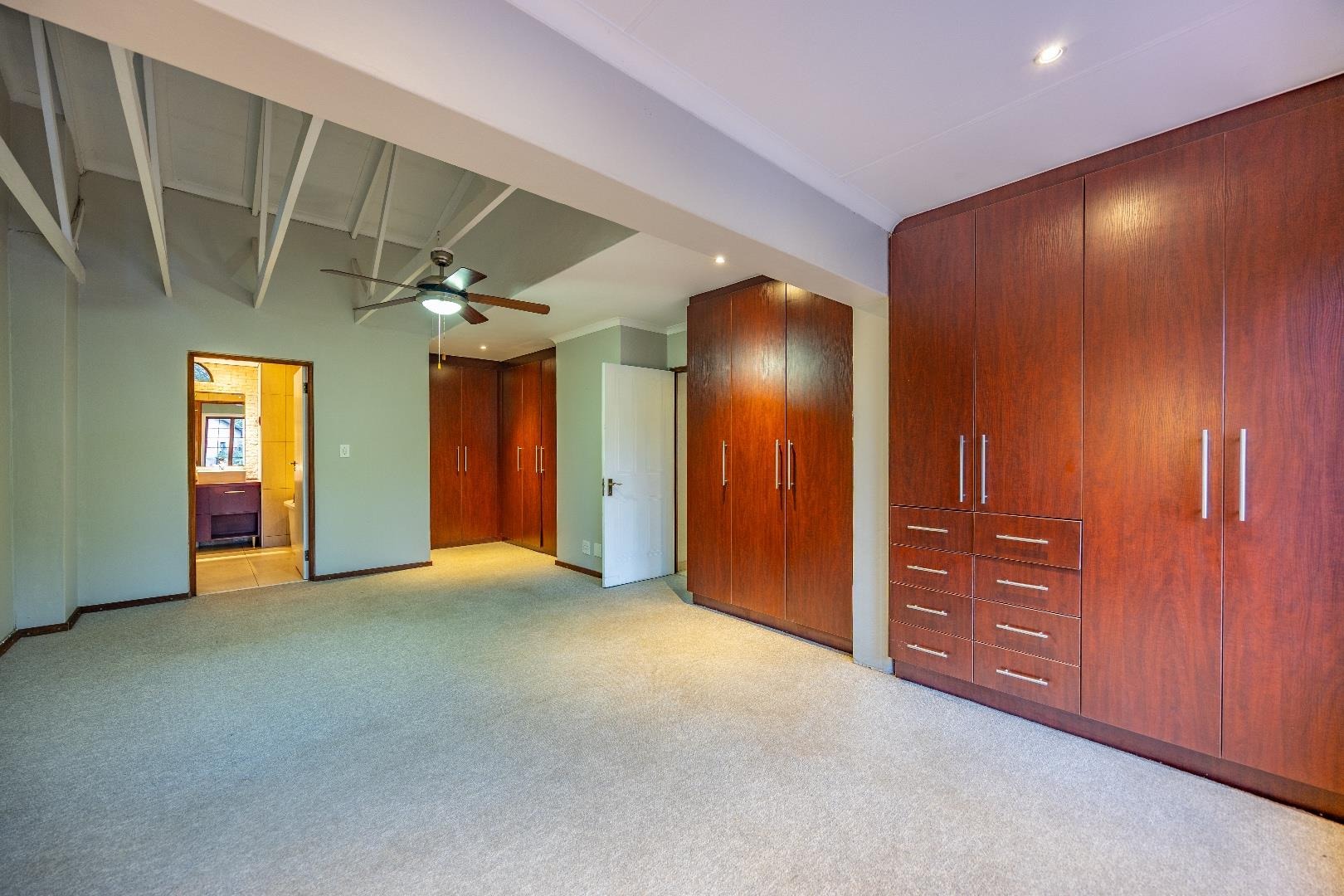 The modern kitchen serves as the functional centre of the home, featuring clean finishes, ample storage, and a separate scullery for added convenience. Upstairs, five well-proportioned bedrooms offer privacy and comfort, complemented by three and a half stylish bathrooms. The main suite provides a peaceful retreat with a beautifully finished en-suite bathroom and tranquil views of the leafy surroundings.