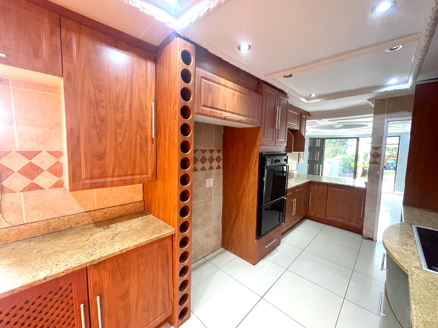 The lovely kitchen features granite countertops, ample cabinetry, and a separate scullery for added convenience. The main bedroom is a true retreat with a luxurious en-suite bathroom, an impressive walk-in closet, and direct access to the pool area. Each additional bedroom offers modern finishes and plenty of natural light, creating a warm and inviting feel throughout.