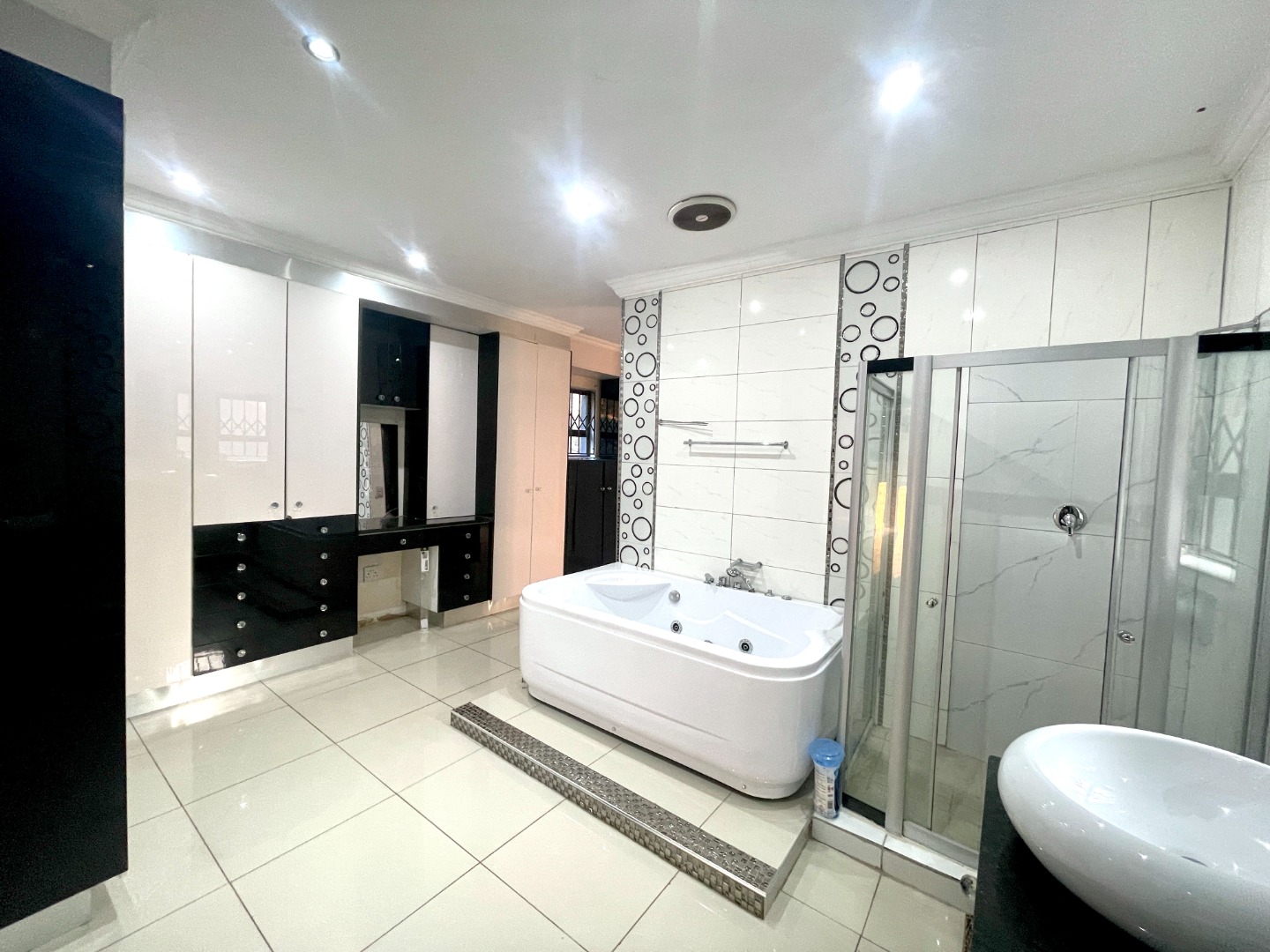 The lovely kitchen features granite countertops, ample cabinetry, and a separate scullery for added convenience. The main bedroom is a true retreat with a luxurious en-suite bathroom, an impressive walk-in closet, and direct access to the pool area. Each additional bedroom offers modern finishes and plenty of natural light, creating a warm and inviting feel throughout.