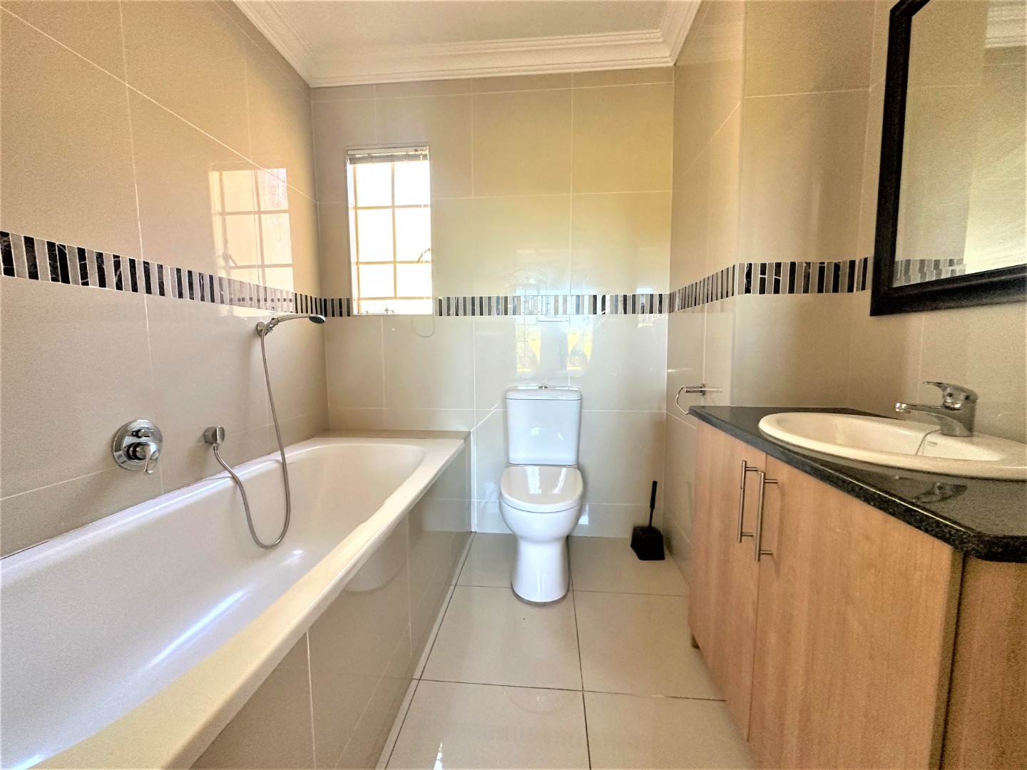Discover comfortable living in this 88 sqm residential rental unit, ideally situated within a secure complex in Newlands, Pretoria. This well-appointed property features three bedrooms and two bathrooms, including a convenient en-suite, alongside an additional guest toilet for added functionality. The heart of the home boasts an open-plan layout, seamlessly connecting the lounge, dining room, and a dedicated family/TV room, all benefiting from abundant natural light and durable tiled flooring. The modern kitchen is equipped with light wood cabinetry, sleek dark granite countertops, a built-in oven, hob, extractor fan, and a practical breakfast bar, making it perfect for everyday meals and entertaining. Each of the three bedrooms offers ample space and natural light, complemented by built-in wardrobes for efficient storage. The property extends its appeal outdoors with a private balcony, providing scenic views and a tranquil space to relax. Residents also benefit from access to a communal swimming pool and a well-maintained garden, enhancing the lifestyle offerings within the complex. This rental is perfectly suited for small families or professionals seeking a secure and convenient living environment. Security is paramount, with features including 24-hour security, CCTV surveillance, a security post, access gate, intercom system, electric fencing, burglar bars, and a security gate. Furthermore, the unit is fibre-ready, ensuring high-speed internet connectivity. With two dedicated parking bays and a cul-de-sac location, this property combines comfort, security, and accessibility in a desirable Pretoria suburb. Key Features: * 3 Bedrooms, 2 Bathrooms (1 en-suite) * 88 sqm Floor Size * Open-plan lounge, dining, and family/TV room * Modern kitchen with granite countertops * Balcony with scenic views * Communal Pool & Garden * 2 Dedicated Parking Bays * 24-Hour Security & Fibre Ready * Secure complex in Newlands, Pretoria