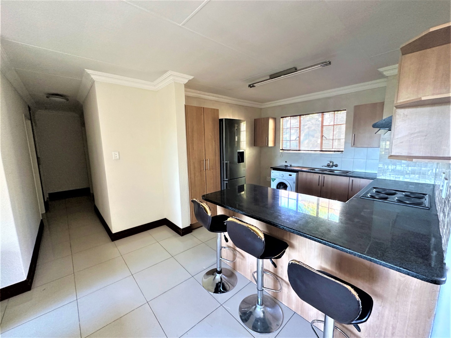 Discover comfortable living in this 88 sqm residential rental unit, ideally situated within a secure complex in Newlands, Pretoria. This well-appointed property features three bedrooms and two bathrooms, including a convenient en-suite, alongside an additional guest toilet for added functionality. The heart of the home boasts an open-plan layout, seamlessly connecting the lounge, dining room, and a dedicated family/TV room, all benefiting from abundant natural light and durable tiled flooring. The modern kitchen is equipped with light wood cabinetry, sleek dark granite countertops, a built-in oven, hob, extractor fan, and a practical breakfast bar, making it perfect for everyday meals and entertaining. Each of the three bedrooms offers ample space and natural light, complemented by built-in wardrobes for efficient storage. The property extends its appeal outdoors with a private balcony, providing scenic views and a tranquil space to relax. Residents also benefit from access to a communal swimming pool and a well-maintained garden, enhancing the lifestyle offerings within the complex. This rental is perfectly suited for small families or professionals seeking a secure and convenient living environment. Security is paramount, with features including 24-hour security, CCTV surveillance, a security post, access gate, intercom system, electric fencing, burglar bars, and a security gate. Furthermore, the unit is fibre-ready, ensuring high-speed internet connectivity. With two dedicated parking bays and a cul-de-sac location, this property combines comfort, security, and accessibility in a desirable Pretoria suburb. Key Features: * 3 Bedrooms, 2 Bathrooms (1 en-suite) * 88 sqm Floor Size * Open-plan lounge, dining, and family/TV room * Modern kitchen with granite countertops * Balcony with scenic views * Communal Pool & Garden * 2 Dedicated Parking Bays * 24-Hour Security & Fibre Ready * Secure complex in Newlands, Pretoria