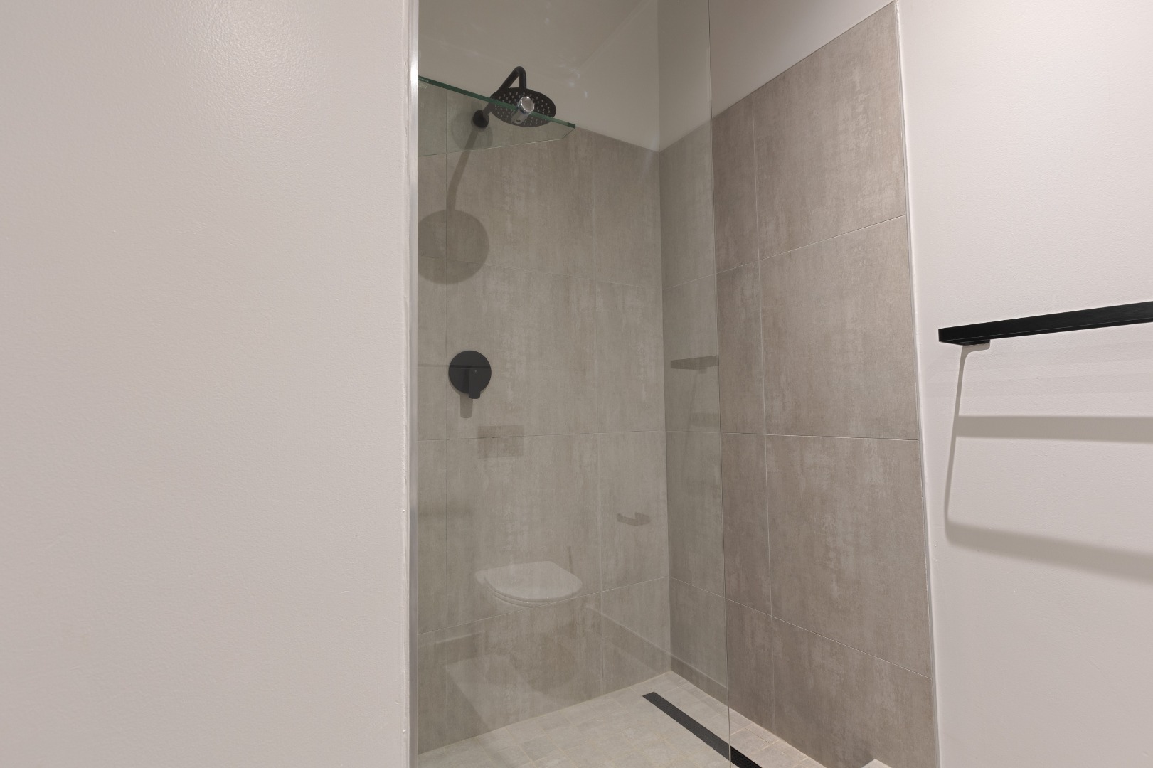 Each of the three bedrooms is generously sized with modern built-in cupboards and premium flooring. The bathrooms are finished to a superior standard, showcasing floating vanities, large mirrors, frameless showers, and refined neutral tiling. The main en-suite offers a luxurious double vanity and spacious shower, creating a serene retreat. Every bathroom carries the same contemporary aesthetic, ensuring a cohesive and elegant feel throughout the home.