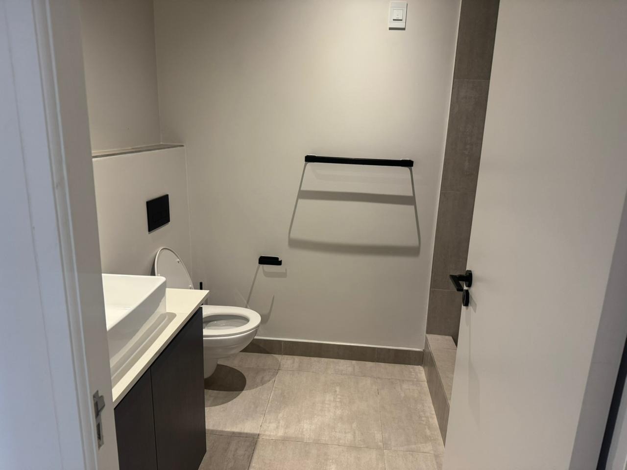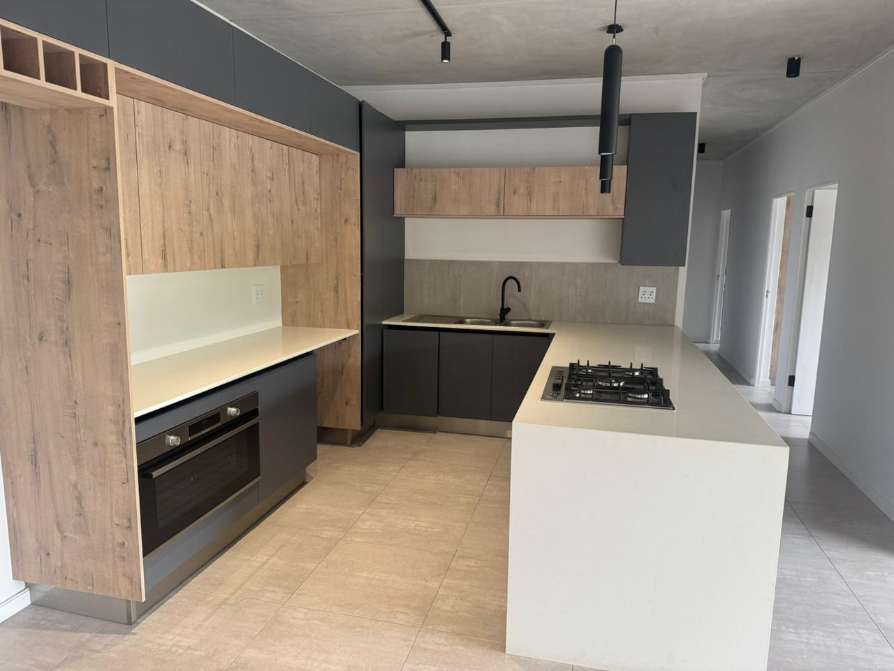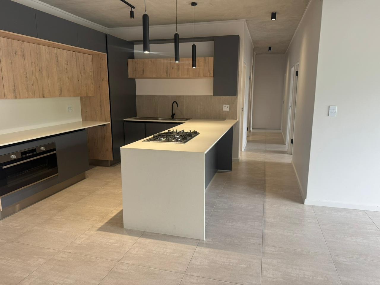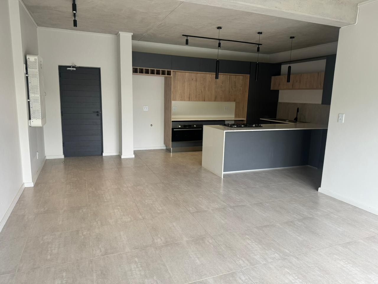 This stylish, modern apartment offers an open-plan living experience designed for comfort and convenience. The contemporary kitchen is fitted with sleek touch cupboards, a gas setup suitable for a double-door fridge, and flows effortlessly into the TV living area. Large sliding doors open onto a private balcony, creating a seamless indoor-outdoor lifestyle ideal for relaxing or entertaining.