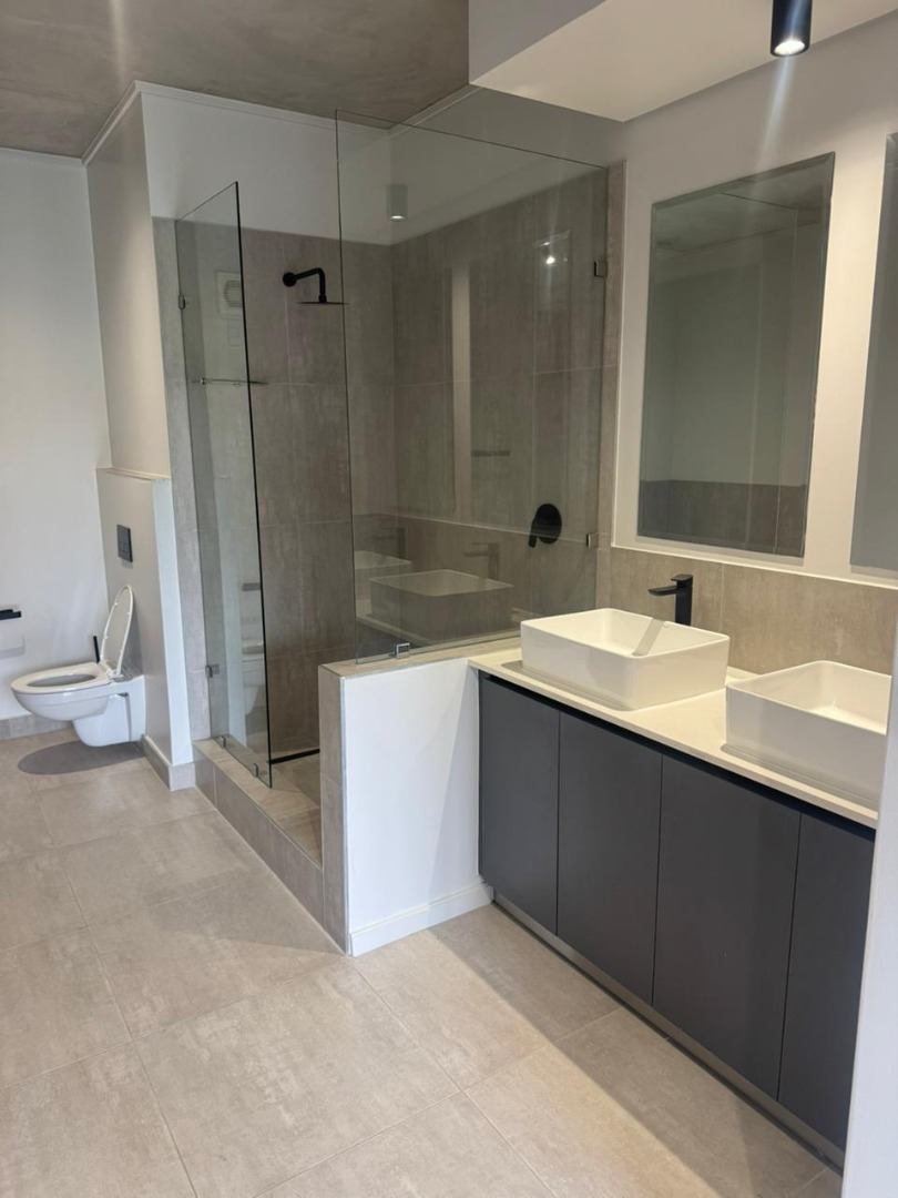 The apartment features three well-appointed bedrooms. The first and second bedrooms both include built-in cupboards and are serviced by two bathrooms—one with a toilet and basin, and a second bathroom offering a shower, basin, and toilet. The spacious main bedroom is a luxurious retreat with a full en-suite bathroom, complete with a double basin, shower, bath, toilet, and built-in cupboards. A linen cupboard in the passage adds extra practical storage.