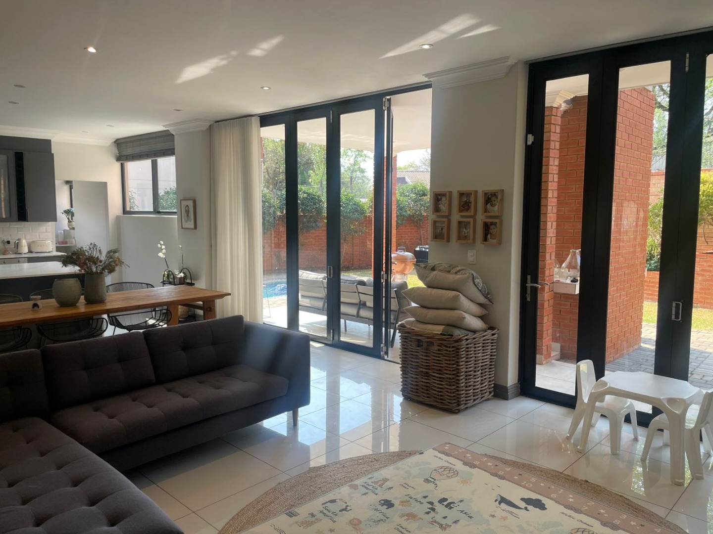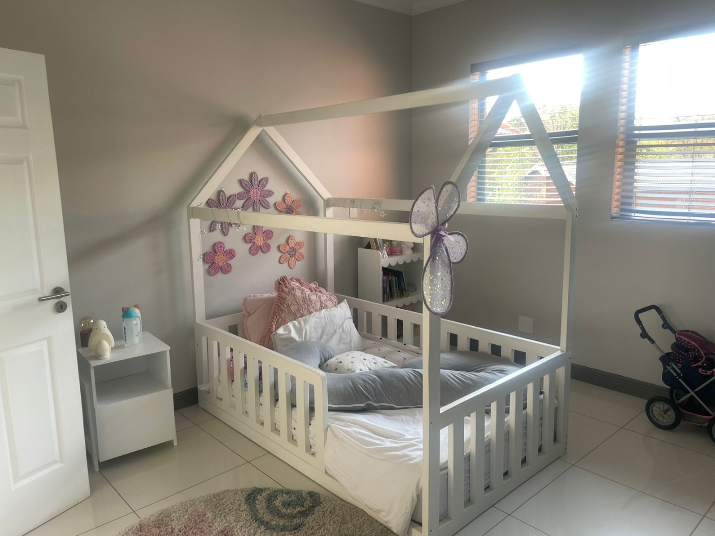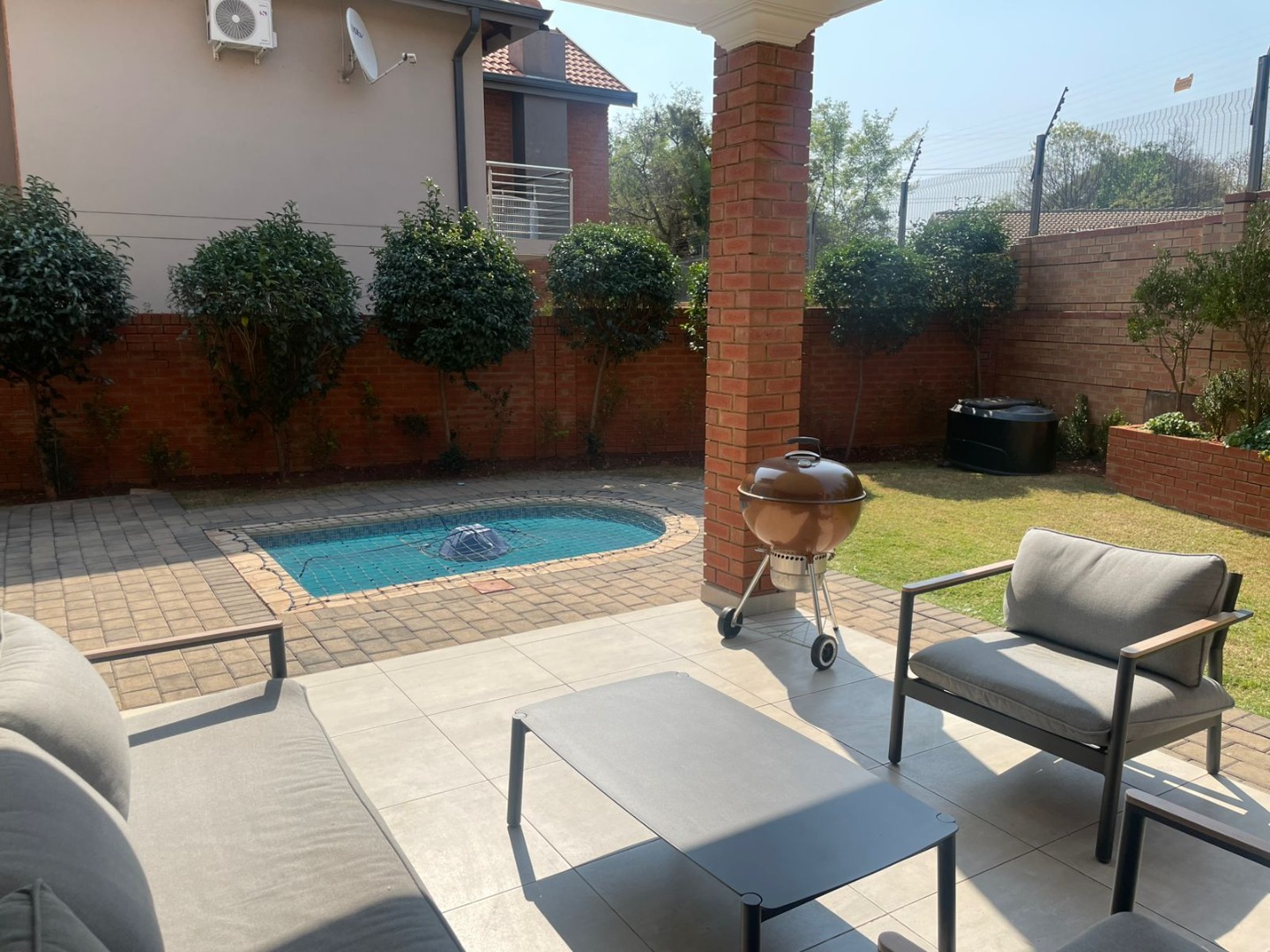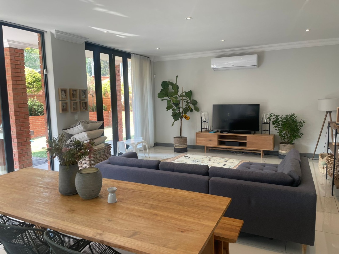 The spacious living area flows effortlessly to an under-roof patio with a built-in braai, creating the perfect setting for year-round gatherings. Overlooking the private swimming pool, this entertainment space ensures relaxed weekends and memorable moments with family and friends.