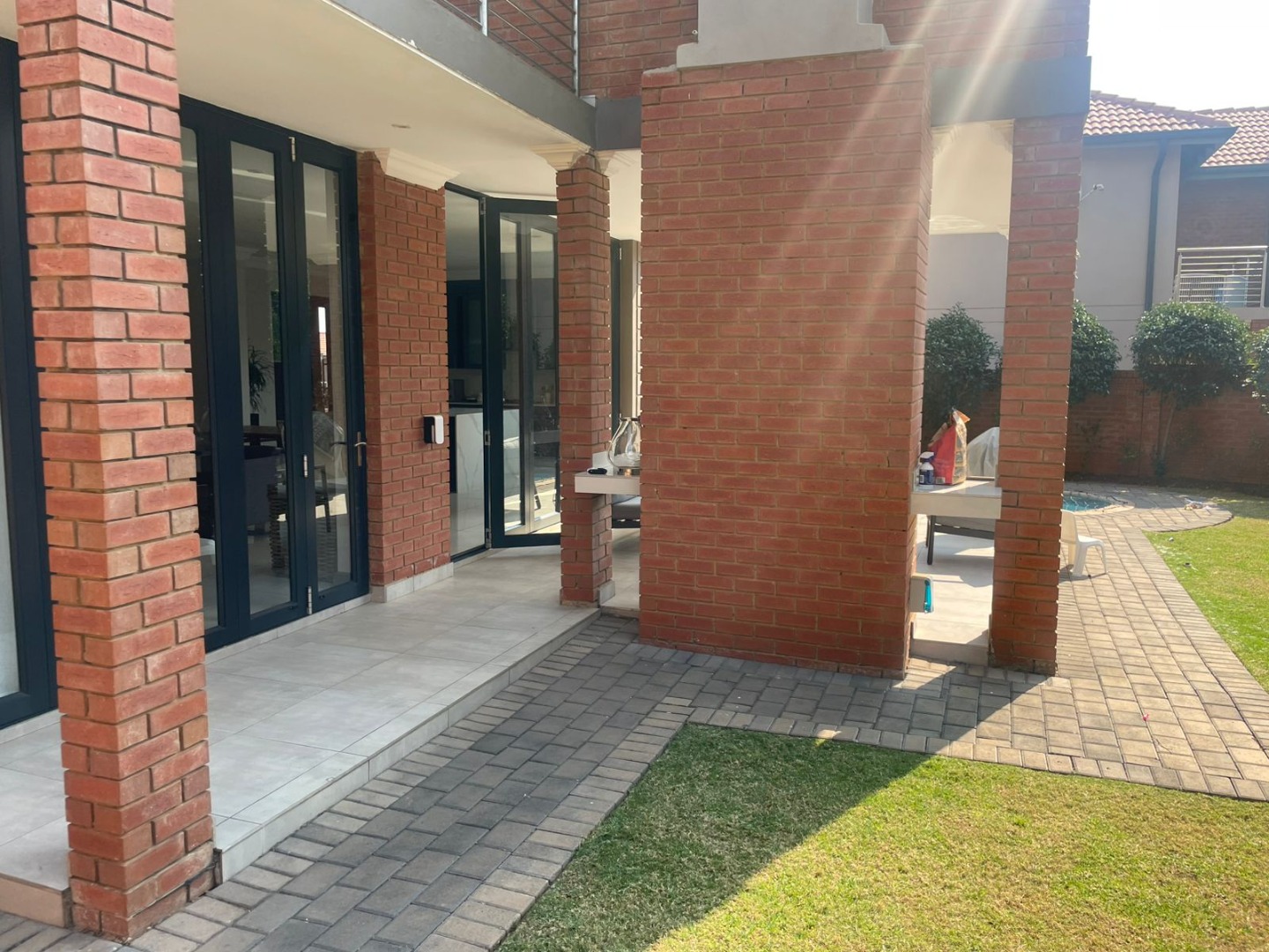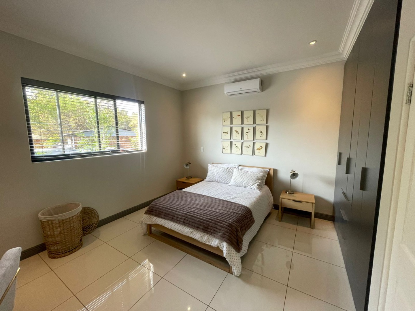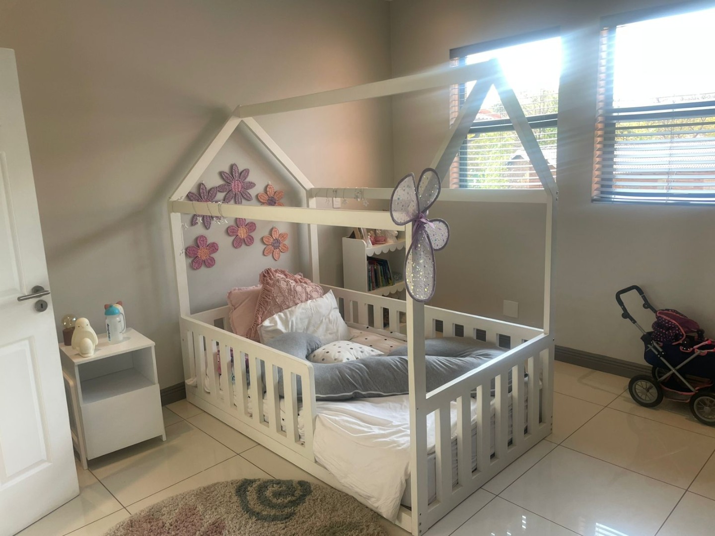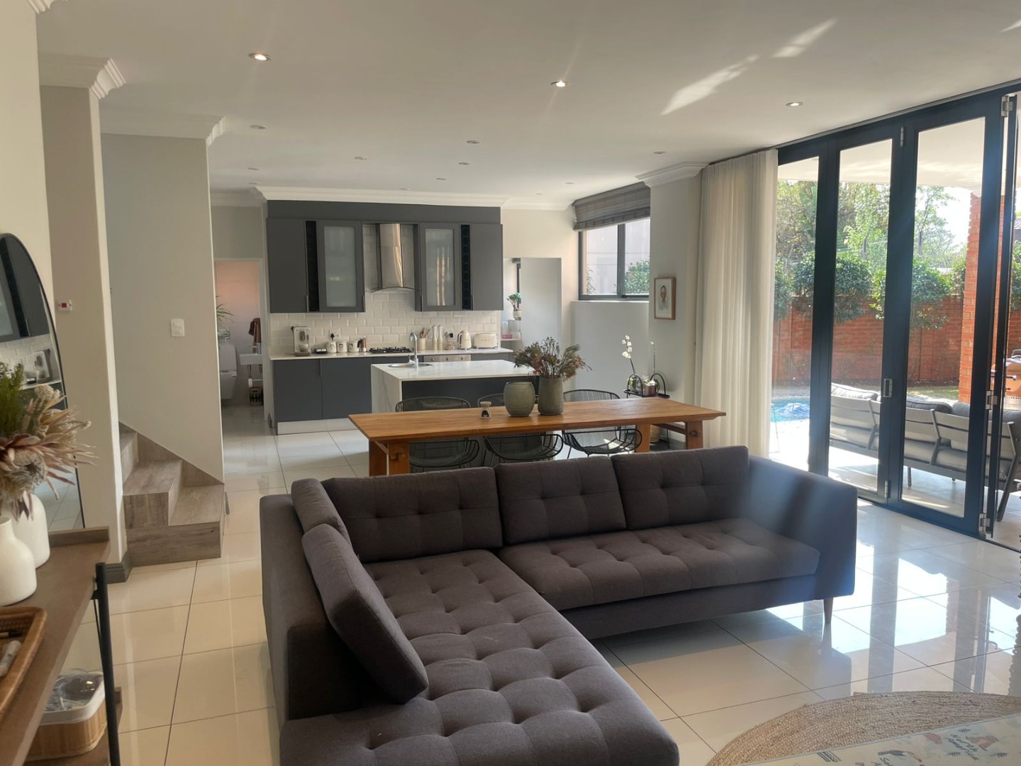 The spacious living area flows effortlessly to an under-roof patio with a built-in braai, creating the perfect setting for year-round gatherings. Overlooking the private swimming pool, this entertainment space ensures relaxed weekends and memorable moments with family and friends.