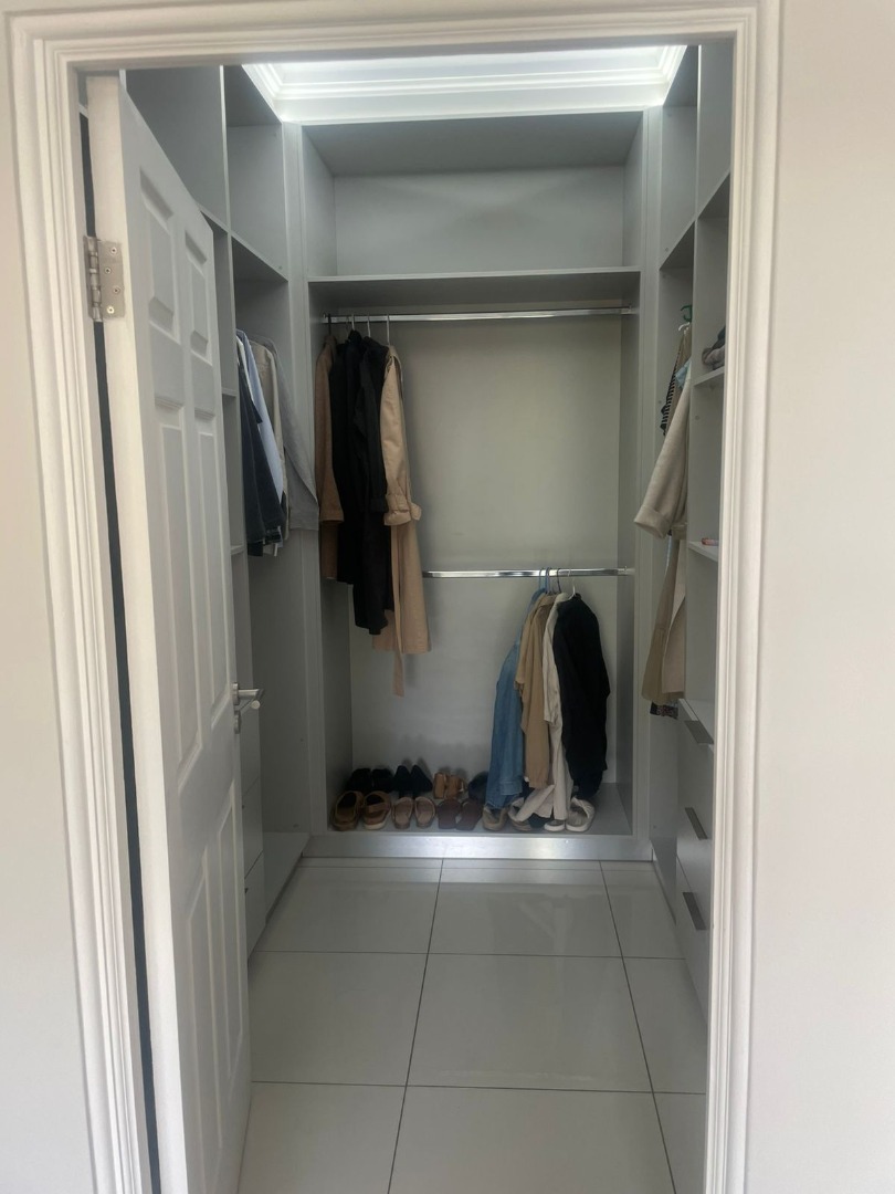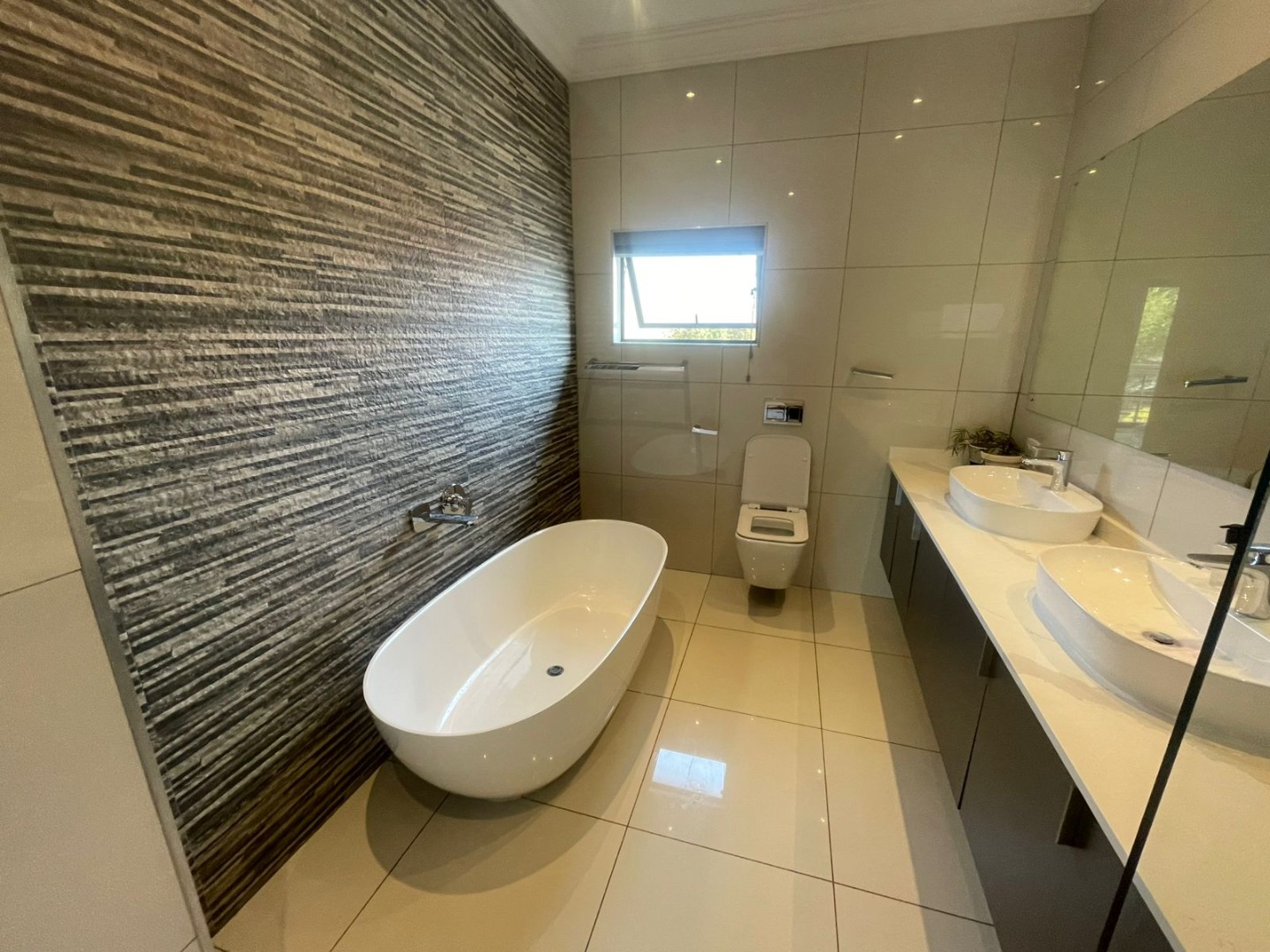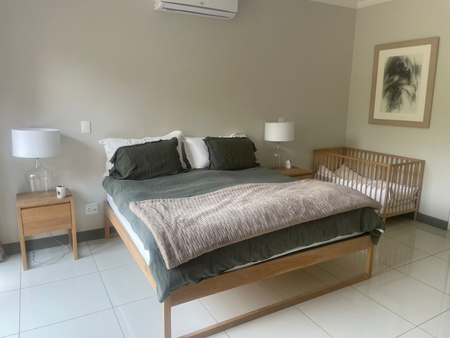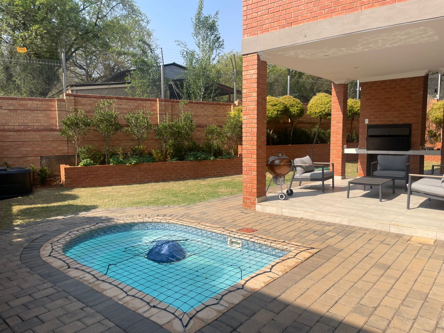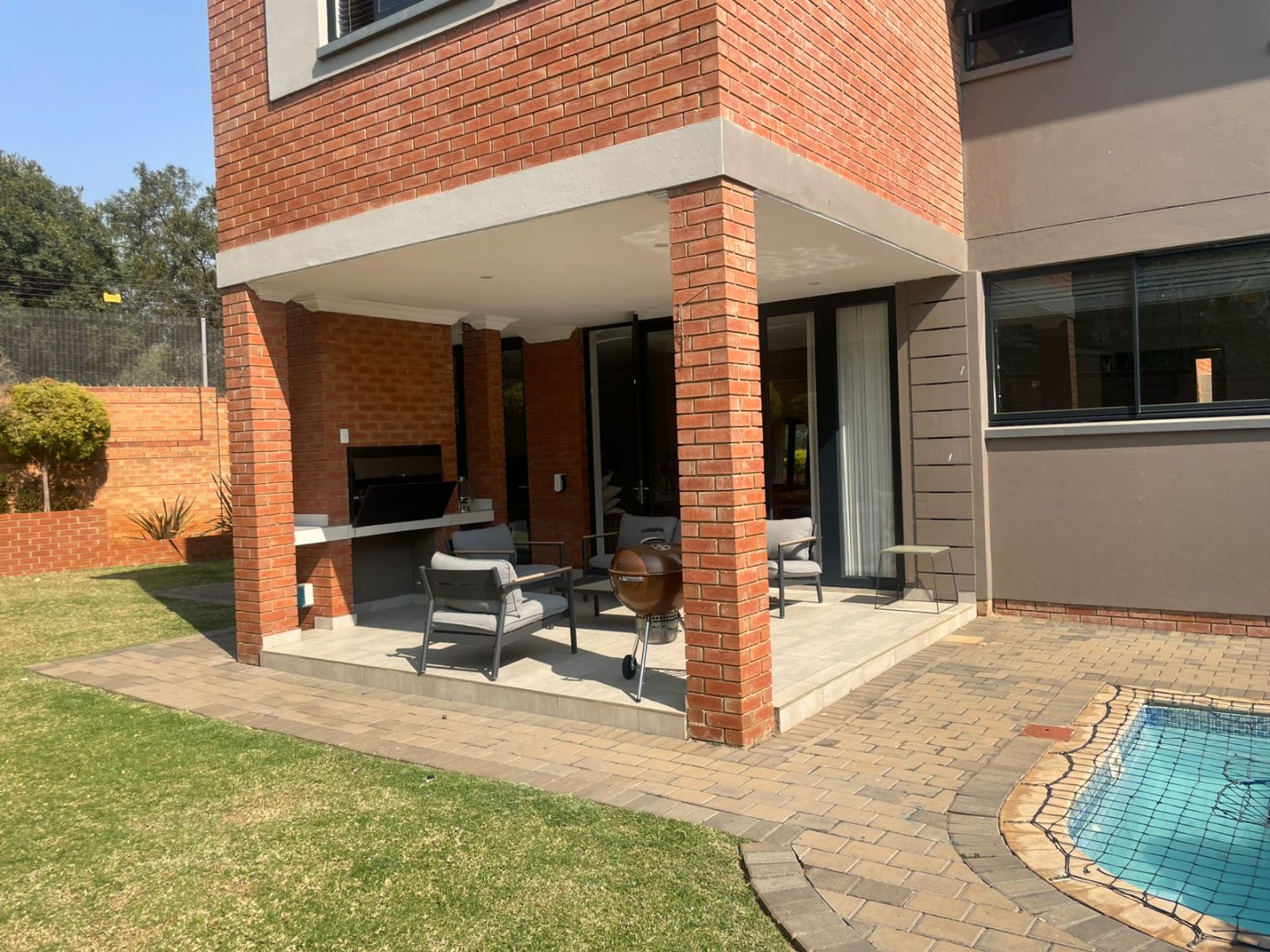 The spacious living area flows effortlessly to an under-roof patio with a built-in braai, creating the perfect setting for year-round gatherings. Overlooking the private swimming pool, this entertainment space ensures relaxed weekends and memorable moments with family and friends.
