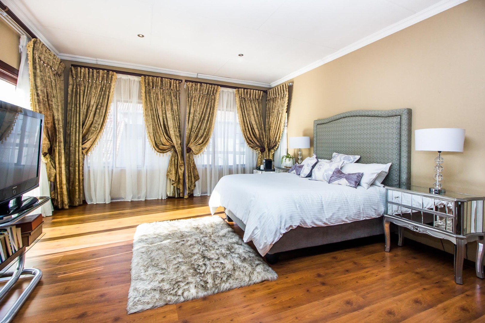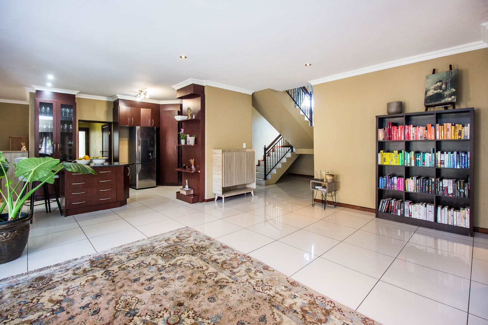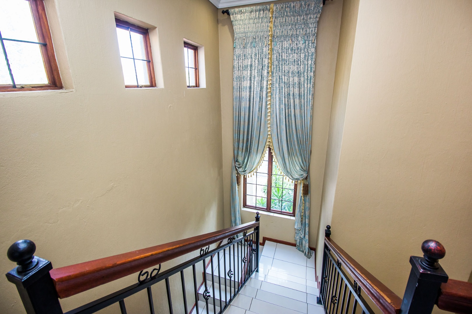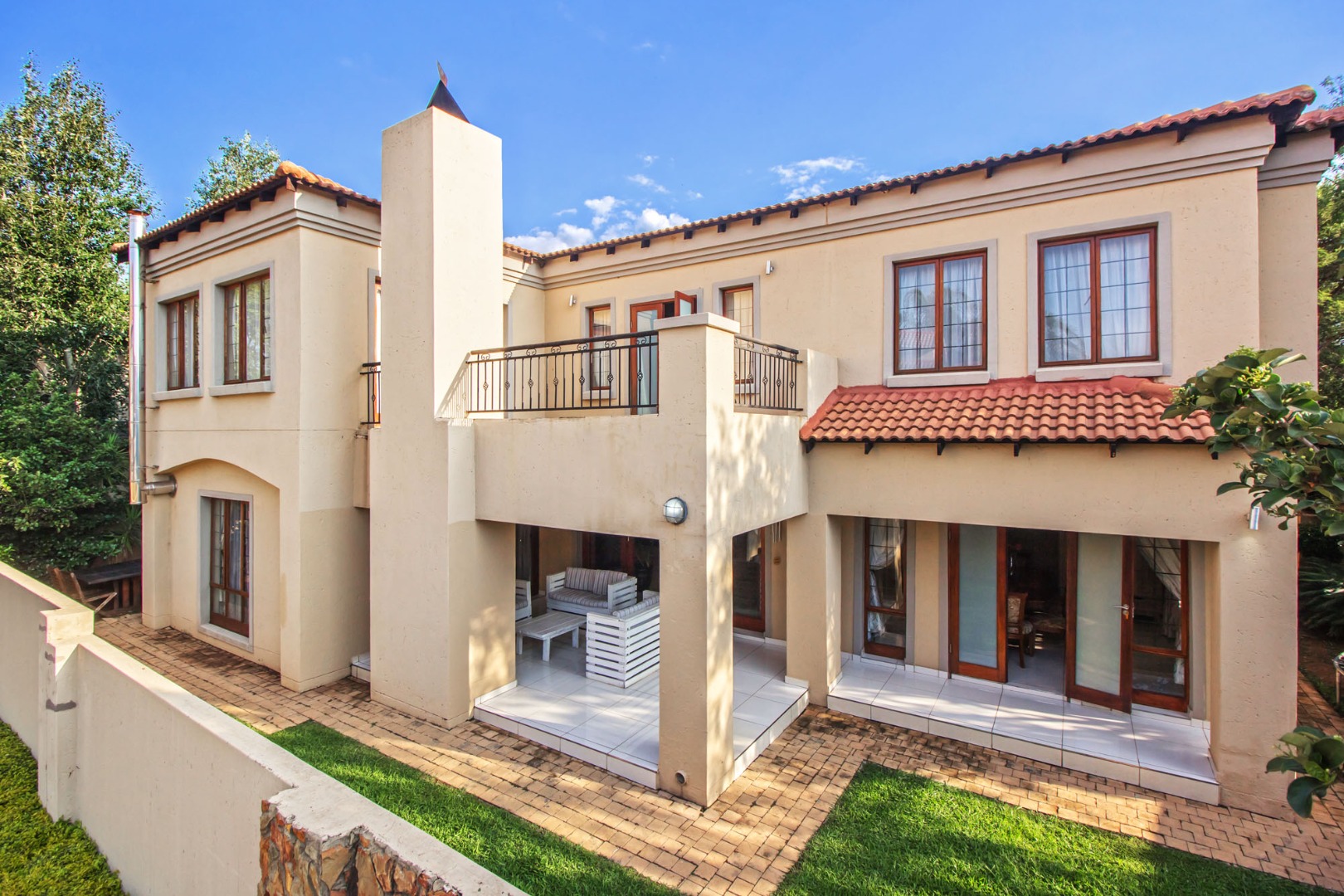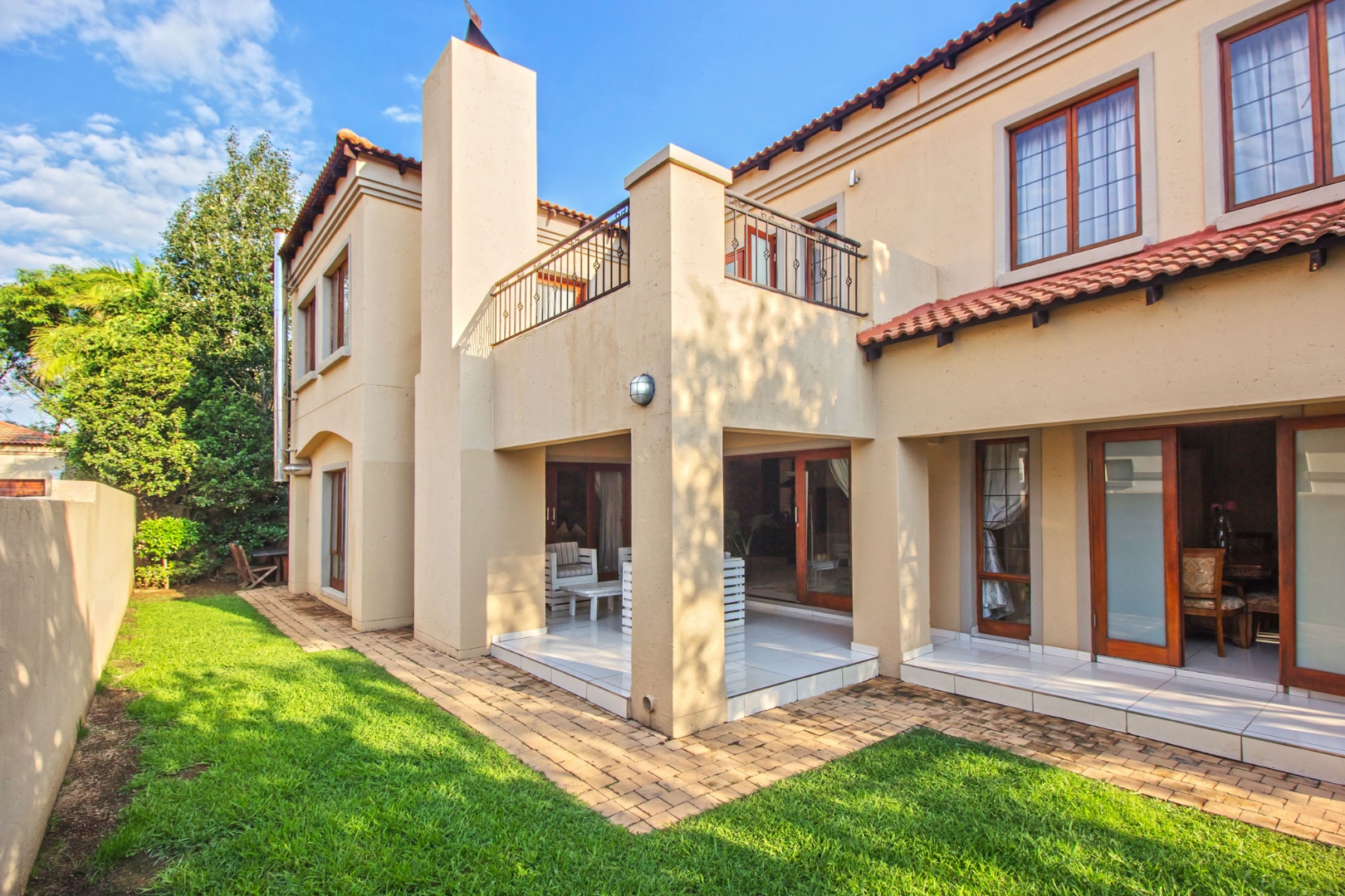 Upstairs offers an easy-living private wing for the family. The pajama lounge opens onto a balcony, giving you a relaxed second living space perfect for a TV room, reading area or kids’ lounge. Two well-sized bedrooms with built-in cupboards and laminated flooring share a full bathroom, making it ideal for children or guests. The main bedroom is a standout feature — spacious, bright and designed for comfort, complete with a walk-in wardrobe, a full en-suite bathroom, and its own private balcony. Curtains remain throughout the home, making move-in simple. With multiple balconies, generous living zones, secure estate living and a practical layout that suits modern family life, this home delivers a well-rounded rental option in the heart of Olympus AH.