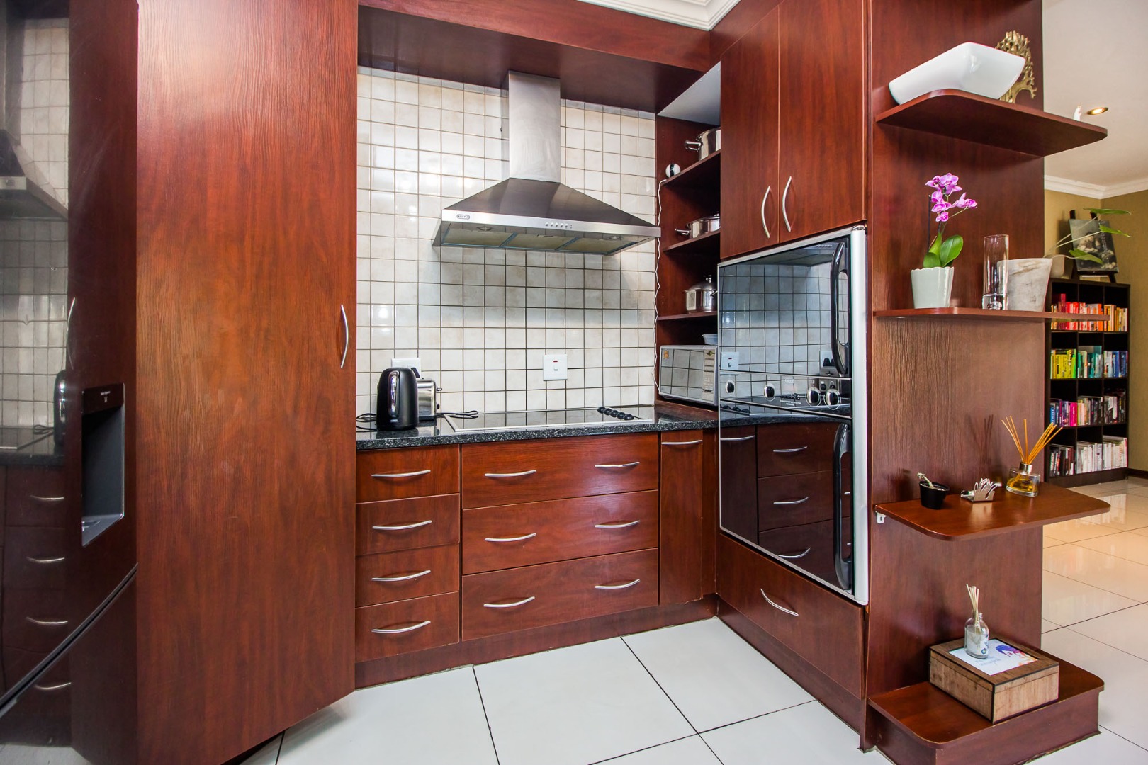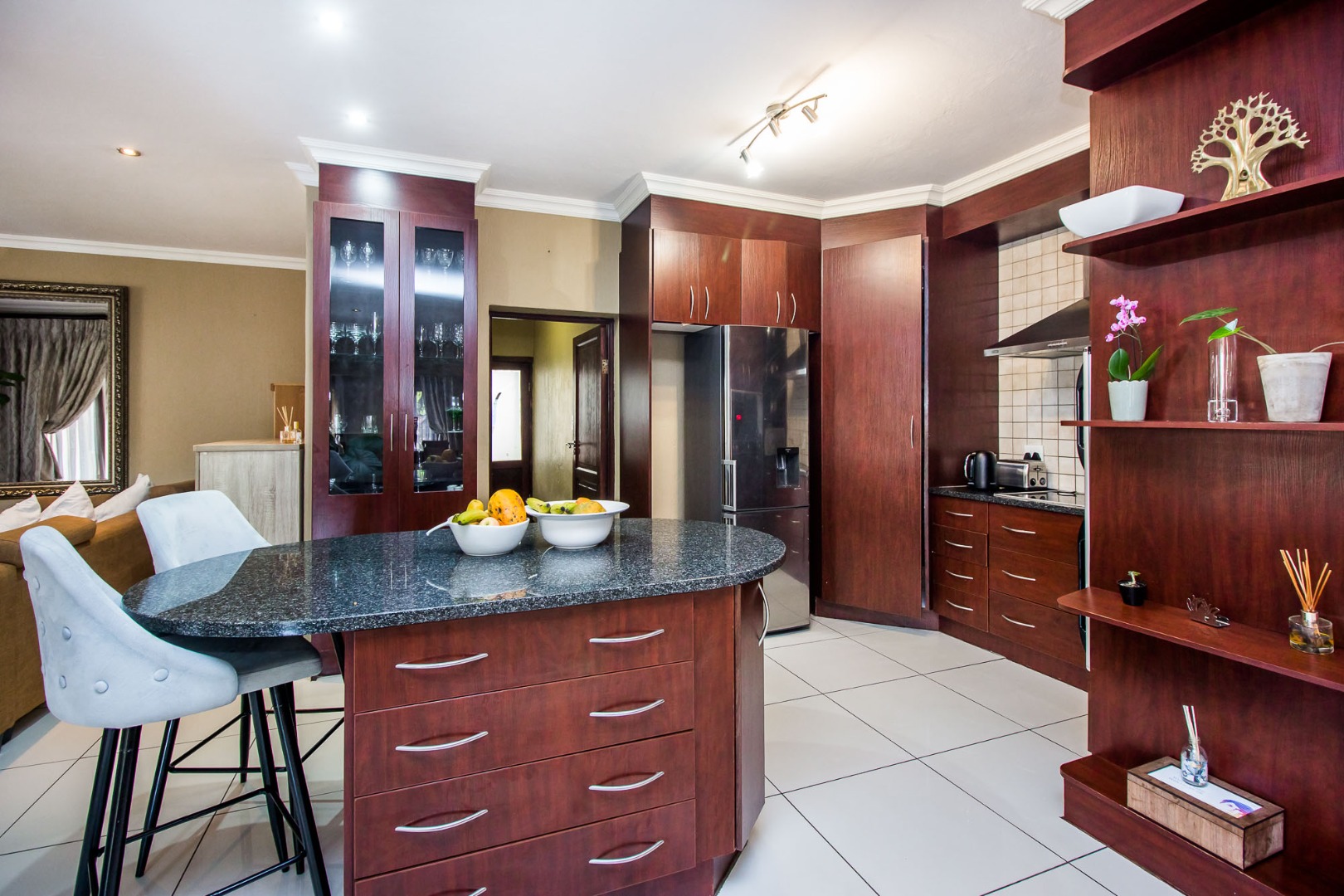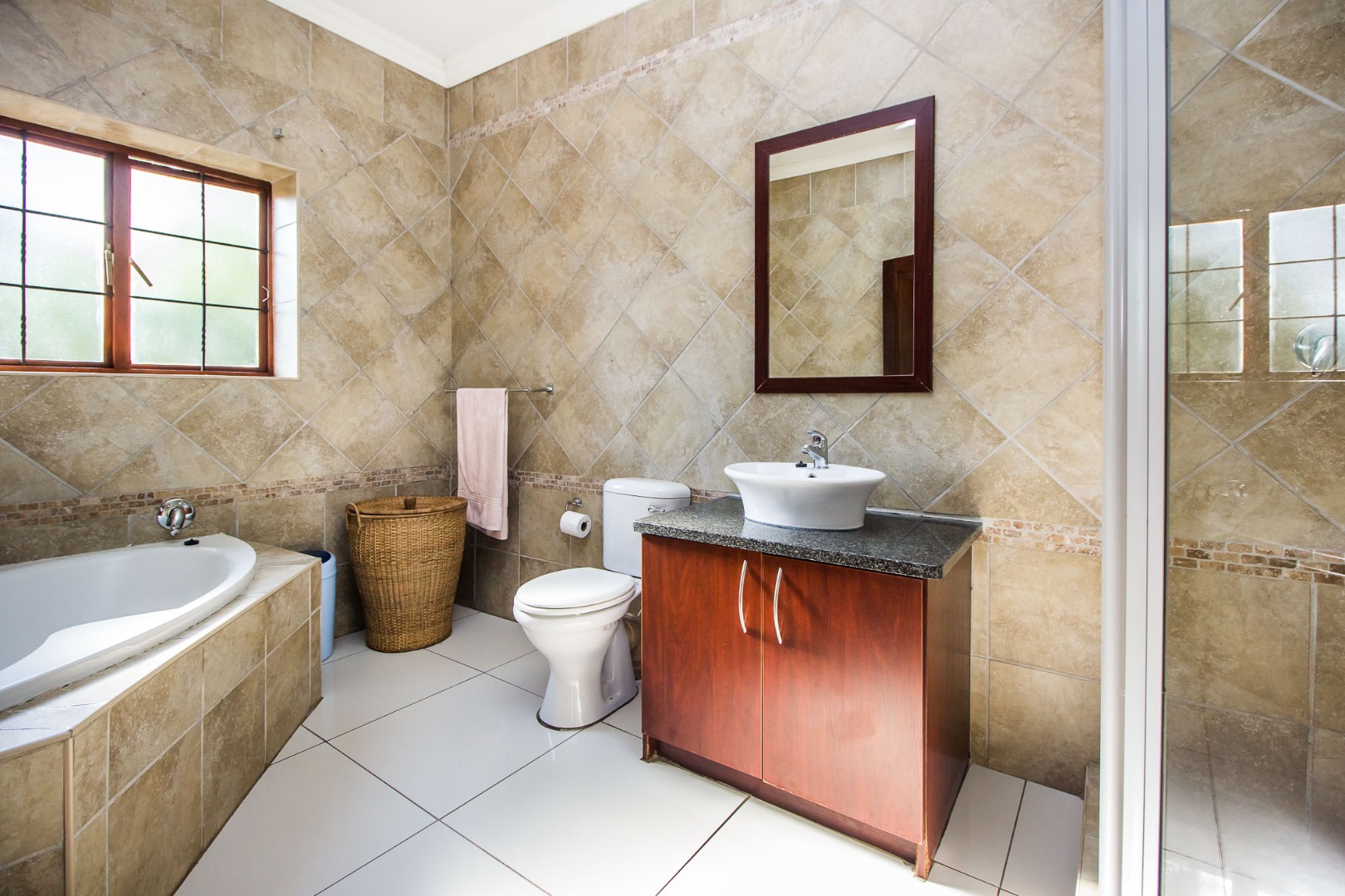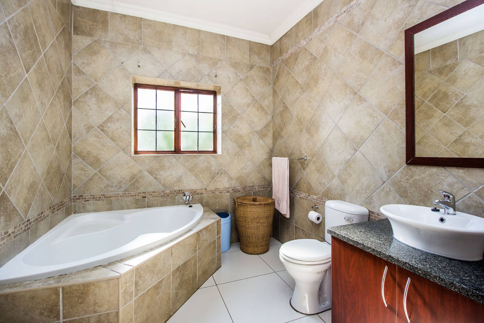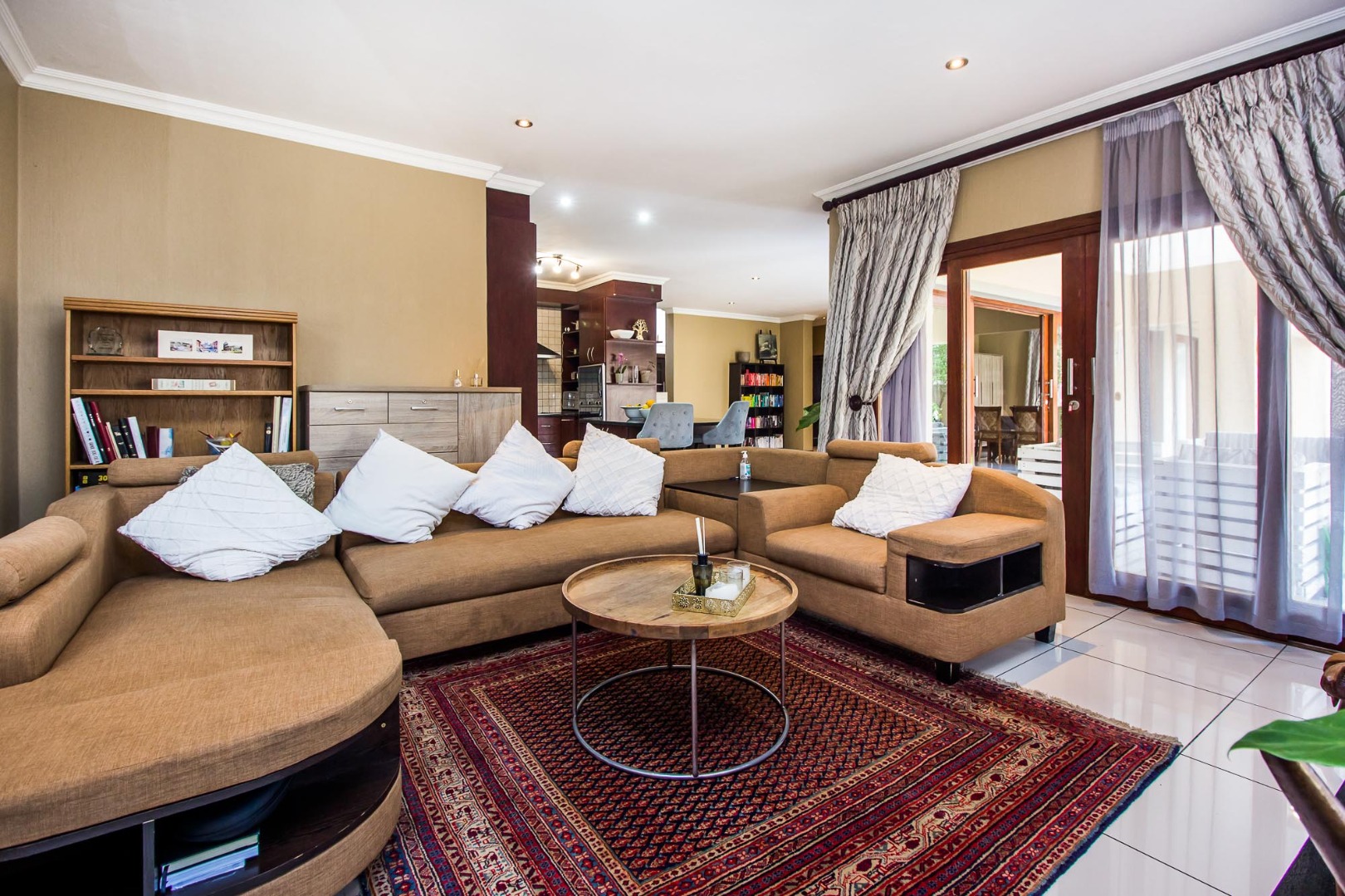 Upstairs offers an easy-living private wing for the family. The pajama lounge opens onto a balcony, giving you a relaxed second living space perfect for a TV room, reading area or kids’ lounge. Two well-sized bedrooms with built-in cupboards and laminated flooring share a full bathroom, making it ideal for children or guests. The main bedroom is a standout feature — spacious, bright and designed for comfort, complete with a walk-in wardrobe, a full en-suite bathroom, and its own private balcony. Curtains remain throughout the home, making move-in simple. With multiple balconies, generous living zones, secure estate living and a practical layout that suits modern family life, this home delivers a well-rounded rental option in the heart of Olympus AH.