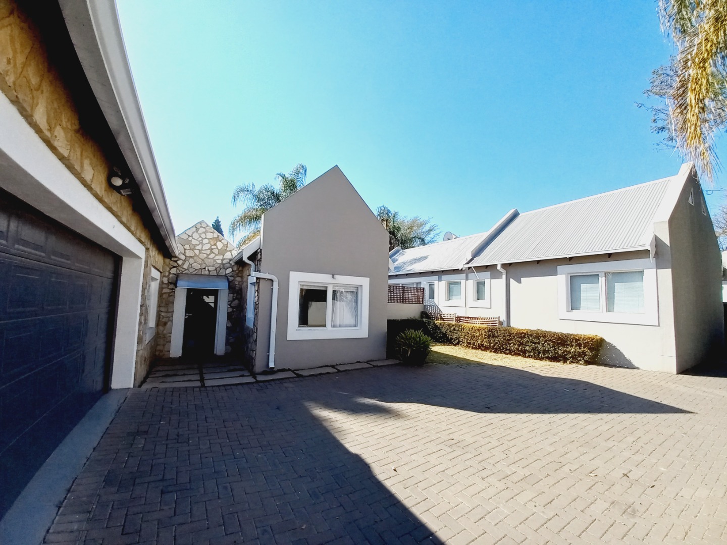 Outdoors, you'll find a small private garden - perfect for small pets and low maintenance living - as well as a double garage and ample parking for 3 to 5 additional vehicles in front and a domestic room.