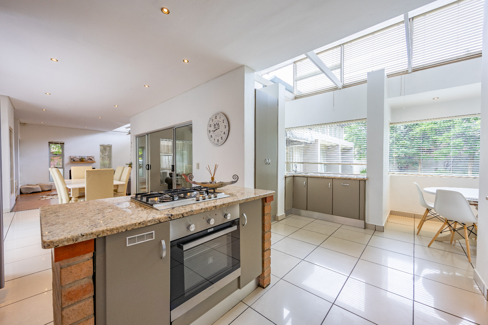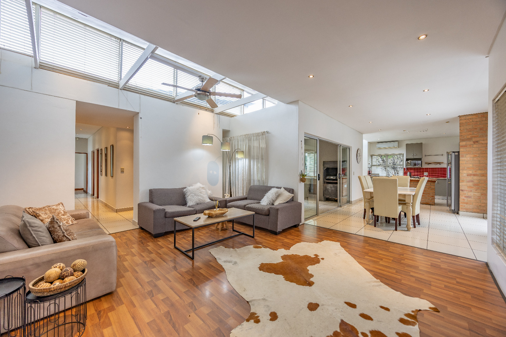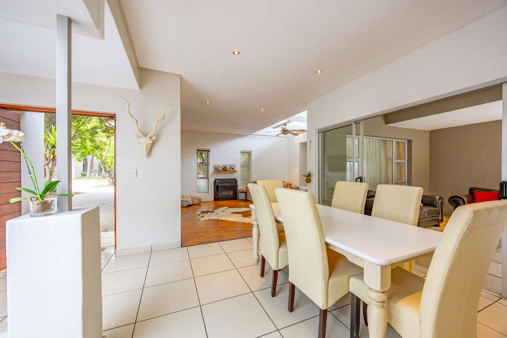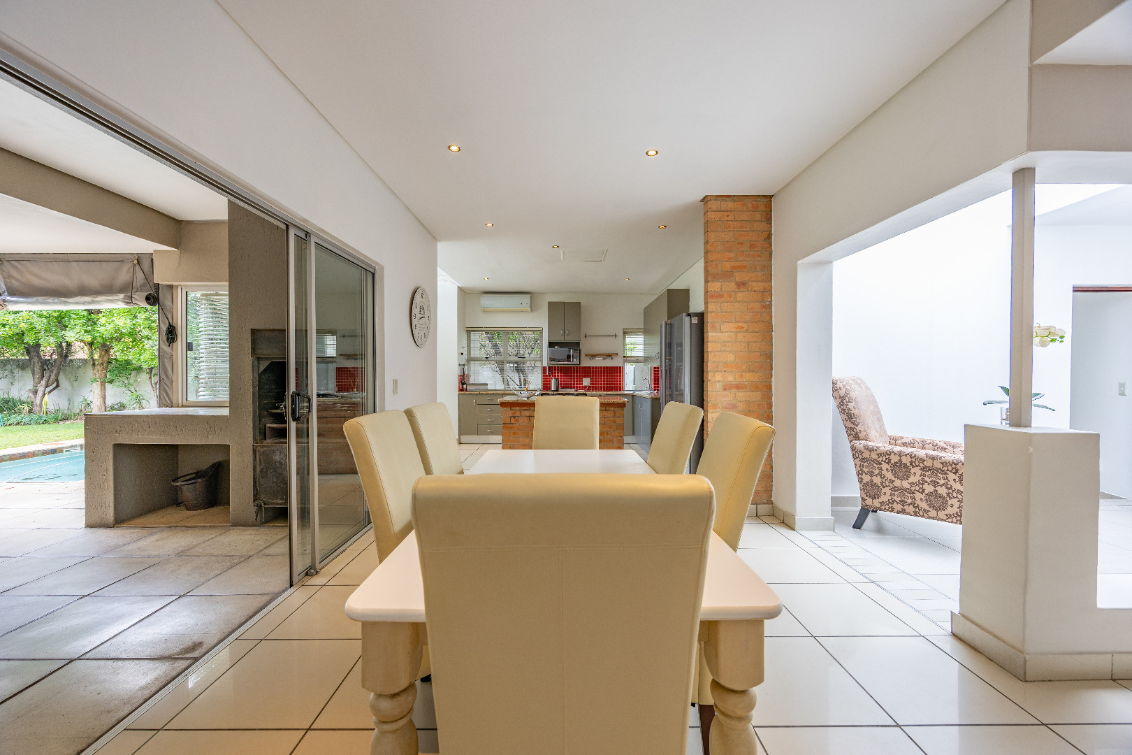 Discover this spacious 4-bedroom, 3.5-bathroom residence available for rent within the prestigious Silver Lakes Golf Estate in Pretoria. Spanning 400 sqm, this home offers an exceptional living experience with its bright, open-plan design. Enjoy multiple living areas, some featuring warm wooden flooring, skylights, and a modern built-in fireplace, while others boast practical tiled floors and air conditioning for year-round comfort. The contemporary kitchen is a highlight, equipped with granite countertops, an integrated island hob, and ample storage, seamlessly connecting to the dining and living spaces. The property ensures a comfortable lifestyle with four generously sized bedrooms, some offering direct access to the private garden through sliding doors and unique architectural ceilings. The bathrooms are well-appointed, and a dedicated utility room provides convenience with built-in storage and laundry facilities. Outside, a sparkling private pool and a well-maintained garden create an ideal setting for relaxation and entertaining. The home also includes staff quarters, a double garage, and additional parking. Perfect for families or professionals seeking secure and upscale living, this pet-friendly home is situated within a renowned golf estate and security complex, benefiting from 24-hour security and access control. This Pretoria location offers a desirable lifestyle, combining luxury amenities with peace of mind. Key Features: * 4 Bedrooms, 3.5 Bathrooms * 400 sqm Floor Size * Modern Kitchen with Granite Countertops * Multiple Spacious Living Areas * Private Swimming Pool * Well-Maintained Garden * Double Garage & Additional Parking * Dedicated Laundry Room * Staff Quarters * 24-Hour Security in Golf Estate