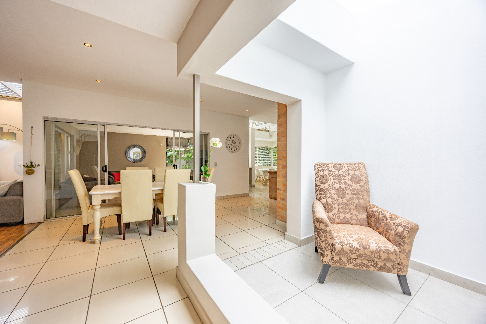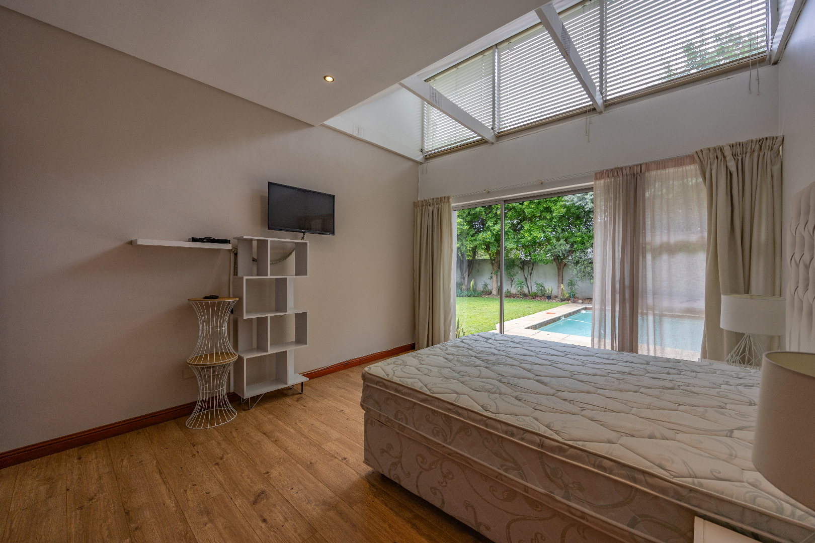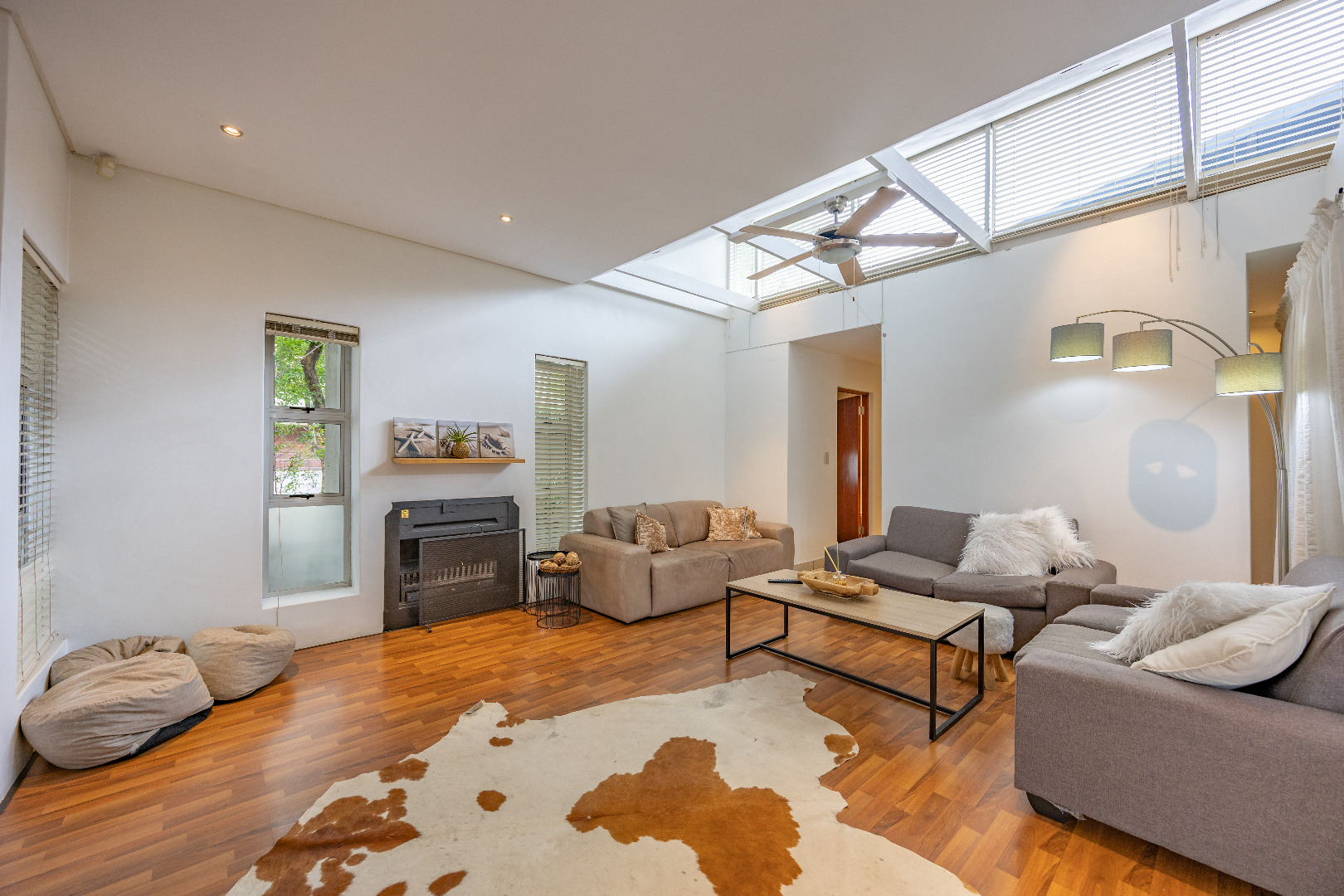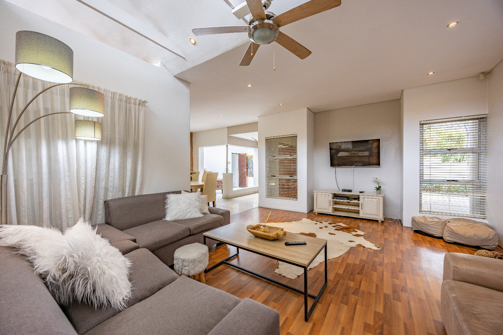 Discover this spacious 4-bedroom, 3.5-bathroom residence available for rent within the prestigious Silver Lakes Golf Estate in Pretoria. Spanning 400 sqm, this home offers an exceptional living experience with its bright, open-plan design. Enjoy multiple living areas, some featuring warm wooden flooring, skylights, and a modern built-in fireplace, while others boast practical tiled floors and air conditioning for year-round comfort. The contemporary kitchen is a highlight, equipped with granite countertops, an integrated island hob, and ample storage, seamlessly connecting to the dining and living spaces. The property ensures a comfortable lifestyle with four generously sized bedrooms, some offering direct access to the private garden through sliding doors and unique architectural ceilings. The bathrooms are well-appointed, and a dedicated utility room provides convenience with built-in storage and laundry facilities. Outside, a sparkling private pool and a well-maintained garden create an ideal setting for relaxation and entertaining. The home also includes staff quarters, a double garage, and additional parking. Perfect for families or professionals seeking secure and upscale living, this pet-friendly home is situated within a renowned golf estate and security complex, benefiting from 24-hour security and access control. This Pretoria location offers a desirable lifestyle, combining luxury amenities with peace of mind. Key Features: * 4 Bedrooms, 3.5 Bathrooms * 400 sqm Floor Size * Modern Kitchen with Granite Countertops * Multiple Spacious Living Areas * Private Swimming Pool * Well-Maintained Garden * Double Garage & Additional Parking * Dedicated Laundry Room * Staff Quarters * 24-Hour Security in Golf Estate