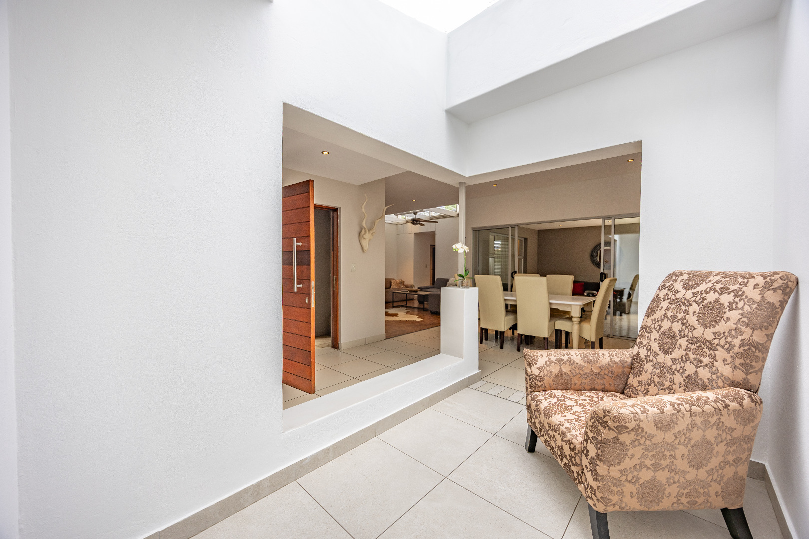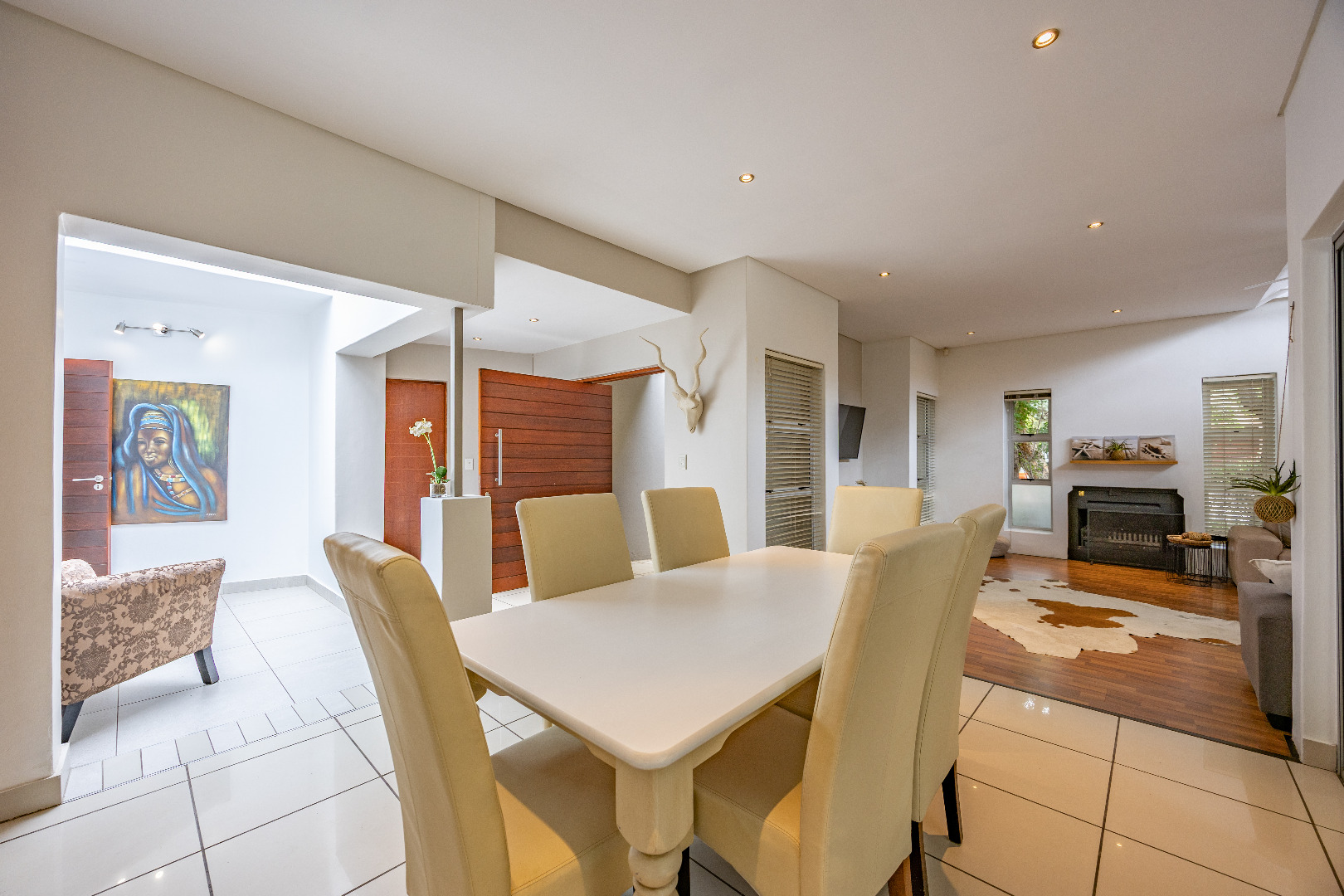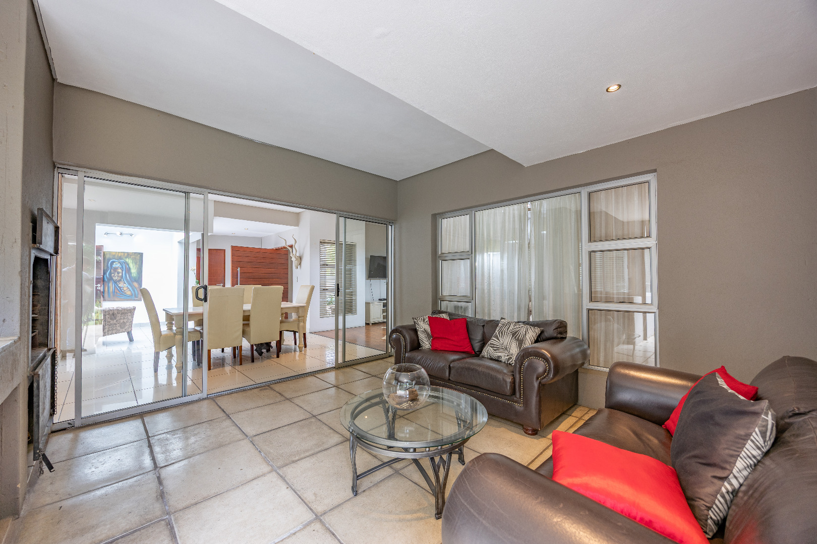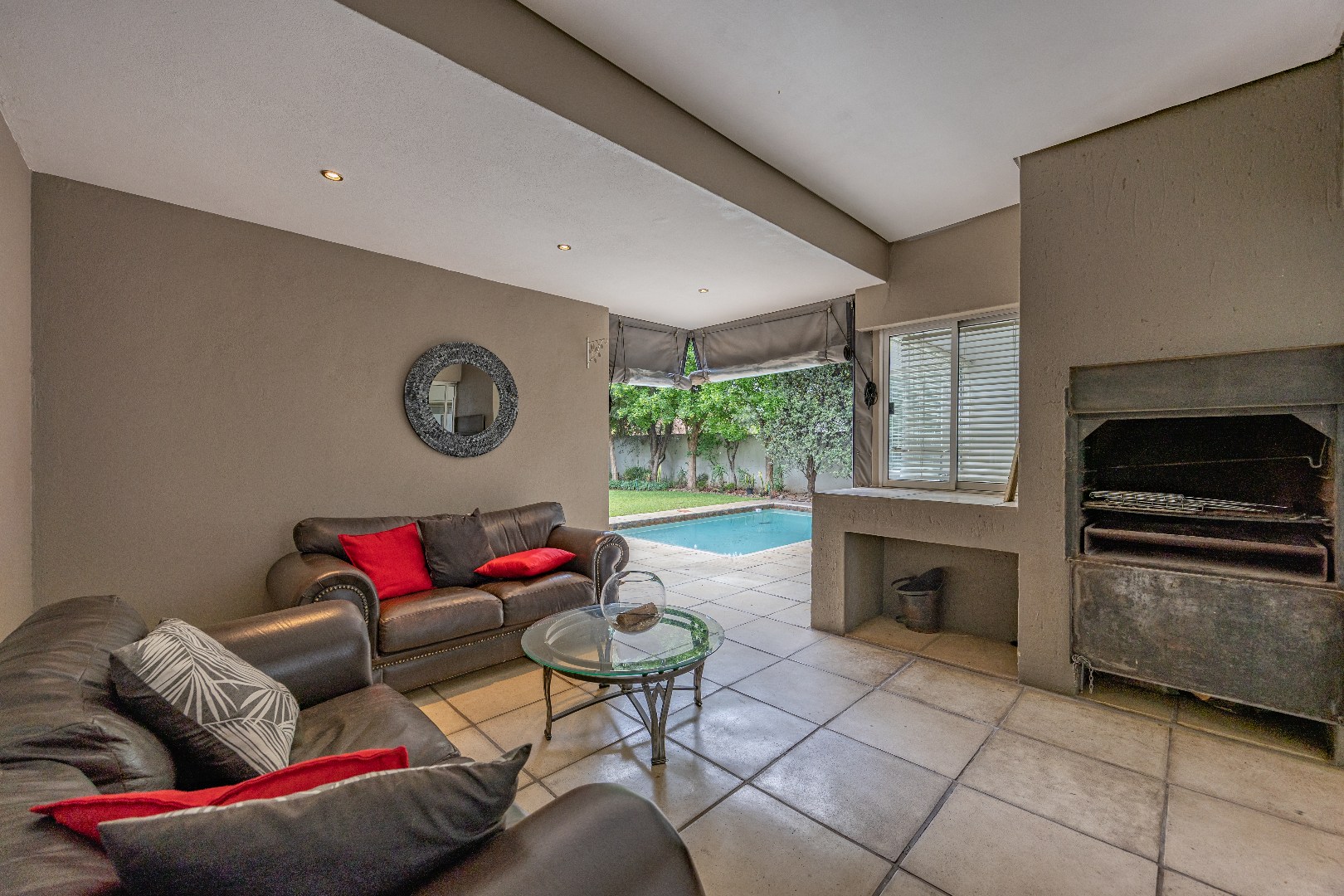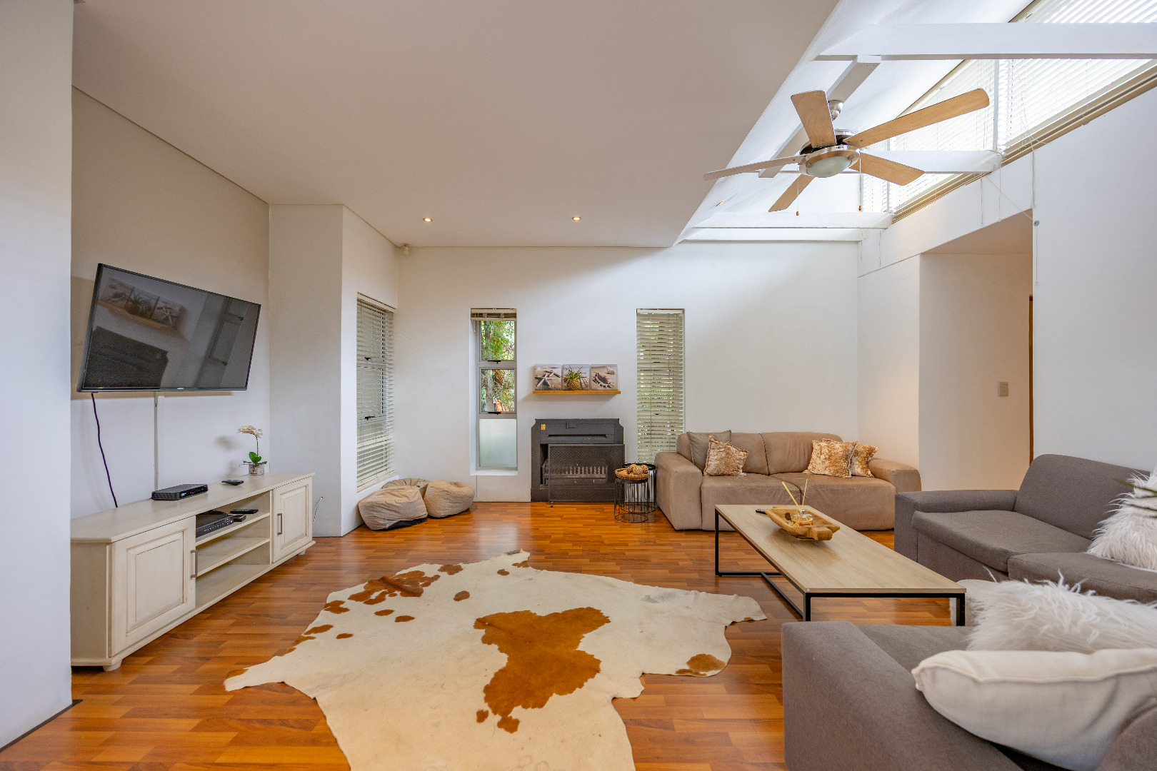 Discover this spacious 4-bedroom, 3.5-bathroom residence available for rent within the prestigious Silver Lakes Golf Estate in Pretoria. Spanning 400 sqm, this home offers an exceptional living experience with its bright, open-plan design. Enjoy multiple living areas, some featuring warm wooden flooring, skylights, and a modern built-in fireplace, while others boast practical tiled floors and air conditioning for year-round comfort. The contemporary kitchen is a highlight, equipped with granite countertops, an integrated island hob, and ample storage, seamlessly connecting to the dining and living spaces. The property ensures a comfortable lifestyle with four generously sized bedrooms, some offering direct access to the private garden through sliding doors and unique architectural ceilings. The bathrooms are well-appointed, and a dedicated utility room provides convenience with built-in storage and laundry facilities. Outside, a sparkling private pool and a well-maintained garden create an ideal setting for relaxation and entertaining. The home also includes staff quarters, a double garage, and additional parking. Perfect for families or professionals seeking secure and upscale living, this pet-friendly home is situated within a renowned golf estate and security complex, benefiting from 24-hour security and access control. This Pretoria location offers a desirable lifestyle, combining luxury amenities with peace of mind. Key Features: * 4 Bedrooms, 3.5 Bathrooms * 400 sqm Floor Size * Modern Kitchen with Granite Countertops * Multiple Spacious Living Areas * Private Swimming Pool * Well-Maintained Garden * Double Garage & Additional Parking * Dedicated Laundry Room * Staff Quarters * 24-Hour Security in Golf Estate