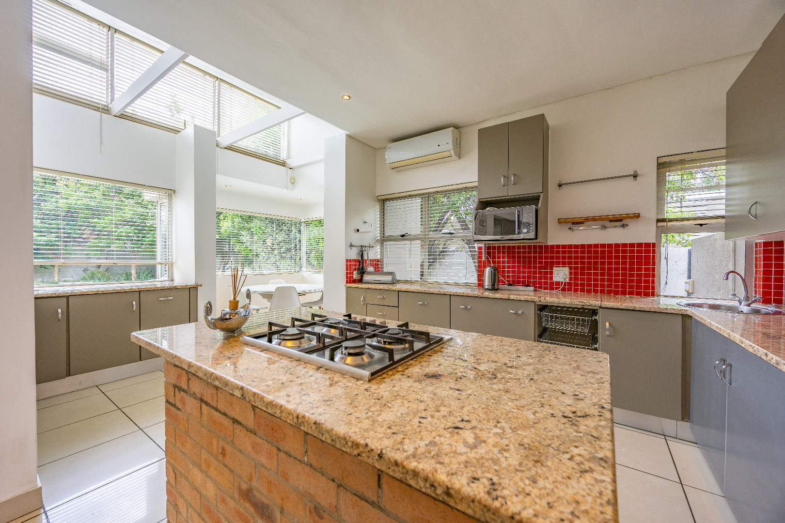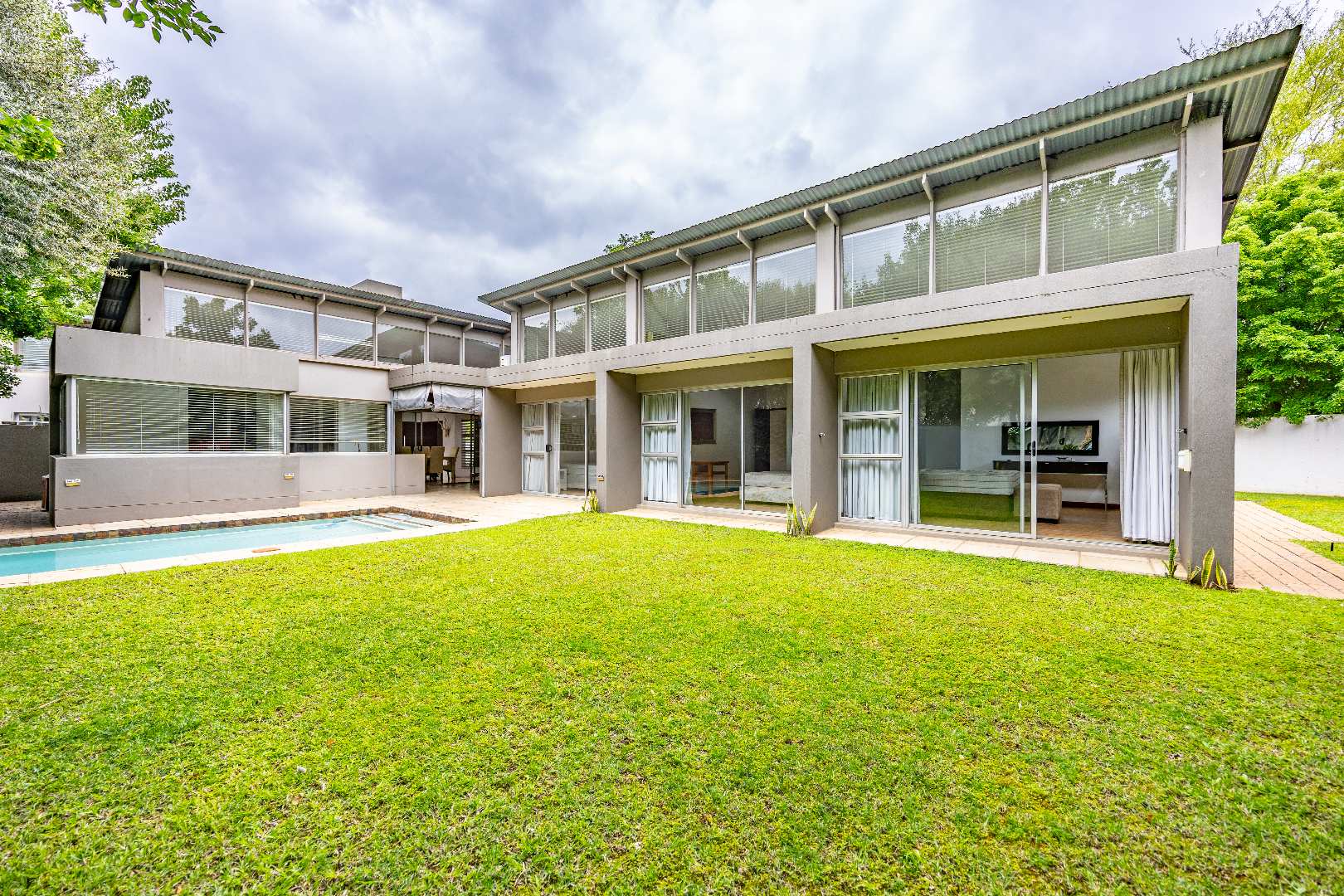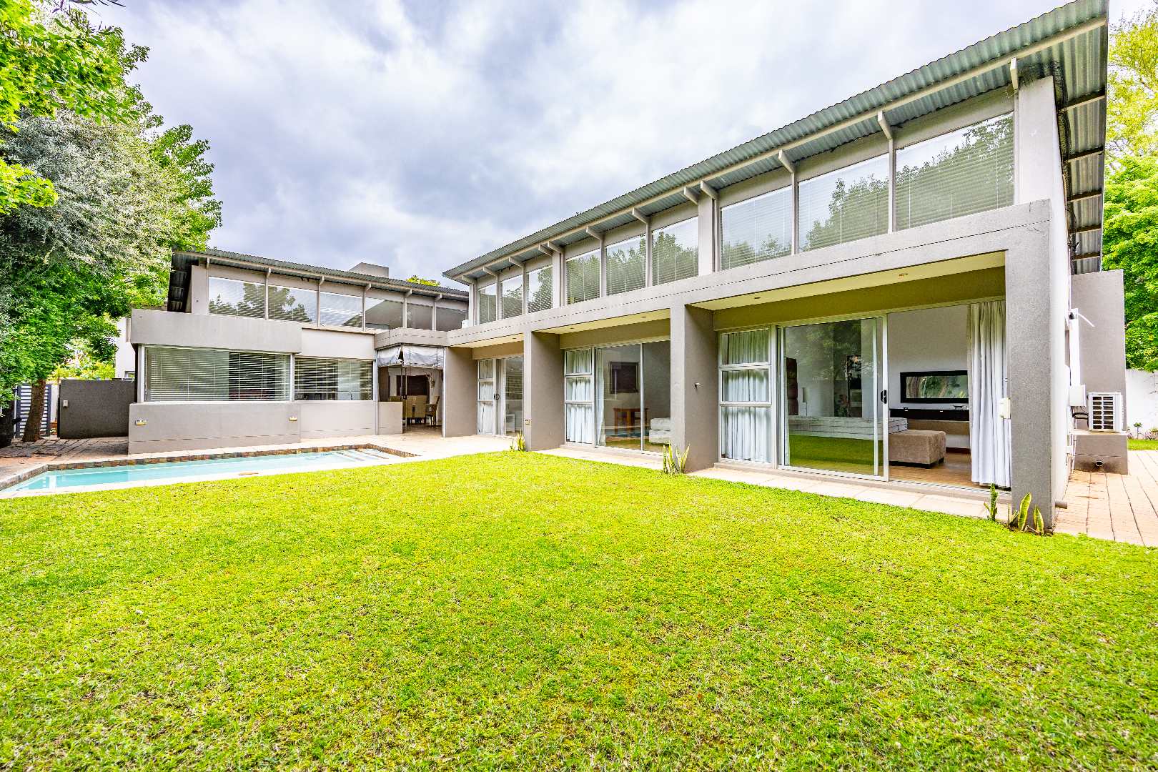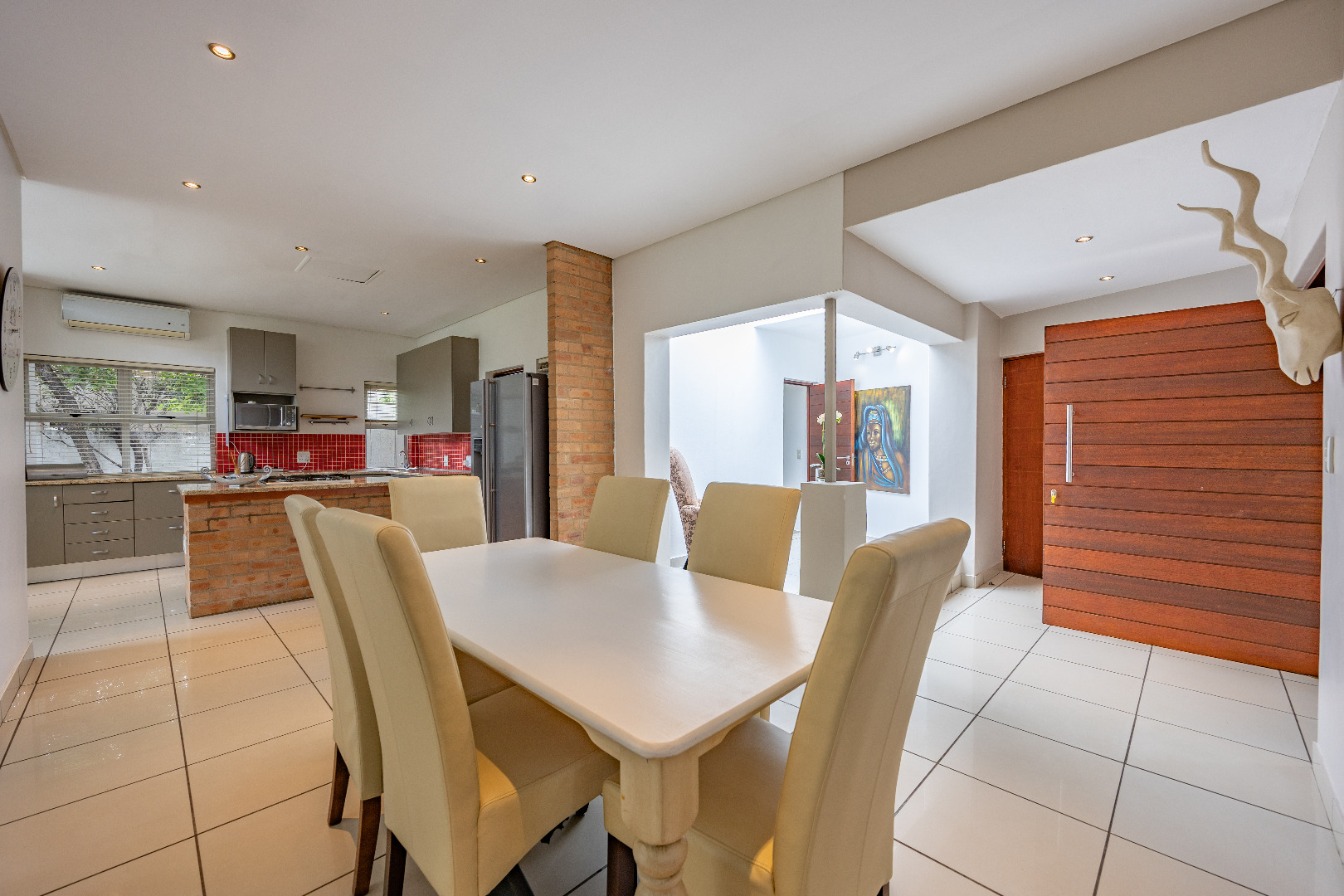 Discover this spacious 4-bedroom, 3.5-bathroom residence available for rent within the prestigious Silver Lakes Golf Estate in Pretoria. Spanning 400 sqm, this home offers an exceptional living experience with its bright, open-plan design. Enjoy multiple living areas, some featuring warm wooden flooring, skylights, and a modern built-in fireplace, while others boast practical tiled floors and air conditioning for year-round comfort. The contemporary kitchen is a highlight, equipped with granite countertops, an integrated island hob, and ample storage, seamlessly connecting to the dining and living spaces. The property ensures a comfortable lifestyle with four generously sized bedrooms, some offering direct access to the private garden through sliding doors and unique architectural ceilings. The bathrooms are well-appointed, and a dedicated utility room provides convenience with built-in storage and laundry facilities. Outside, a sparkling private pool and a well-maintained garden create an ideal setting for relaxation and entertaining. The home also includes staff quarters, a double garage, and additional parking. Perfect for families or professionals seeking secure and upscale living, this pet-friendly home is situated within a renowned golf estate and security complex, benefiting from 24-hour security and access control. This Pretoria location offers a desirable lifestyle, combining luxury amenities with peace of mind. Key Features: * 4 Bedrooms, 3.5 Bathrooms * 400 sqm Floor Size * Modern Kitchen with Granite Countertops * Multiple Spacious Living Areas * Private Swimming Pool * Well-Maintained Garden * Double Garage & Additional Parking * Dedicated Laundry Room * Staff Quarters * 24-Hour Security in Golf Estate