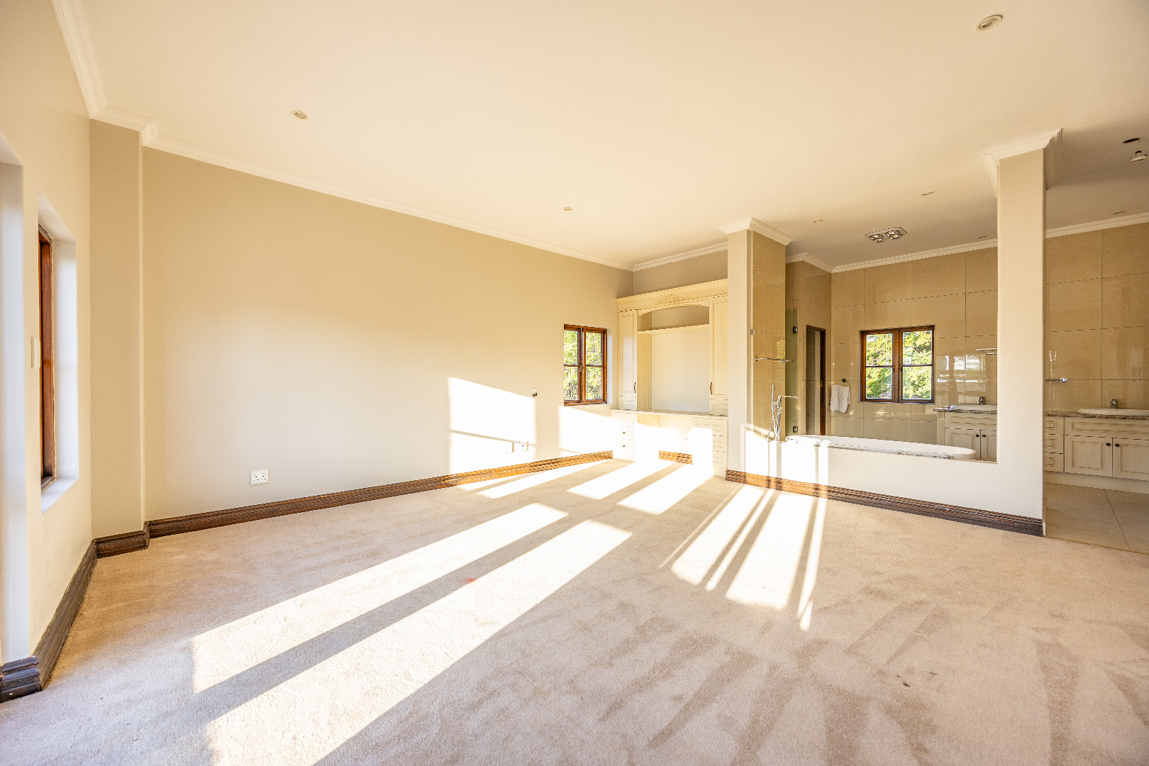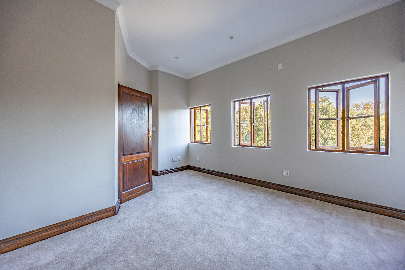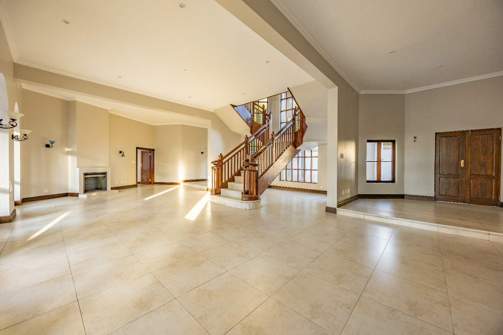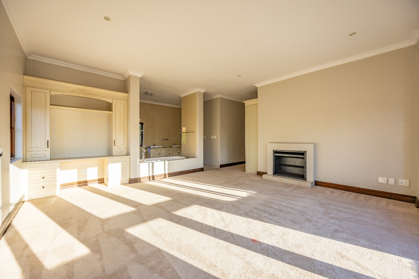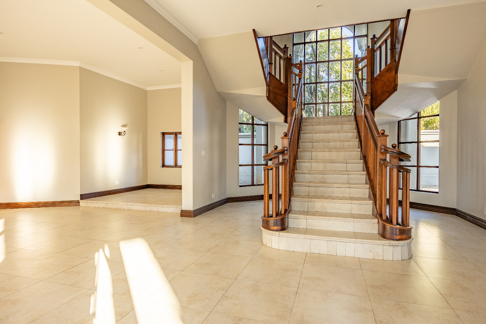 This expansive and elegant home in the prestigious Silver Lakes Golf Estate is available for immediate occupation and offers an exceptional lifestyle for the discerning tenant. The entrance hall leads into a versatile space ideal as a study or guest bedroom, flowing into a spacious dining area perfect for family meals. The ground floor also features a guest bathroom with a shower, a wine cellar, and a generous living room with two fireplaces for year-round comfort. A large, well-equipped kitchen with a separate scullery caters effortlessly to all your culinary needs, complemented by an additional downstairs bedroom.