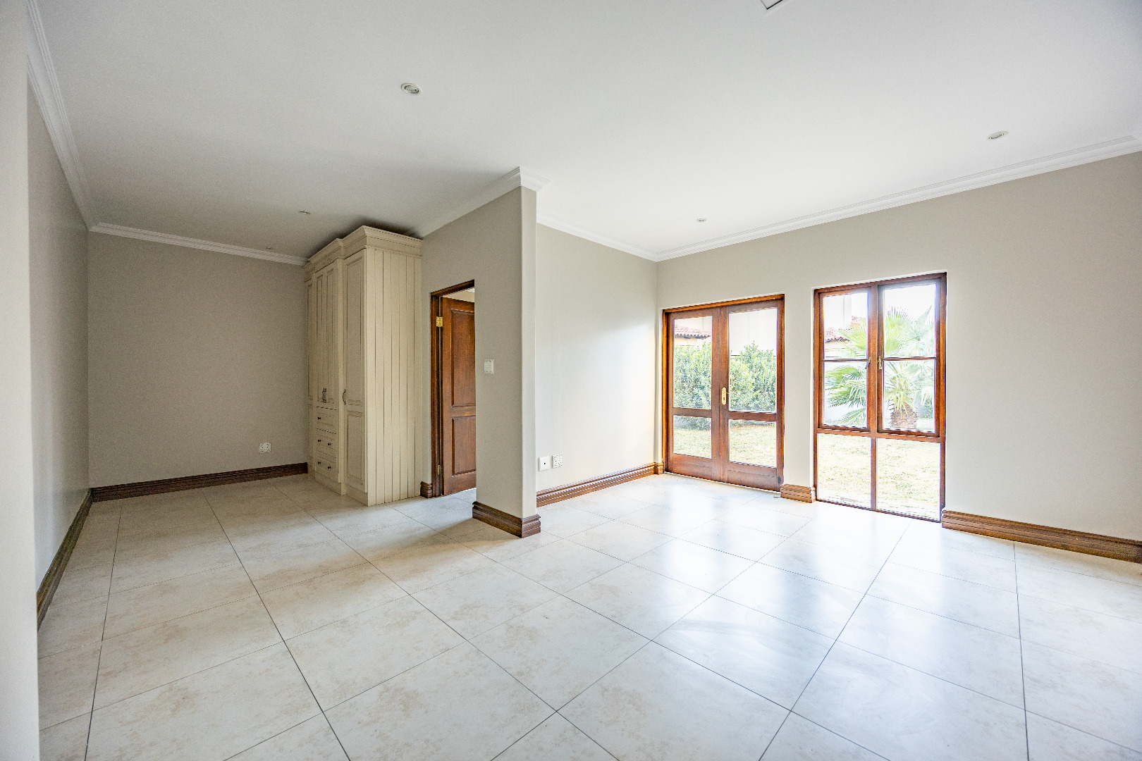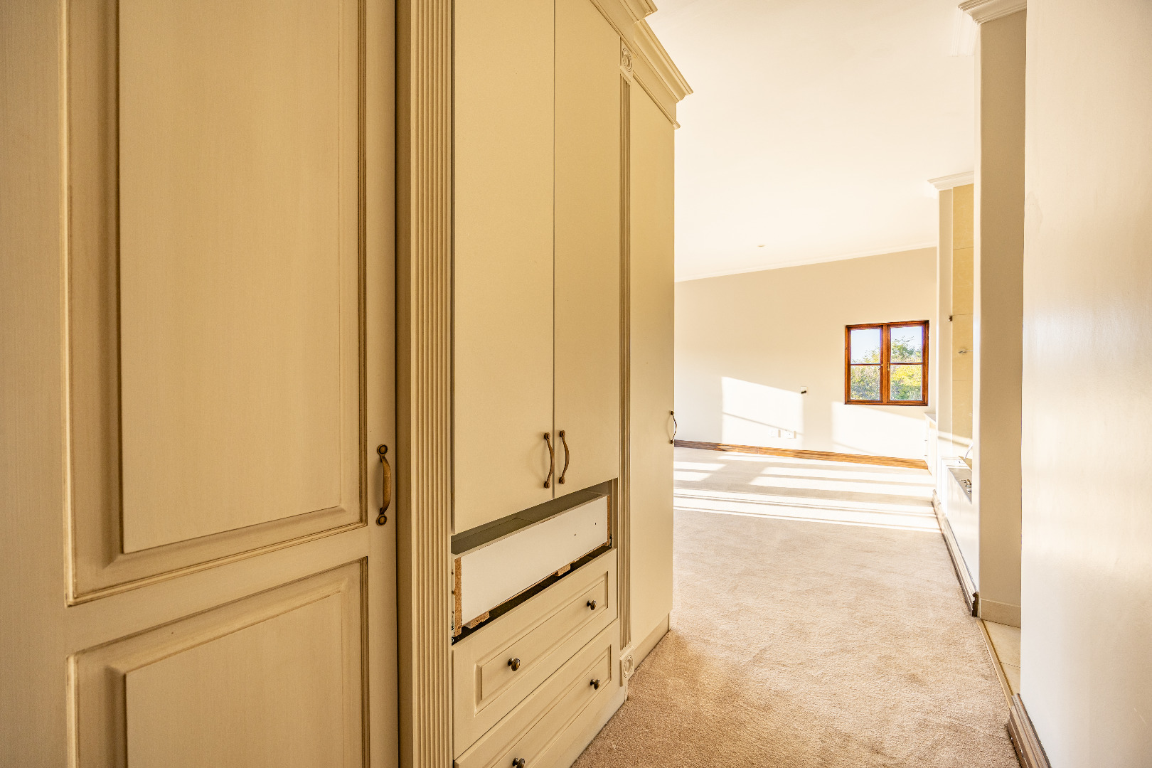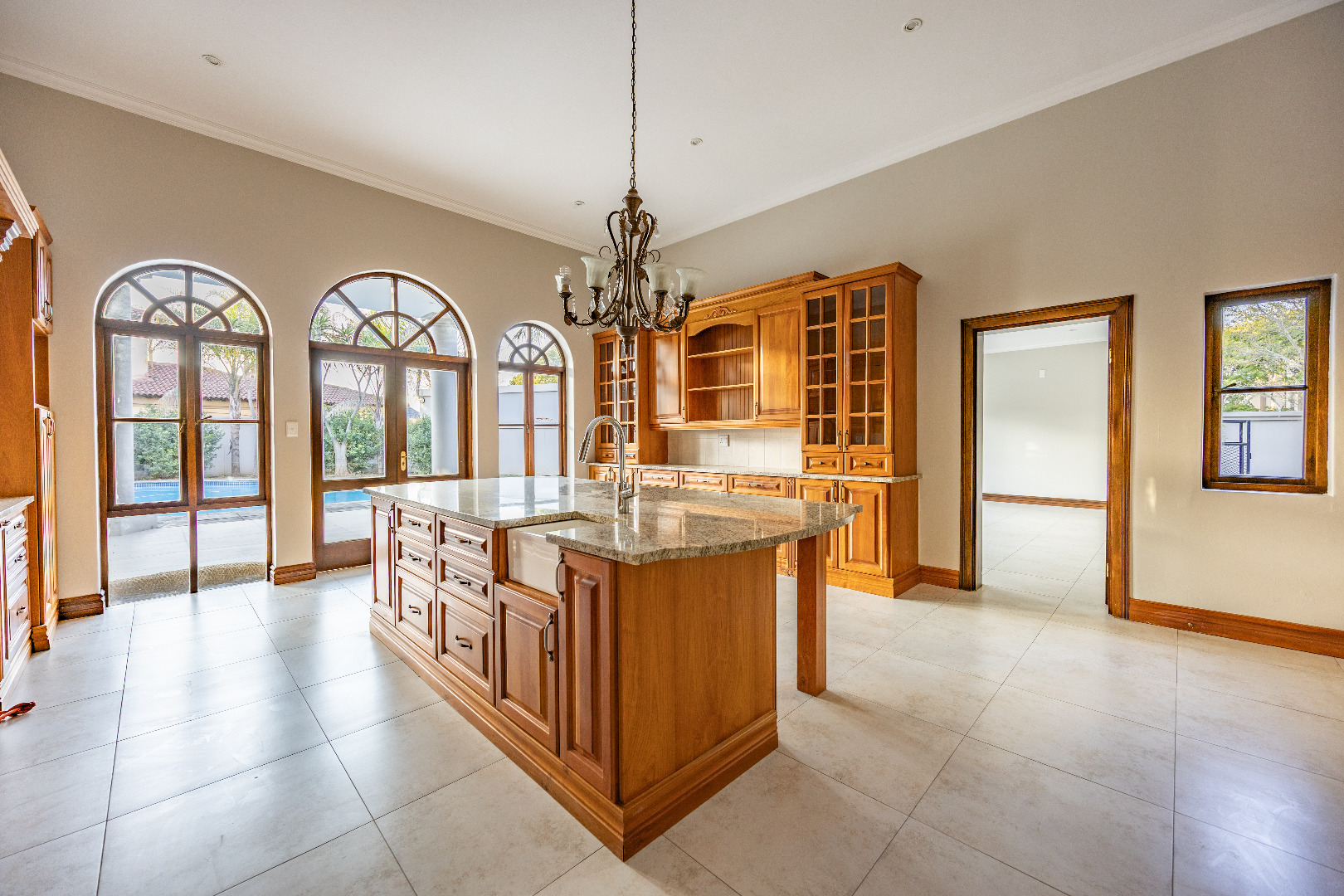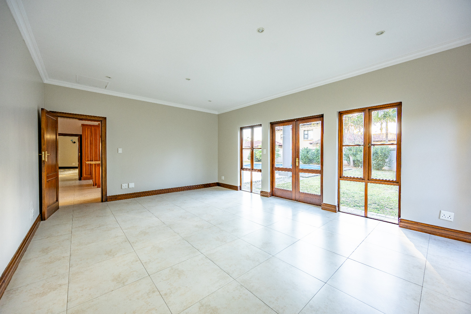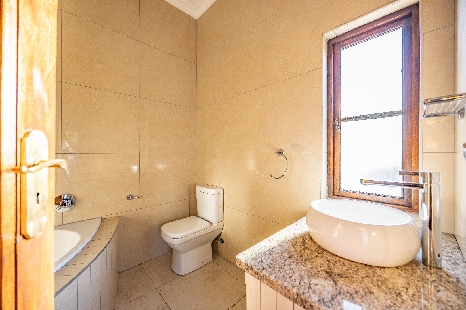 This expansive and elegant home in the prestigious Silver Lakes Golf Estate is available for immediate occupation and offers an exceptional lifestyle for the discerning tenant. The entrance hall leads into a versatile space ideal as a study or guest bedroom, flowing into a spacious dining area perfect for family meals. The ground floor also features a guest bathroom with a shower, a wine cellar, and a generous living room with two fireplaces for year-round comfort. A large, well-equipped kitchen with a separate scullery caters effortlessly to all your culinary needs, complemented by an additional downstairs bedroom.