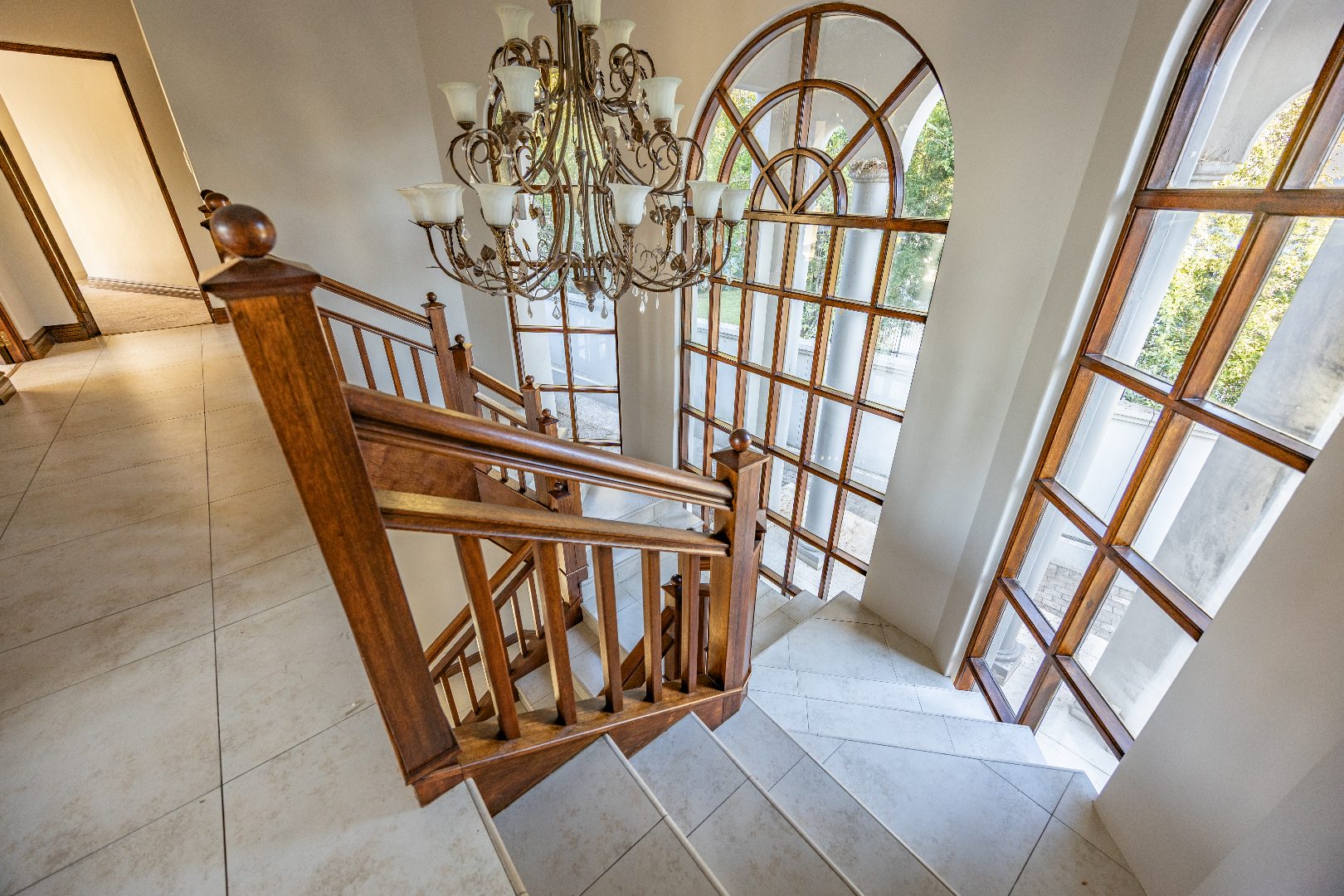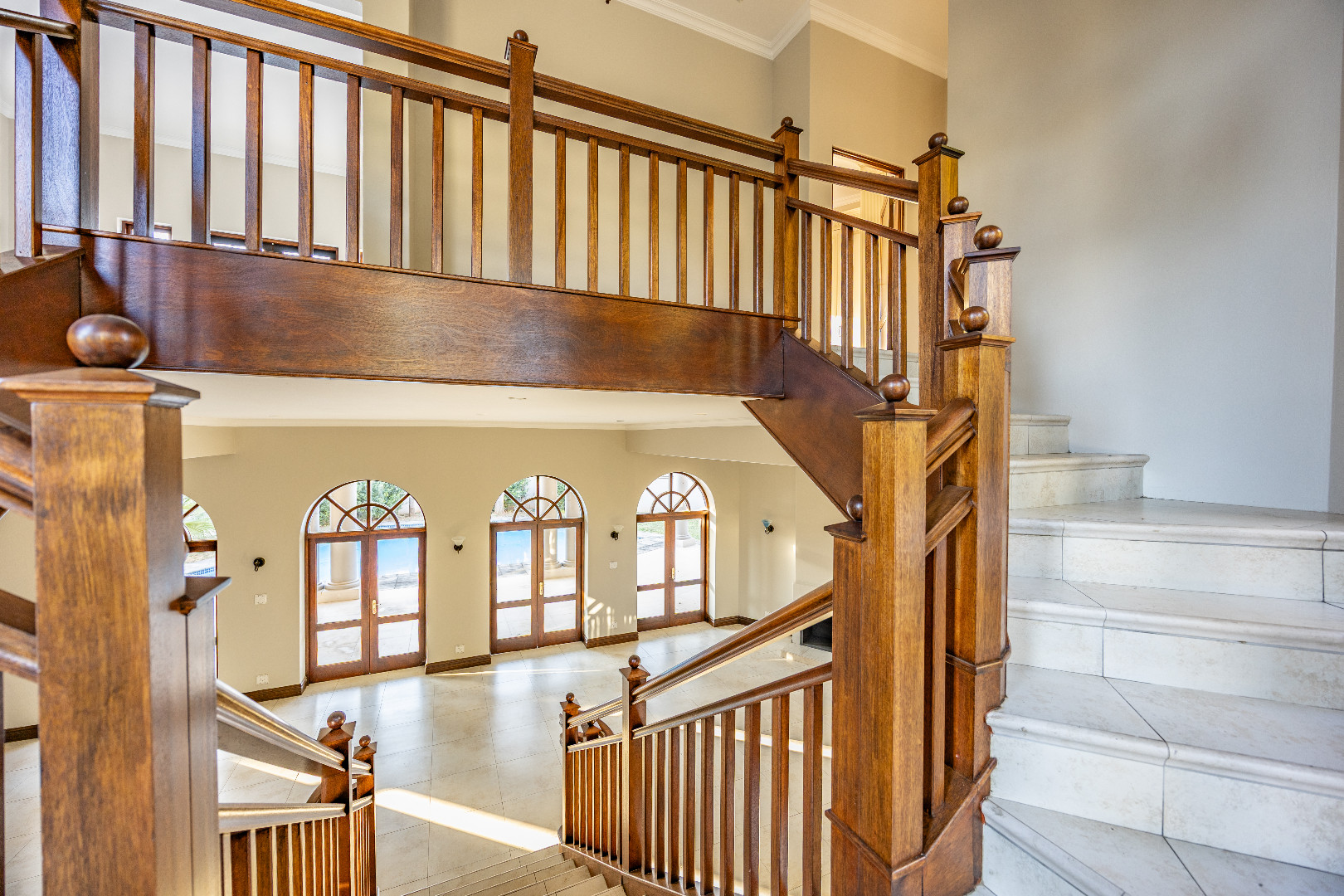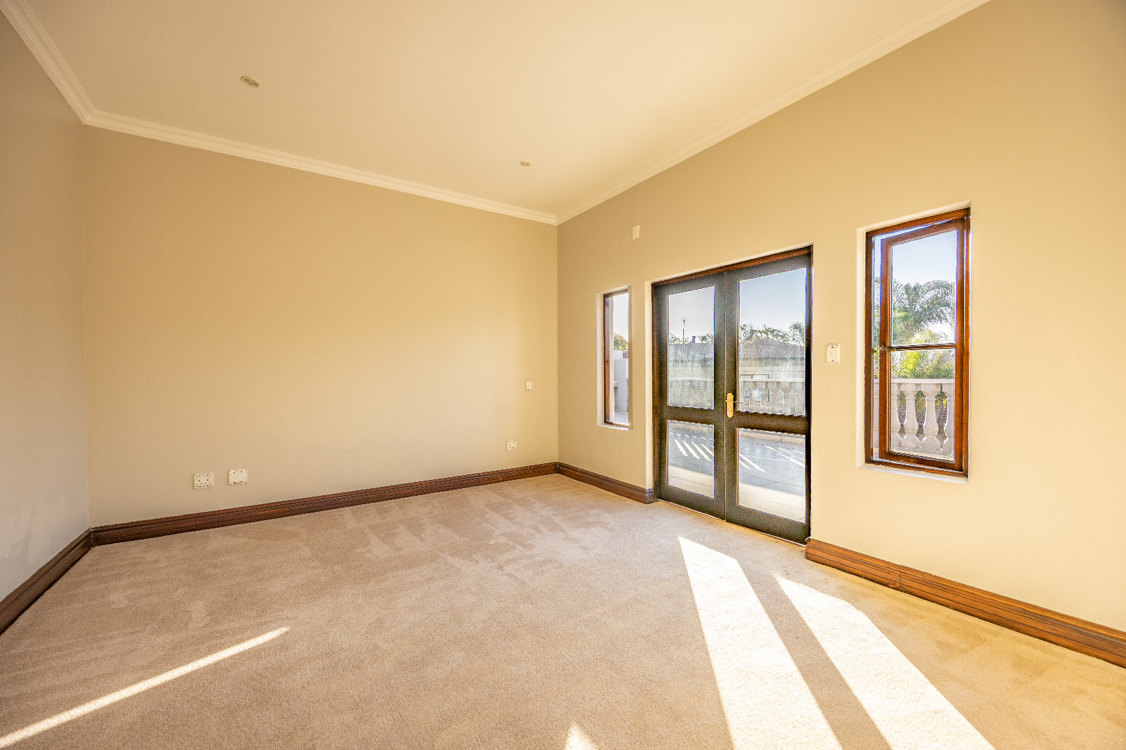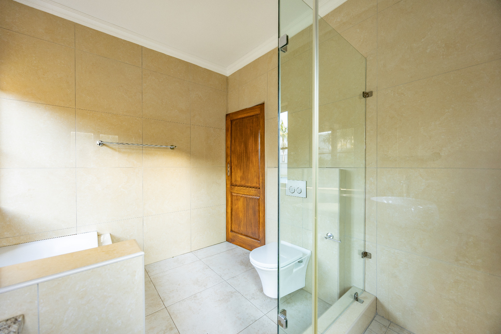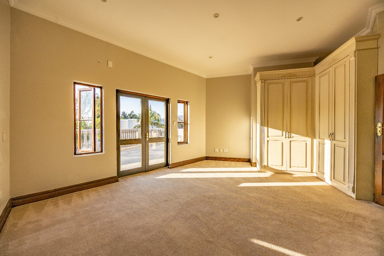 This expansive and elegant home in the prestigious Silver Lakes Golf Estate is available for immediate occupation and offers an exceptional lifestyle for the discerning tenant. The entrance hall leads into a versatile space ideal as a study or guest bedroom, flowing into a spacious dining area perfect for family meals. The ground floor also features a guest bathroom with a shower, a wine cellar, and a generous living room with two fireplaces for year-round comfort. A large, well-equipped kitchen with a separate scullery caters effortlessly to all your culinary needs, complemented by an additional downstairs bedroom.
