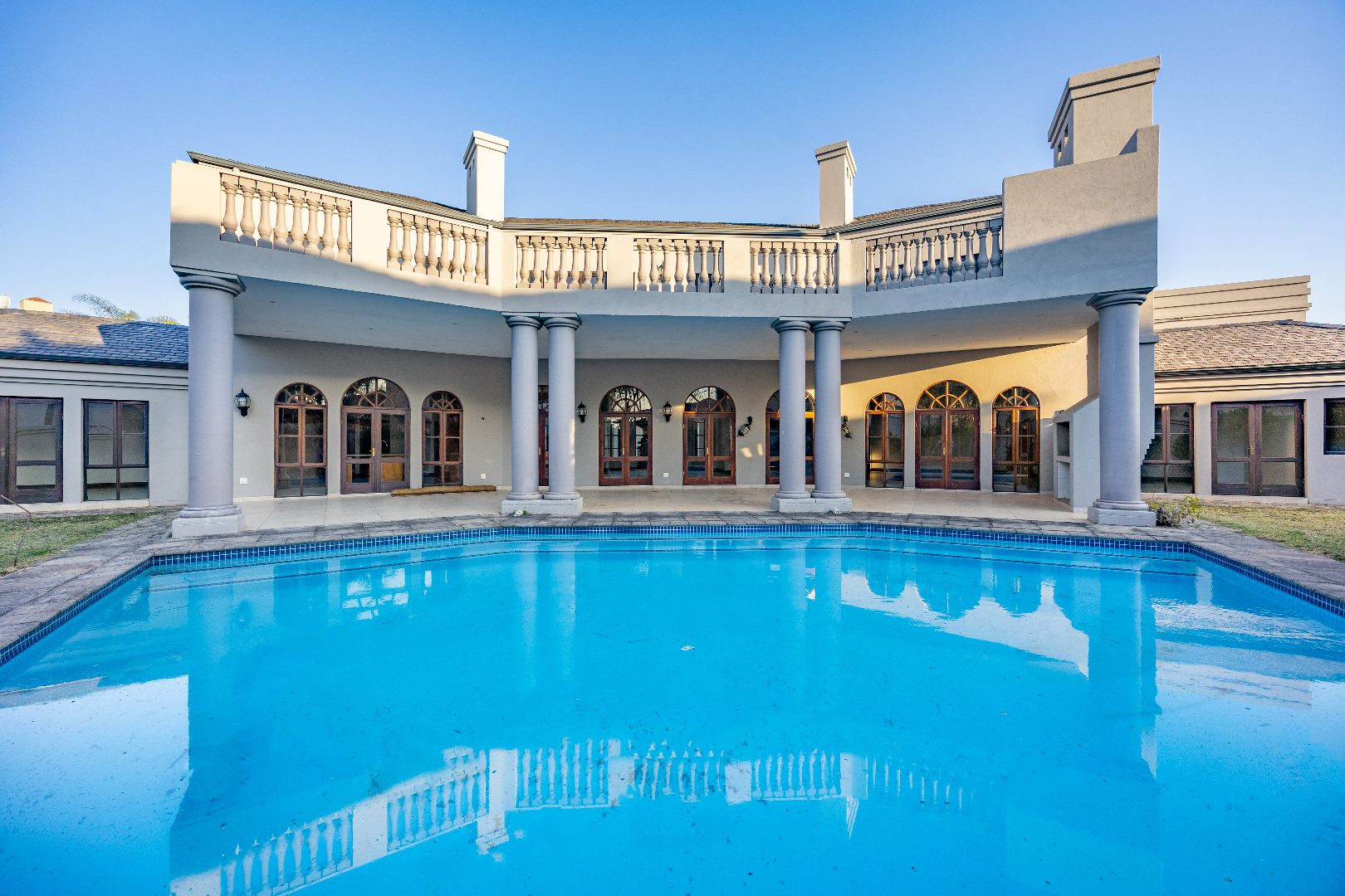 Designed for effortless indoor-outdoor living, the home opens to a beautifully landscaped entertainment area, complete with a built-in braai, sparkling swimming pool, and covered patio ideal for alfresco dining. Two exterior-access domestic quarters offer additional flexibility for staff or guests.