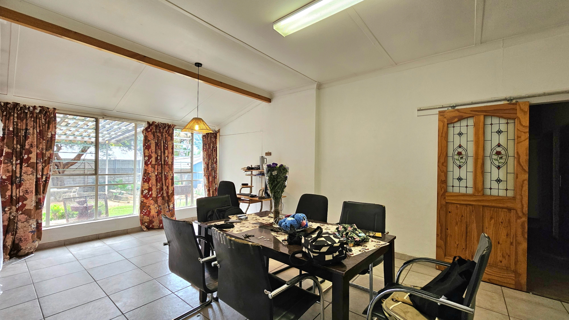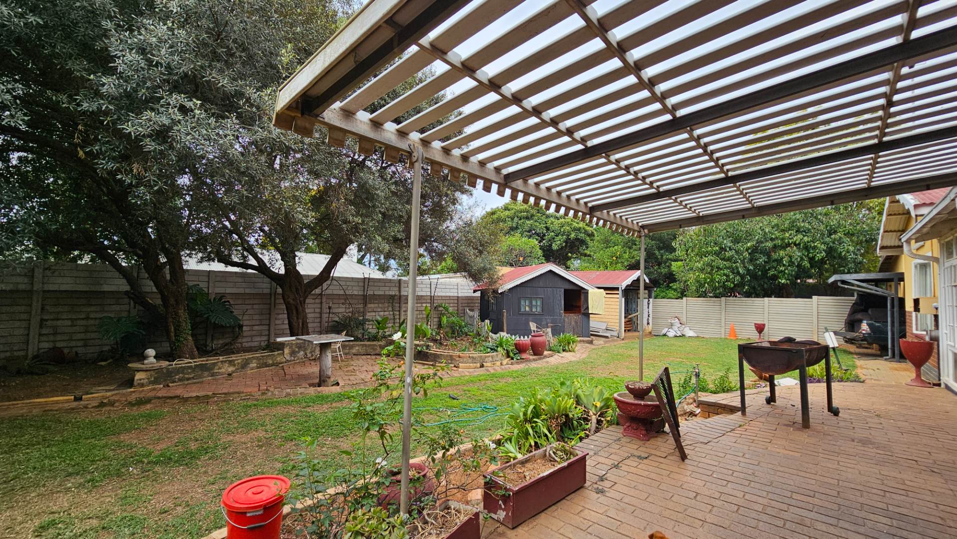 From the living area, step out onto a charming patio that overlooks a large garden, perfect for children and pets to enjoy outdoor play. The borehole ensures your garden stays lush and green throughout the year. This outdoor space is ideal for relaxed family gatherings or weekend braais.