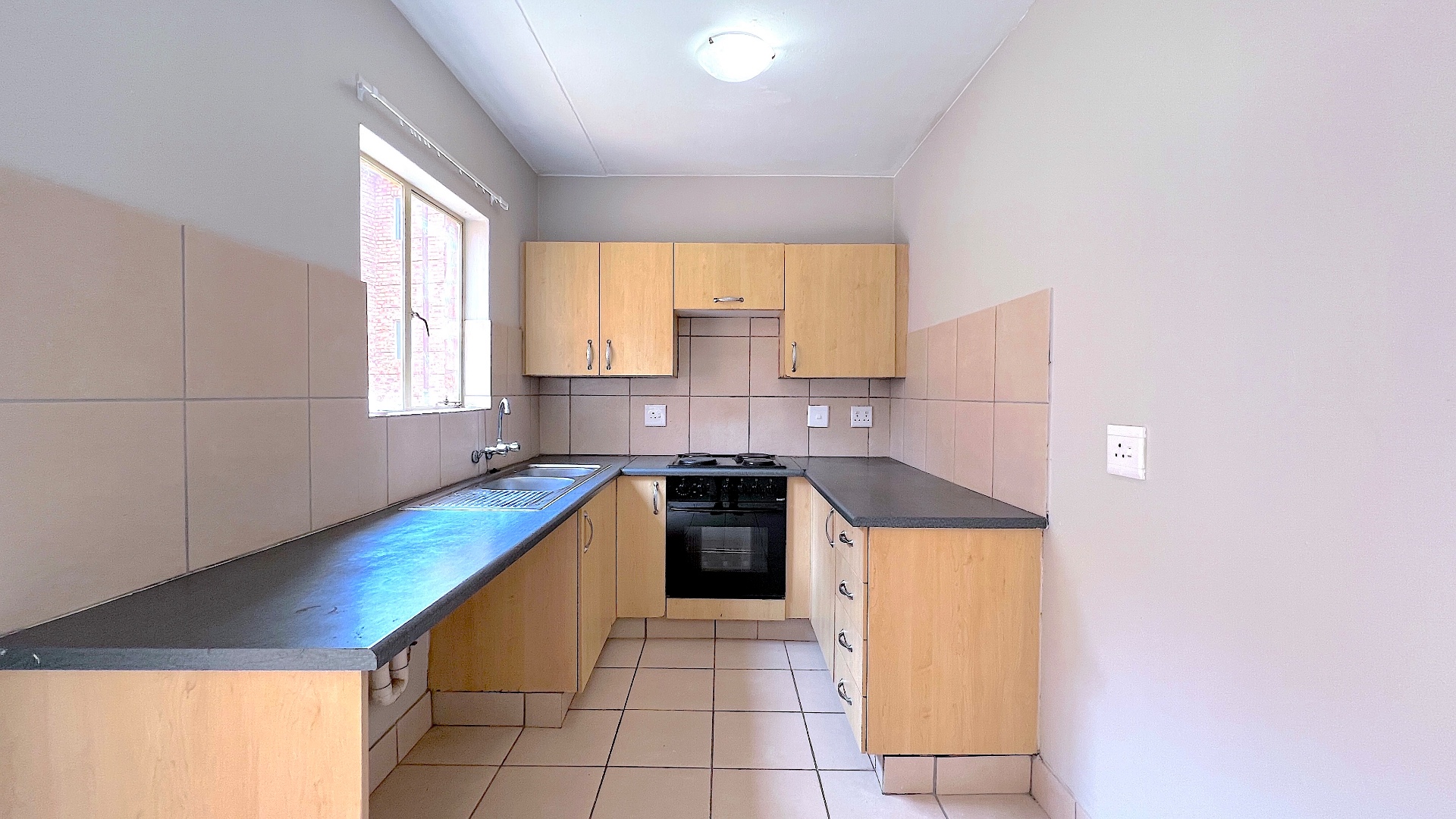 Discover this inviting 71 sqm apartment available for rent in the sought-after Wapadrand suburb of Pretoria. Designed for comfortable living, this unfurnished residence features a well-appointed layout comprising one bedroom, one bathroom, a spacious lounge, and a functional kitchen. Throughout the apartment, neutral-toned walls and durable tiled flooring create a clean, versatile canvas, complemented by abundant natural light streaming in from multiple windows. The kitchen boasts modern light wood cabinetry, dark countertops, a built-in oven and hob, and a convenient pantry, offering ample storage and preparation space for daily needs.