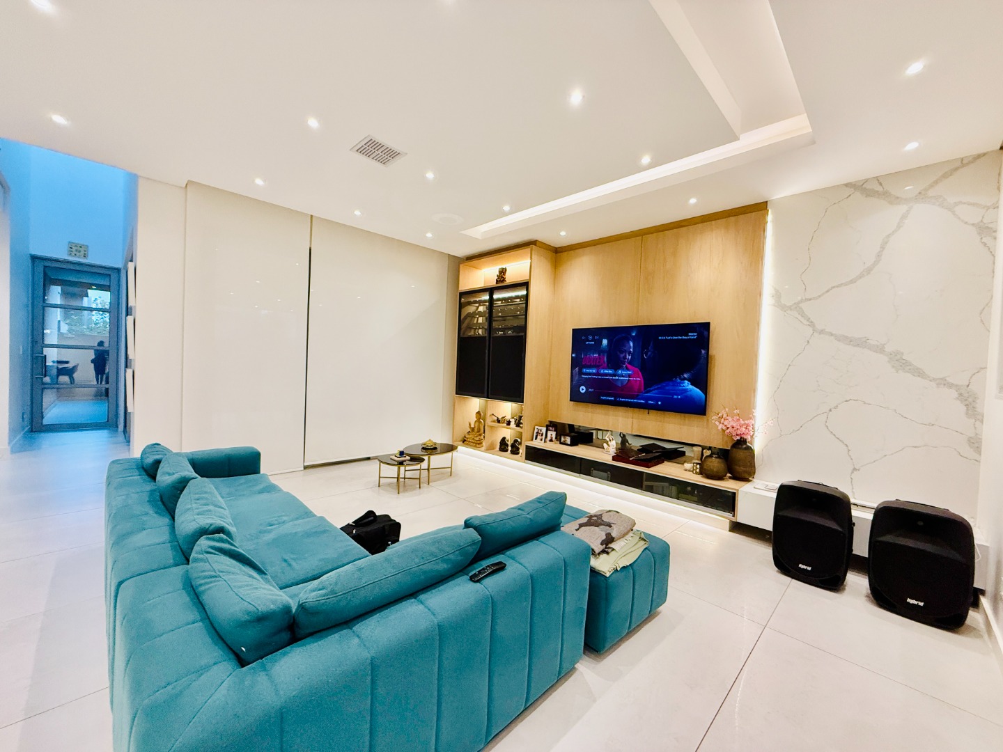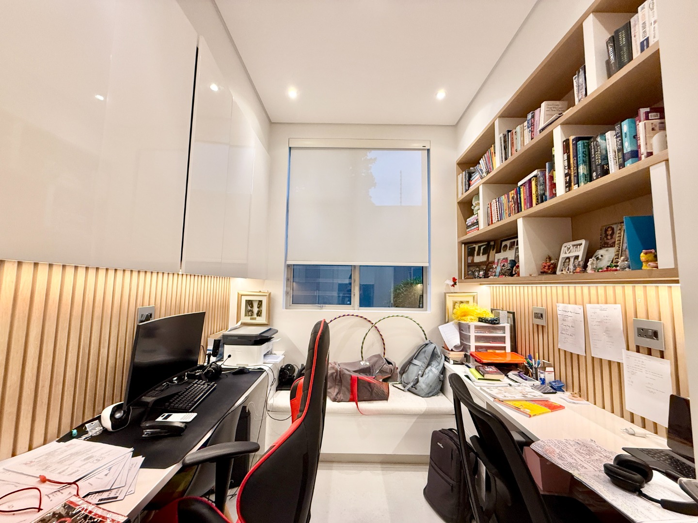 The ground floor also features a private study fitted with custom-built cabinetry — ideal for a modern work-from-home setup — along with a guest cloakroom, double automated garage, and an oversized storeroom that reflect the home’s thoughtful practicality.
